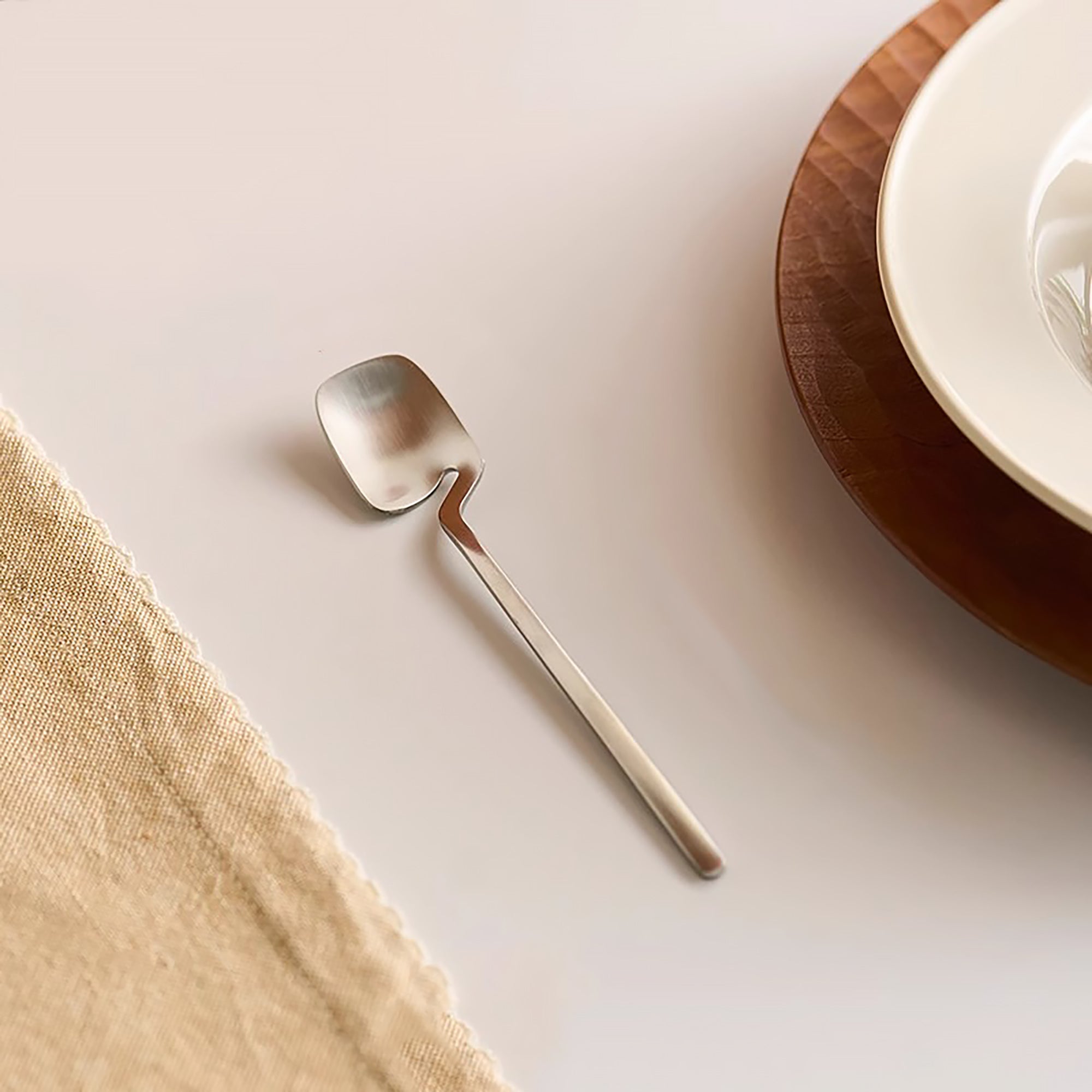 Couverts au style minimaliste fabriqués en acier inoxydable 304 de haute qualité, avec une finition mate élégante. Leur design suspendu unique ajoute une touche originale à votre table, incarnant parfaitement l’esthétique japonaise minimaliste.