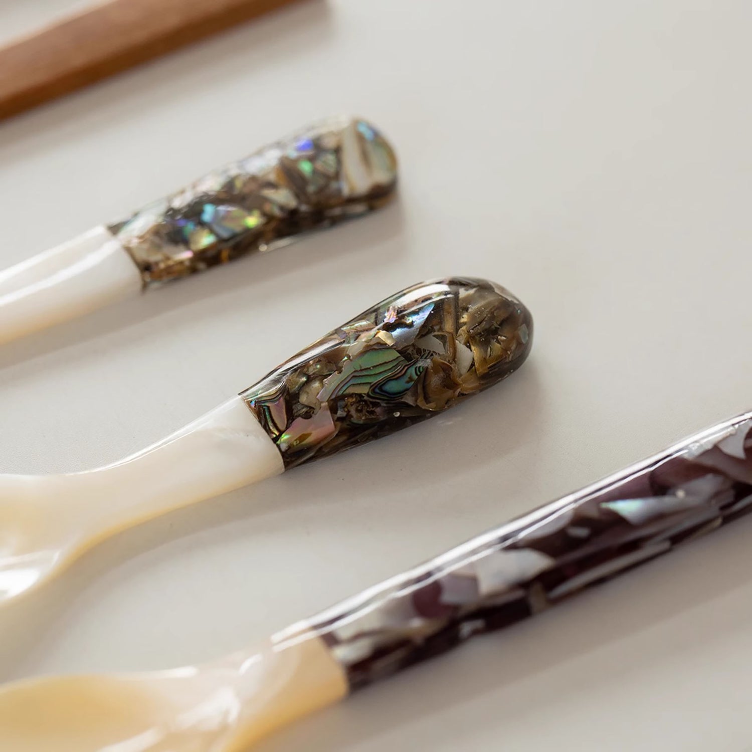 Cette cuillère en nacre naturelle, fabriquée au Japon, est minutieusement polie à la main pour révéler la beauté unique de chaque pièce. Avec son éclat et ses motifs naturels, elle apporte une touche d’élégance à votre table, idéale pour les repas quotidiens ou les réceptions. Parfaite pour servir des condiments ou des desserts, elle allie praticité et esthétique.