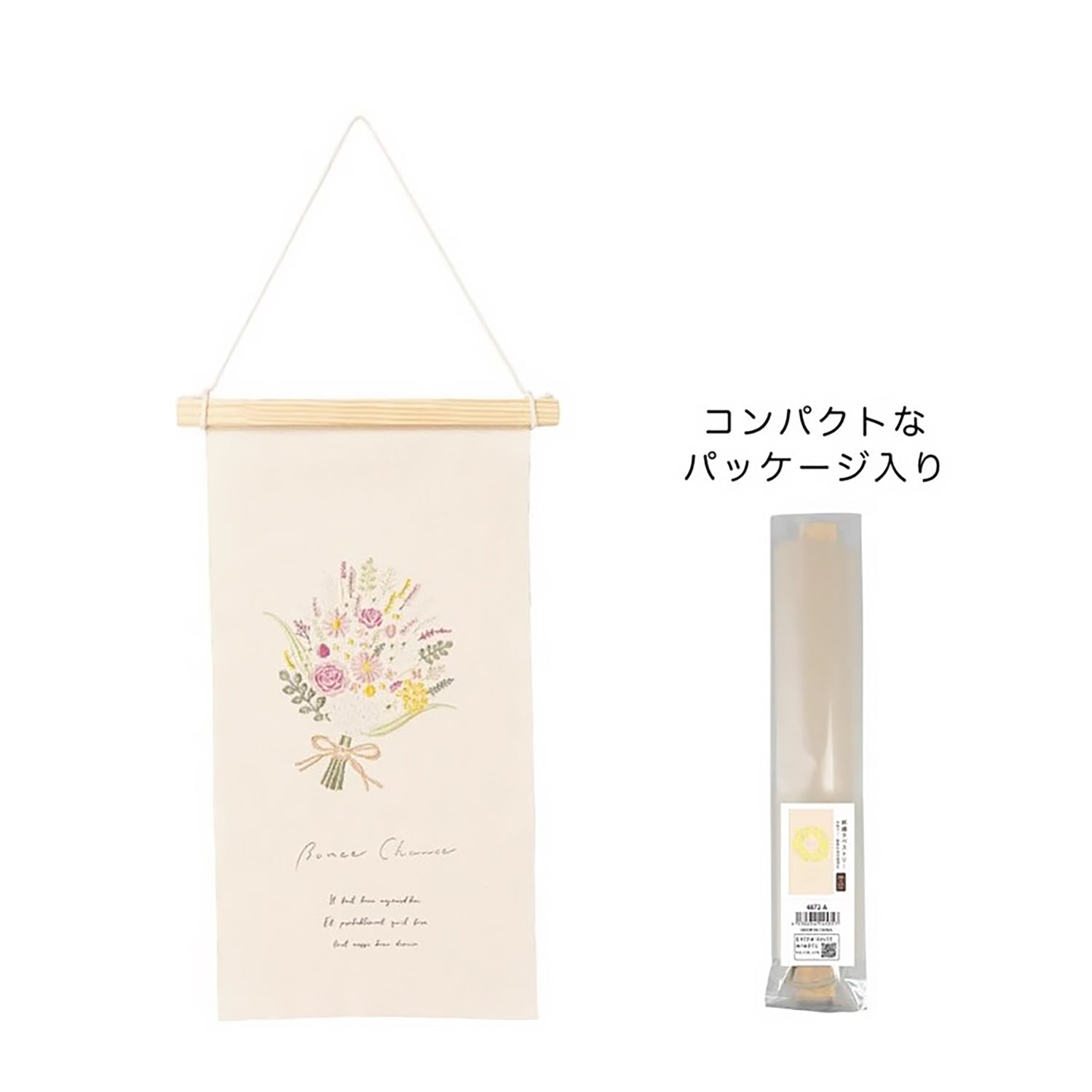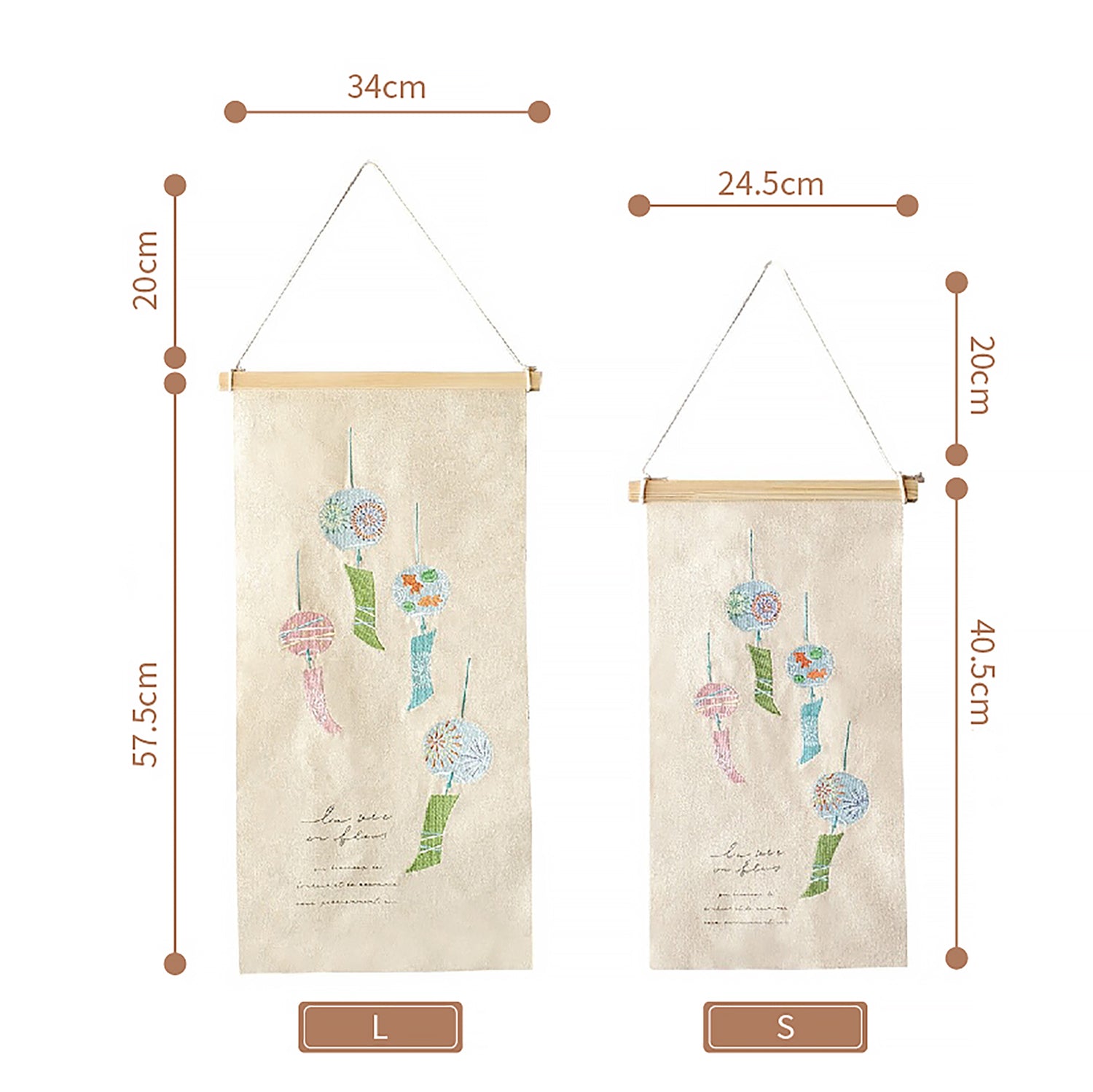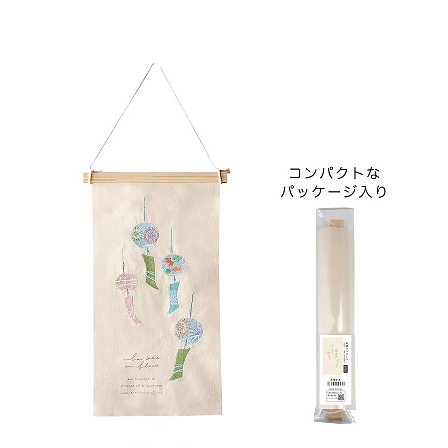 Cette décoration murale en tissu brodé marie esthétique et fonctionnalité, avec des motifs illustrés de carillons, fleurs et plantes, évoquant la douceur du style japonais. Chaque pièce est réalisée avec soin à la main, sur un tissu finement brodé. Facile à accrocher grâce à sa barre en bois incluse, elle s’installe aisément sur un mur ou une porte. Légère, poétique et pratique, elle apportera une touche de sérénité à votre intérieur.