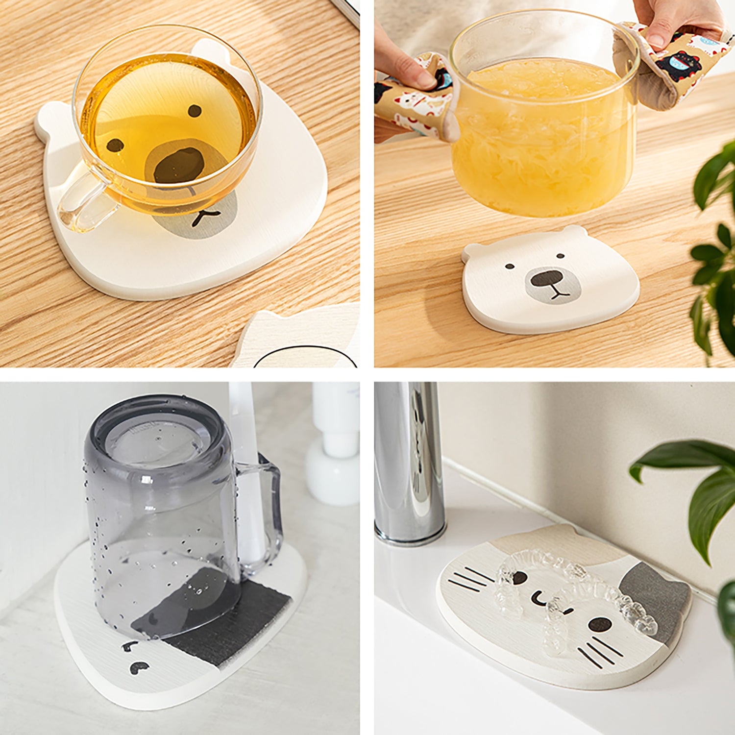 Ce dessous de verre Shimoyama en terre de diatomée naturelle absorbe rapidement l’humidité laissée par les verres, gardant votre table propre et sans traces. Isolant et antidérapant, il protège efficacement contre la chaleur et les taches. Son design en forme d’animaux adorables apporte une touche ludique et décorative à vos moments de thé ou de café. Facile à nettoyer et à ranger, il allie fonctionnalité et charme japonais au quotidien.