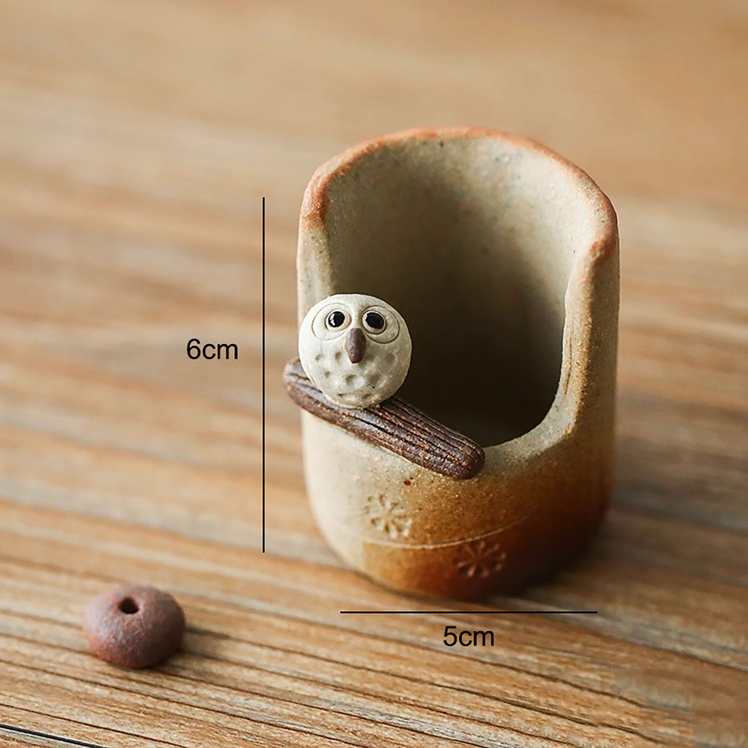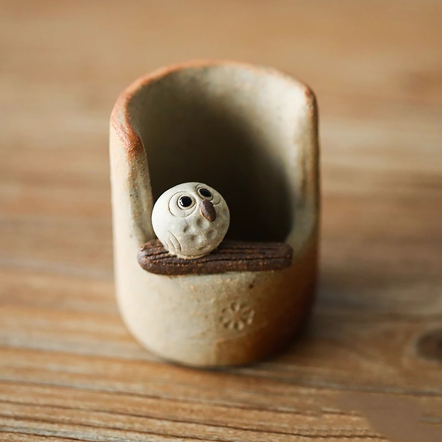 Découvrez cet encensoir unique en céramique Shigaraki-yaki, fabriqué à la main en forme de hibou adorable. Chaque détail, du motif sculpté à la main à la finition texturée, reflète le savoir-faire artisanal traditionnel.