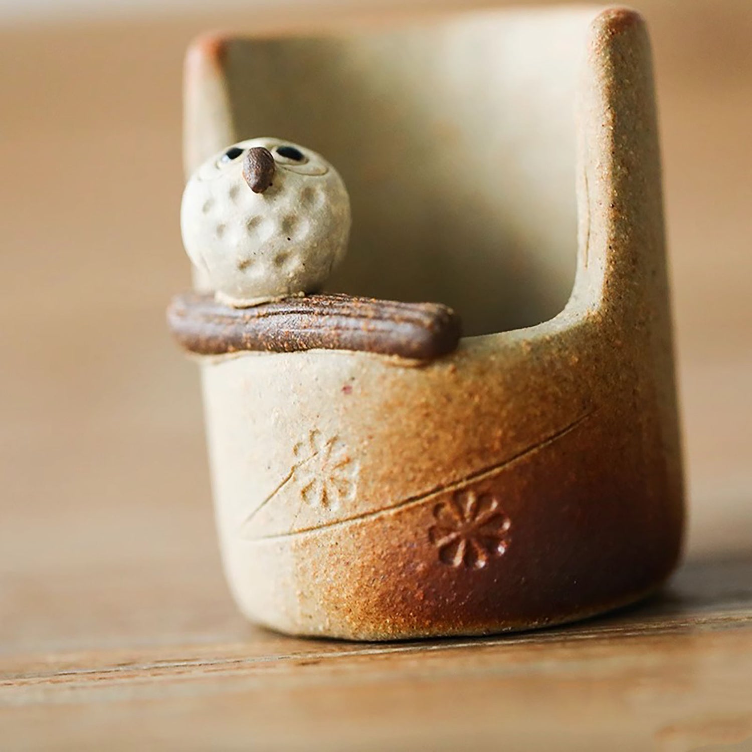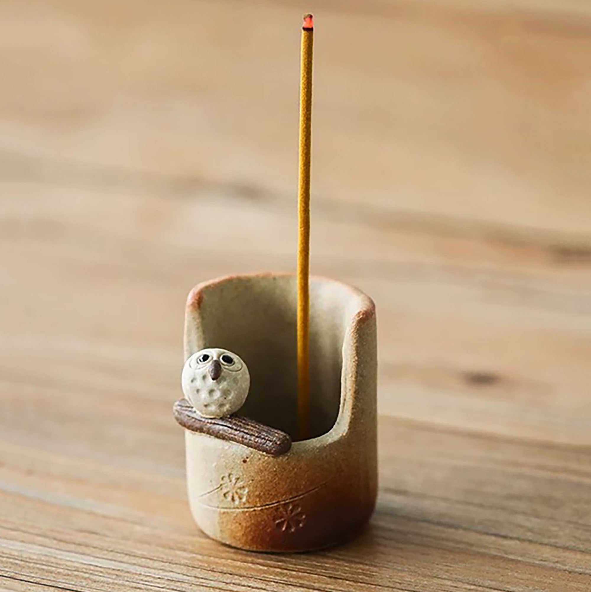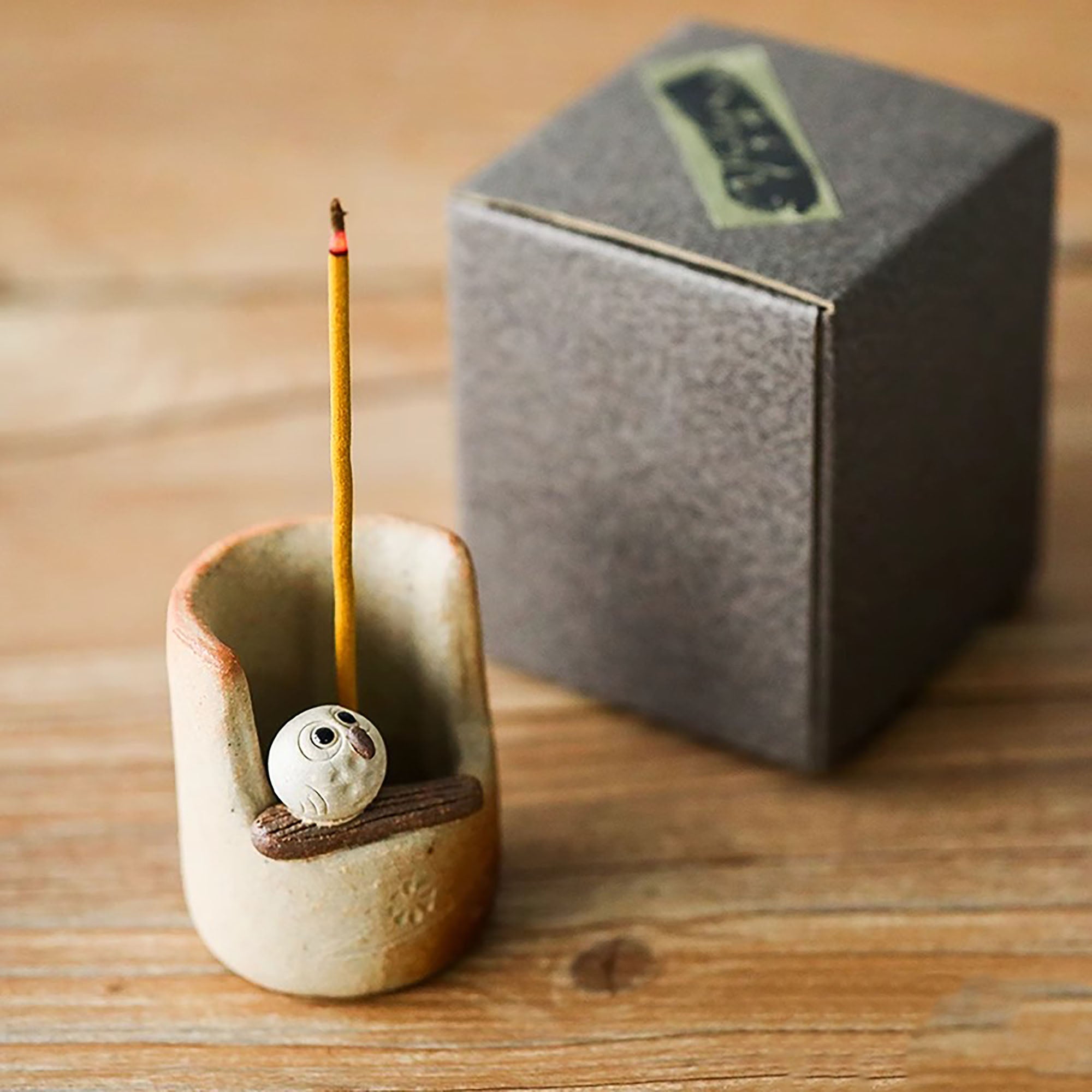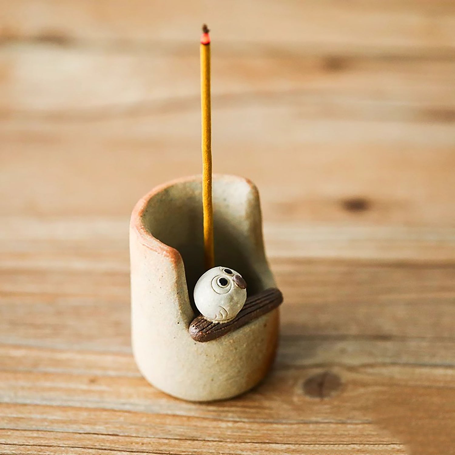 Porte Encens en céramique Shigaraki-yaki en forme Hibou