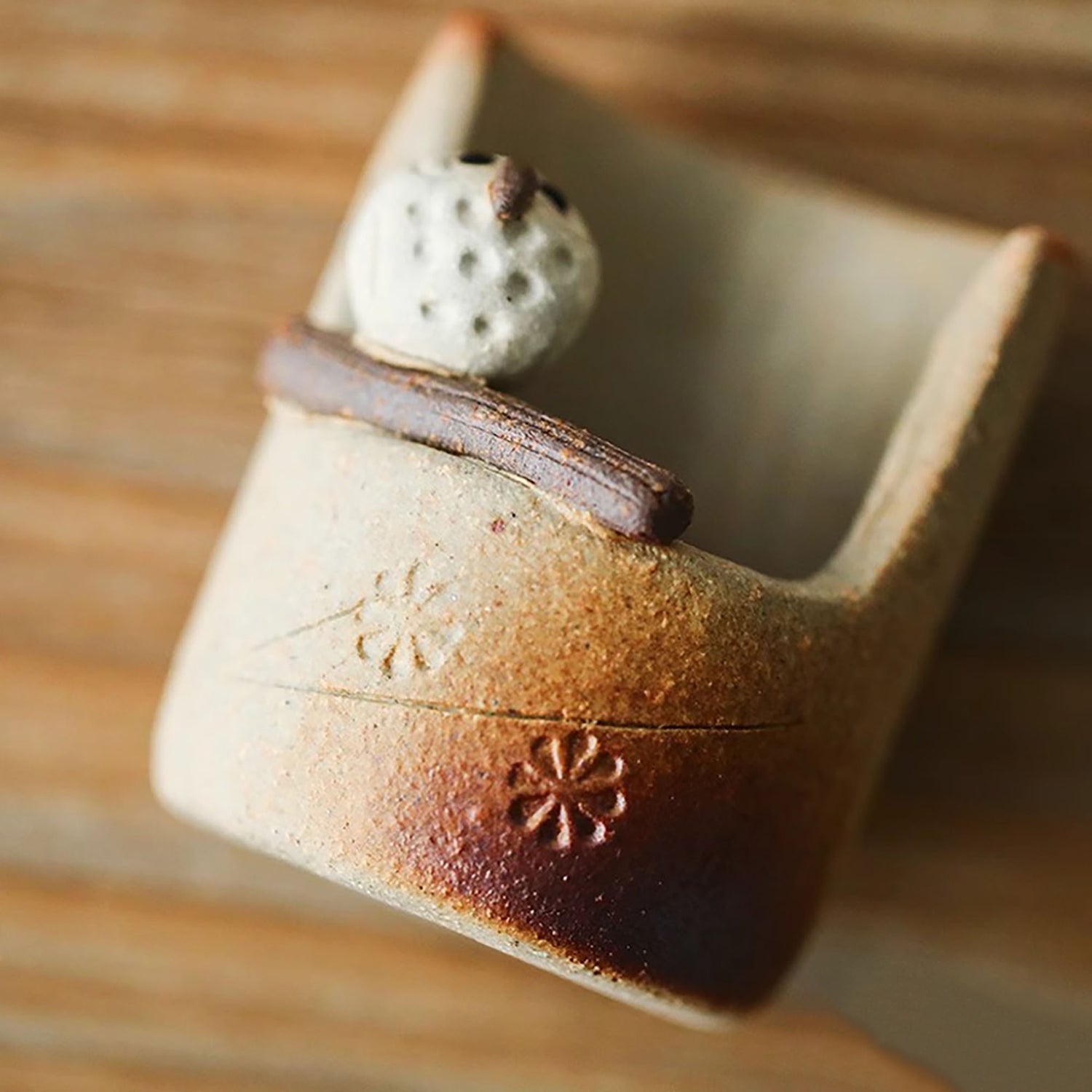 Les empreintes délicates sur le porte-encens, combinées aux traces naturelles de la cuisson au four, ajoutent une touche d’authenticité rustique et une élégance sereine à votre espace. Parfait pour créer une ambiance apaisante avec une touche de charme japonais.