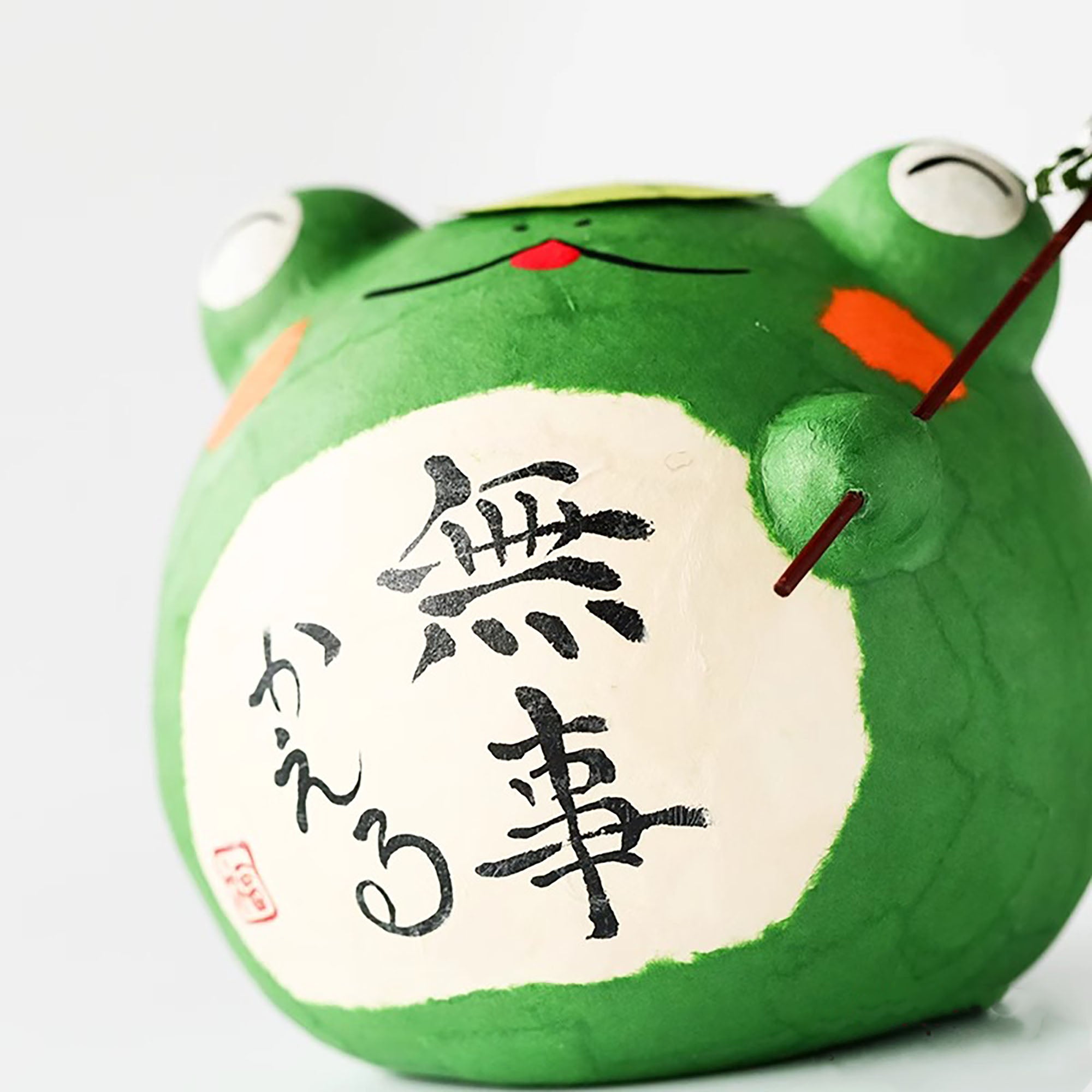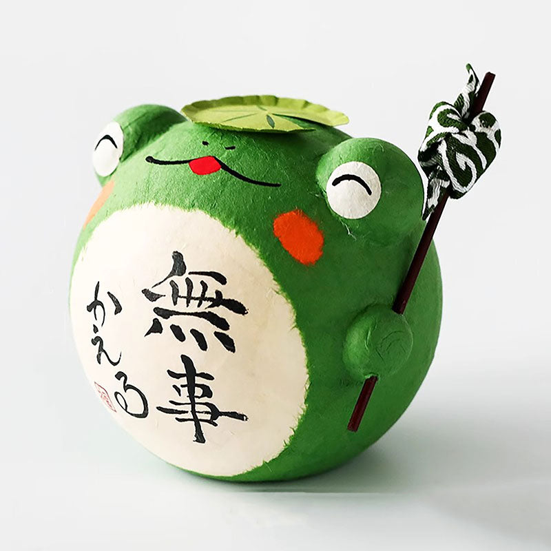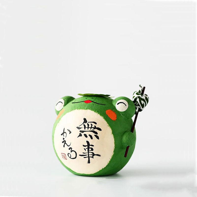 Fabriquée à la main par l’atelier japonais Tora & Ryu, cette figurine en papier washi représente une grenouille (“kaeru” en japonais), dont la prononciation est identique à celle du verbe “rentrer chez soi” (“kaeru”). Elle est donc considérée comme un porte-bonheur symbolisant le retour en sécurité et la protection de la famille. Son charme artisanal en fait un objet décoratif unique, parfait pour apporter une touche de sérénité à votre intérieur ou pour offrir un cadeau plein de sens et de bienveillance.