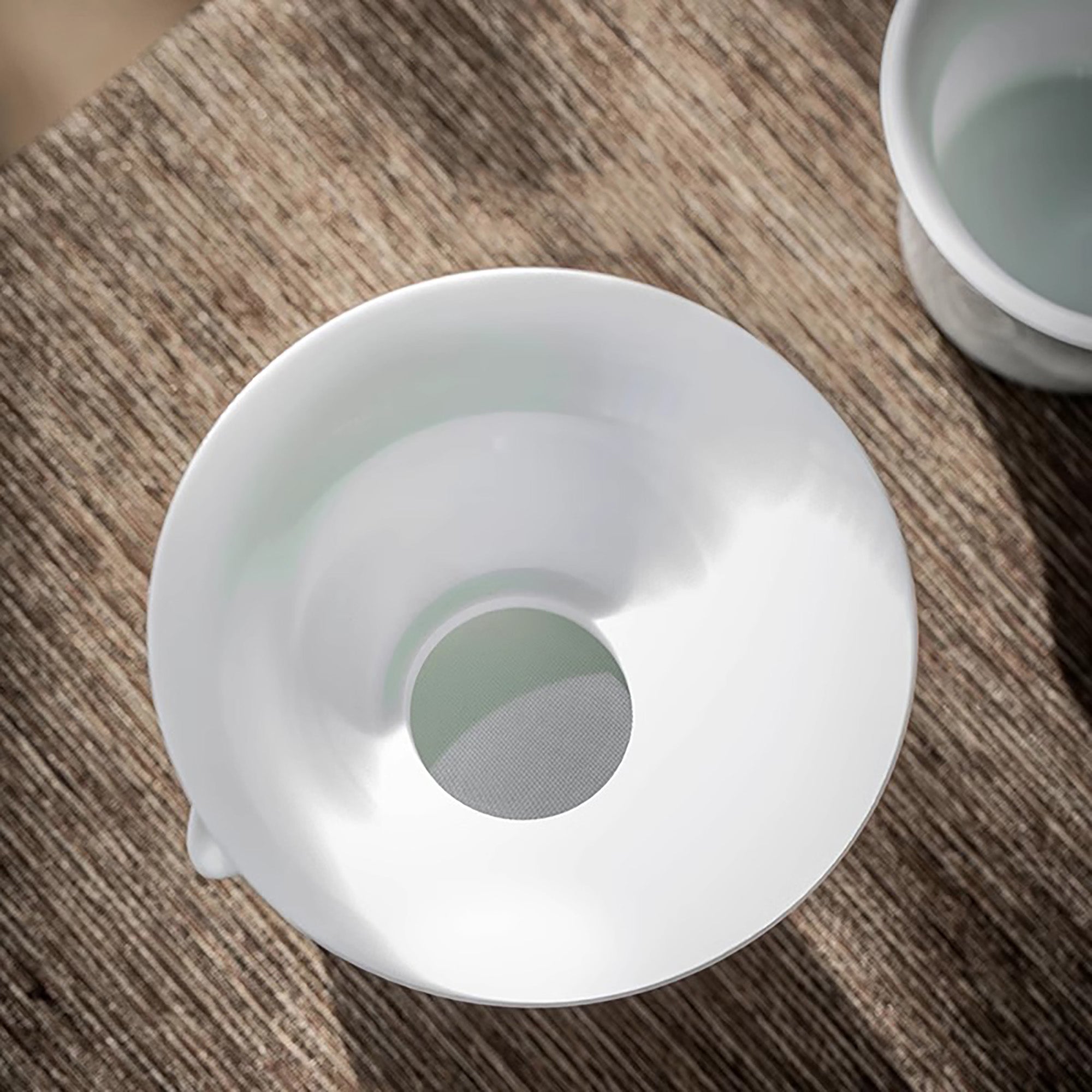 Ce filtre à thé en céramique de Jingdezhen fait partie de la série "Montagnes Lointaines" en porcelaine blanche. Fabriqué à partir de porcelaine blanche de haute qualité, il présente une texture délicate et pure, évoquant la tranquillité des montagnes lointaines. Son design épuré et poétique apporte une touche de sérénité à chaque infusion, ajoutant à la fois praticité et élégance artistique à votre service à thé. Ce filtre peut être acheté avec la tasse de partage de la même série, créant ainsi une harmonie parfaite pour des moments de dégustation plus raffinés.