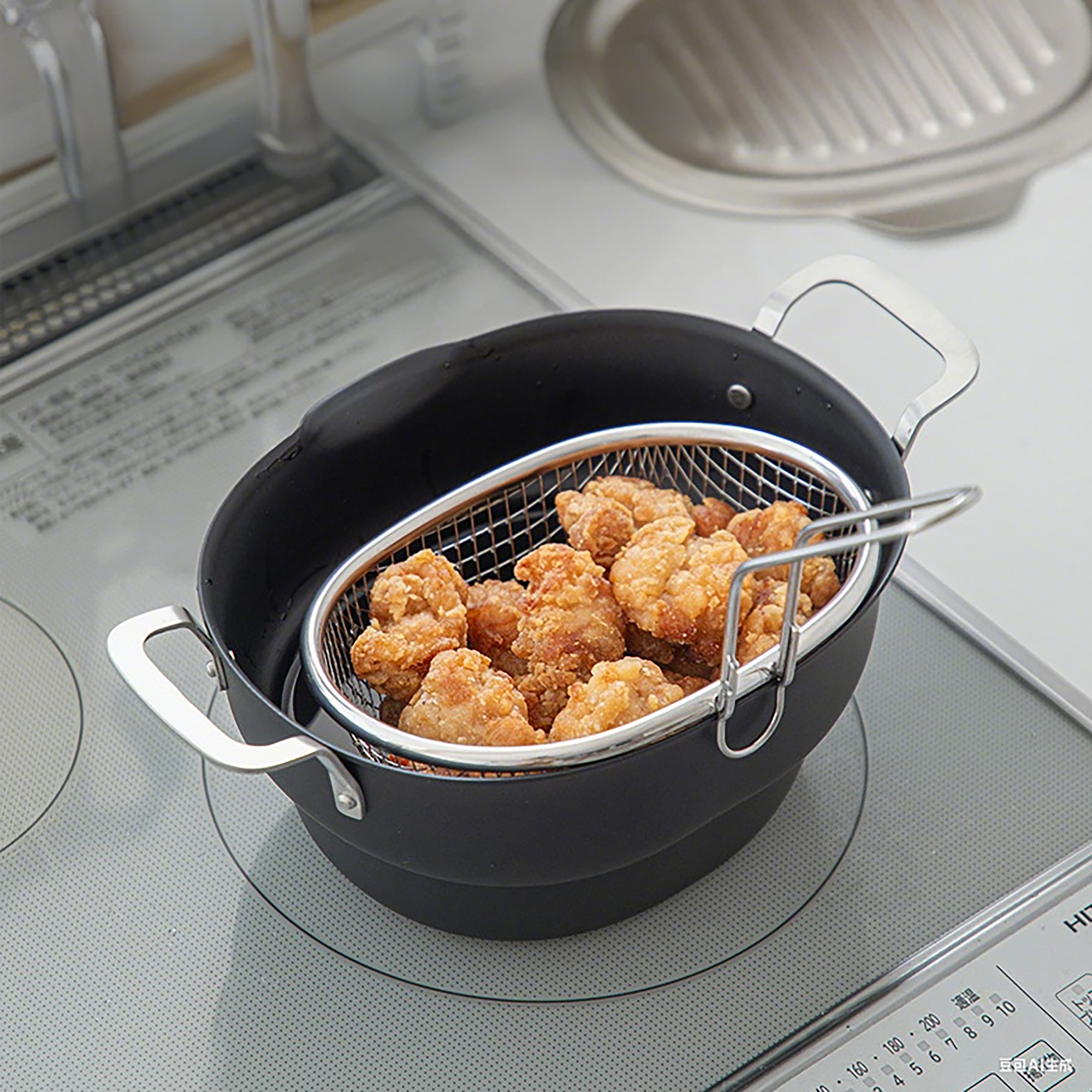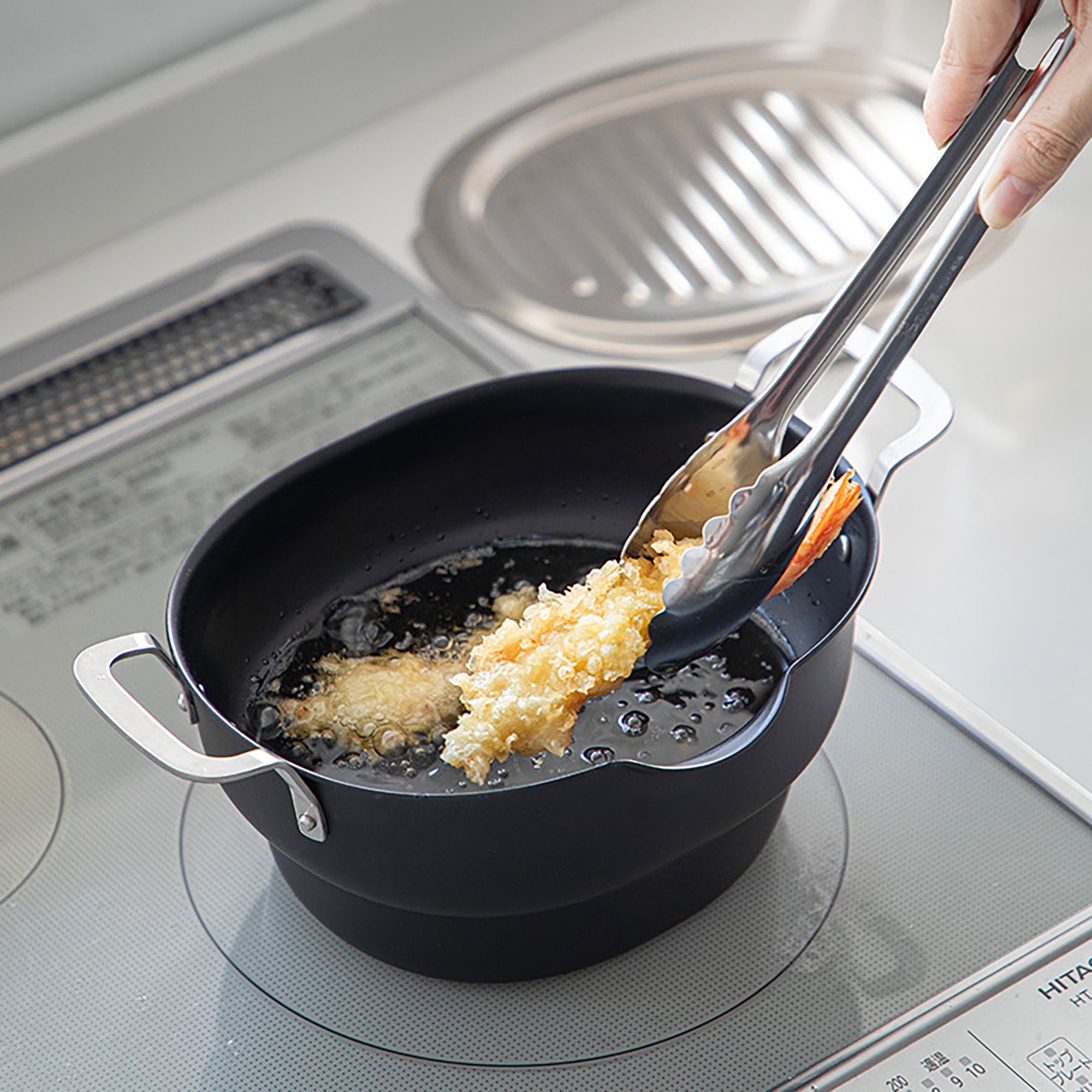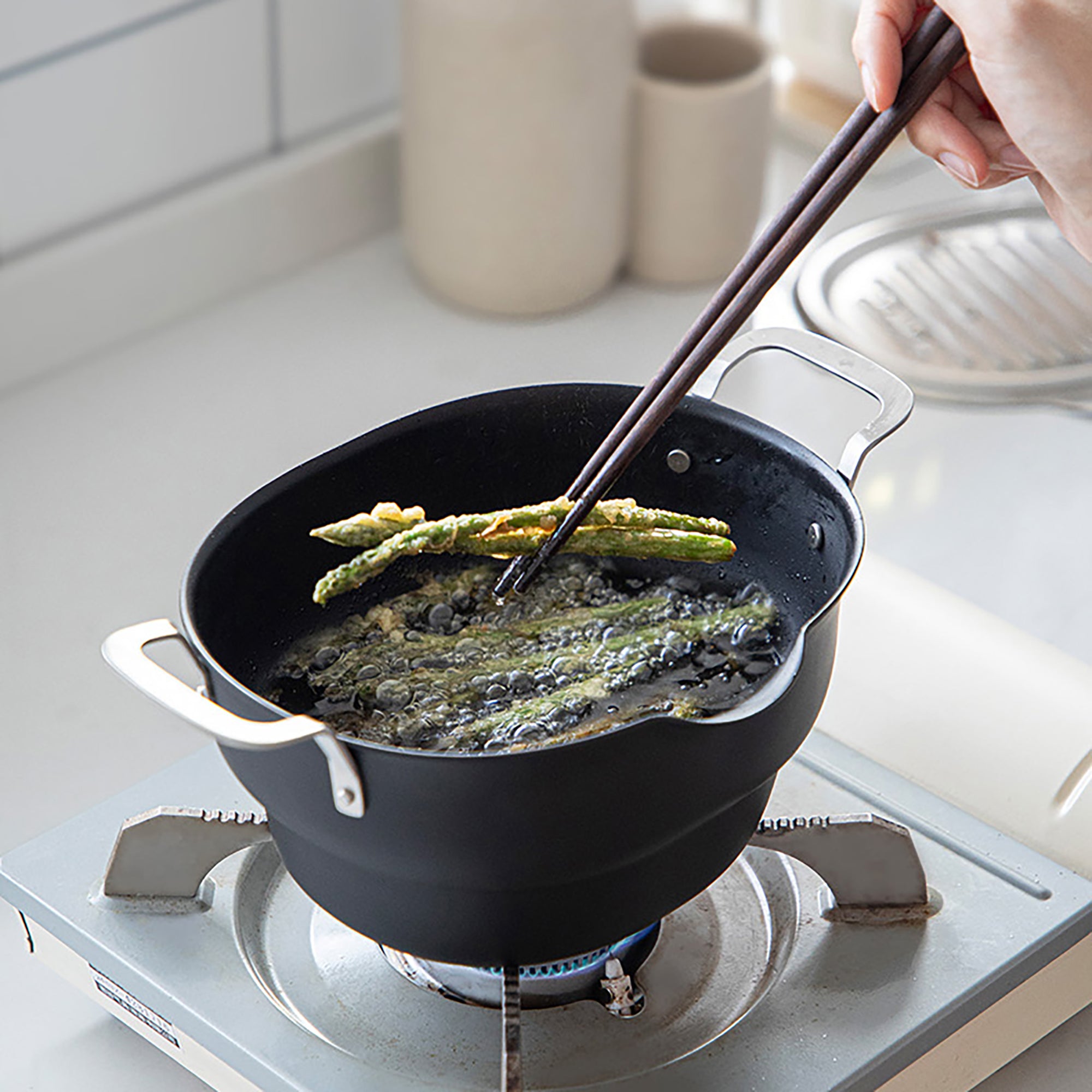 Conçue spécialement pour la friture, cette friteuse ovale en fonte Shimoyama offre une forme profonde et resserrée à la base, permettant de réduire les éclaboussures d’huile et de limiter la quantité utilisée.