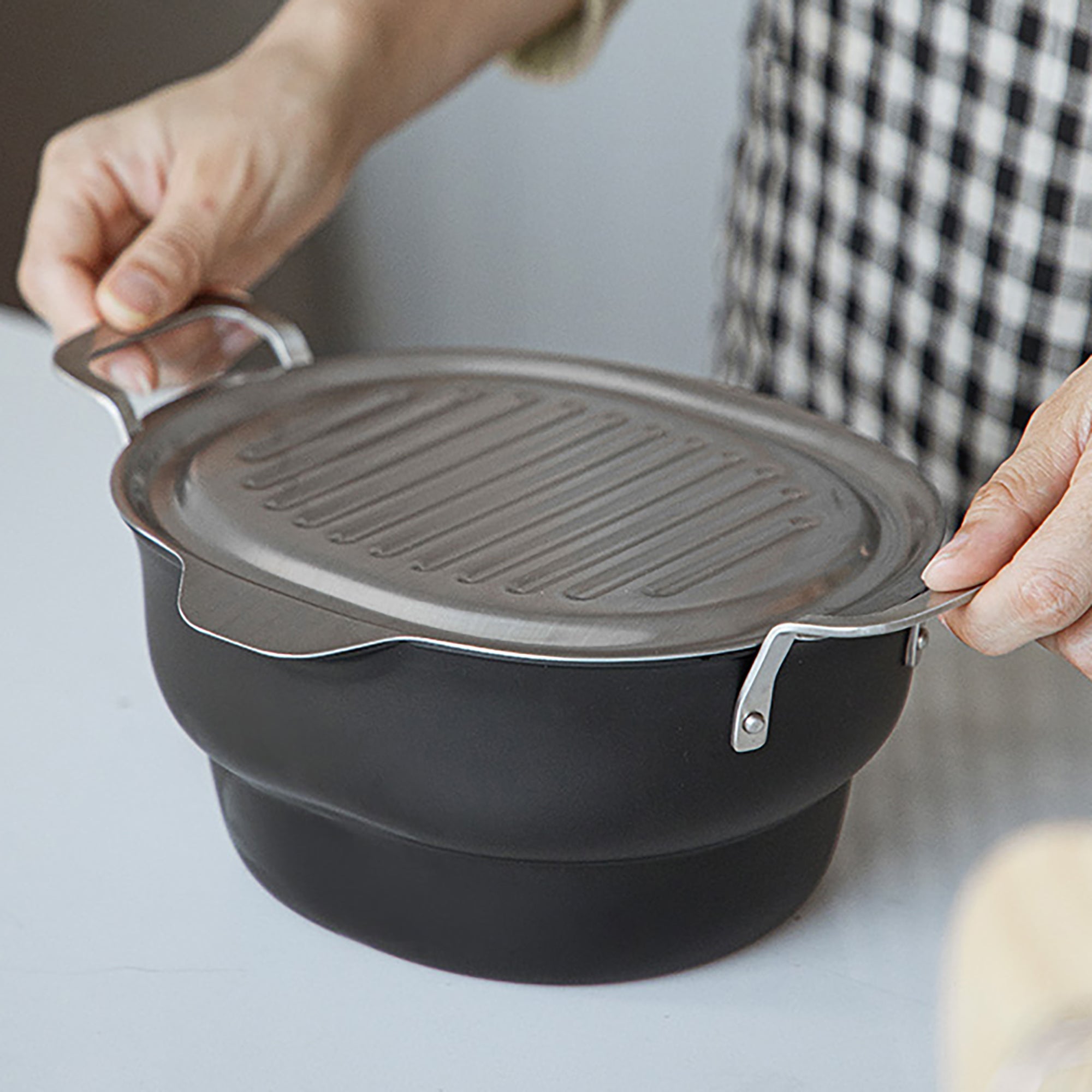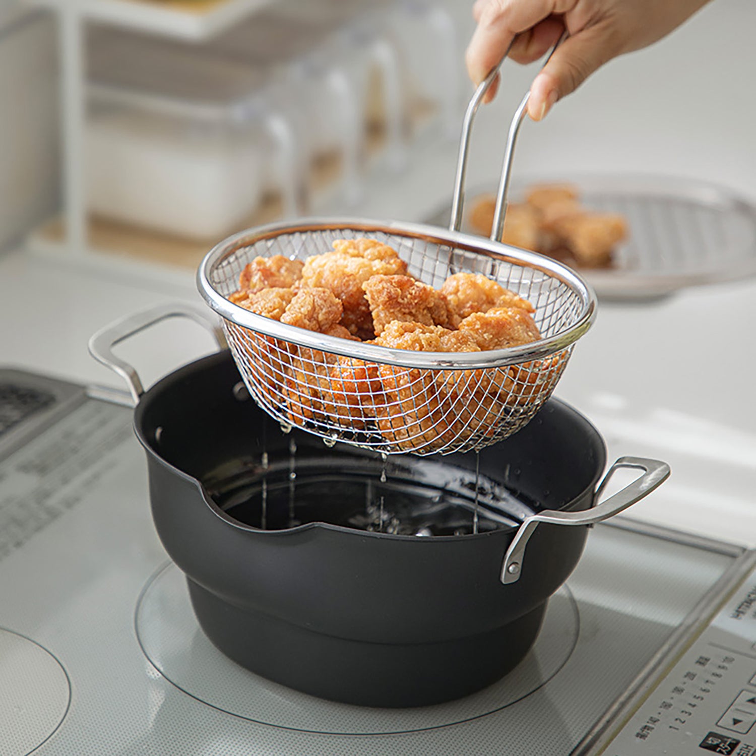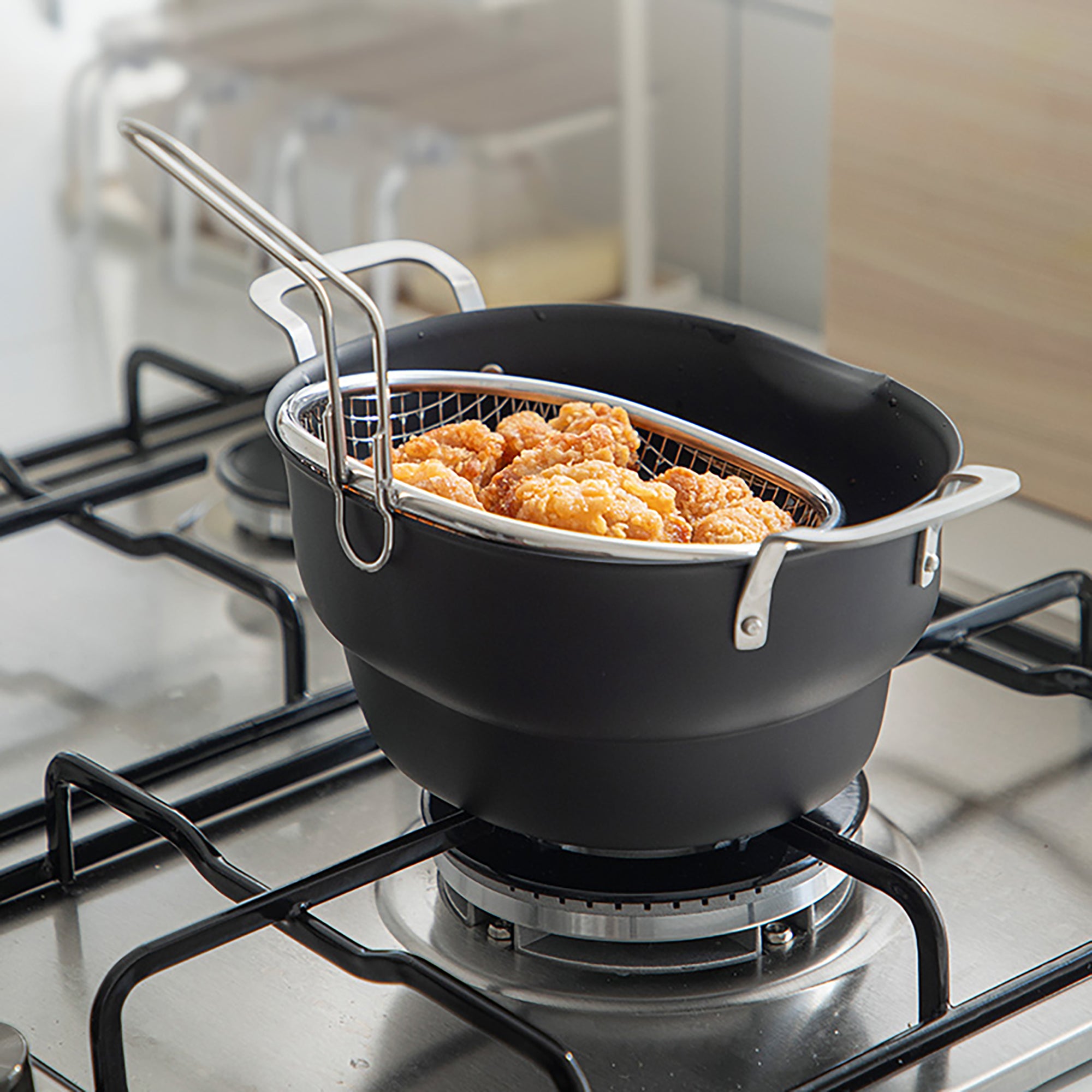 Conçue spécialement pour la friture, cette friteuse ovale en fonte Shimoyama offre une forme profonde et resserrée à la base, permettant de réduire les éclaboussures d’huile et de limiter la quantité utilisée.