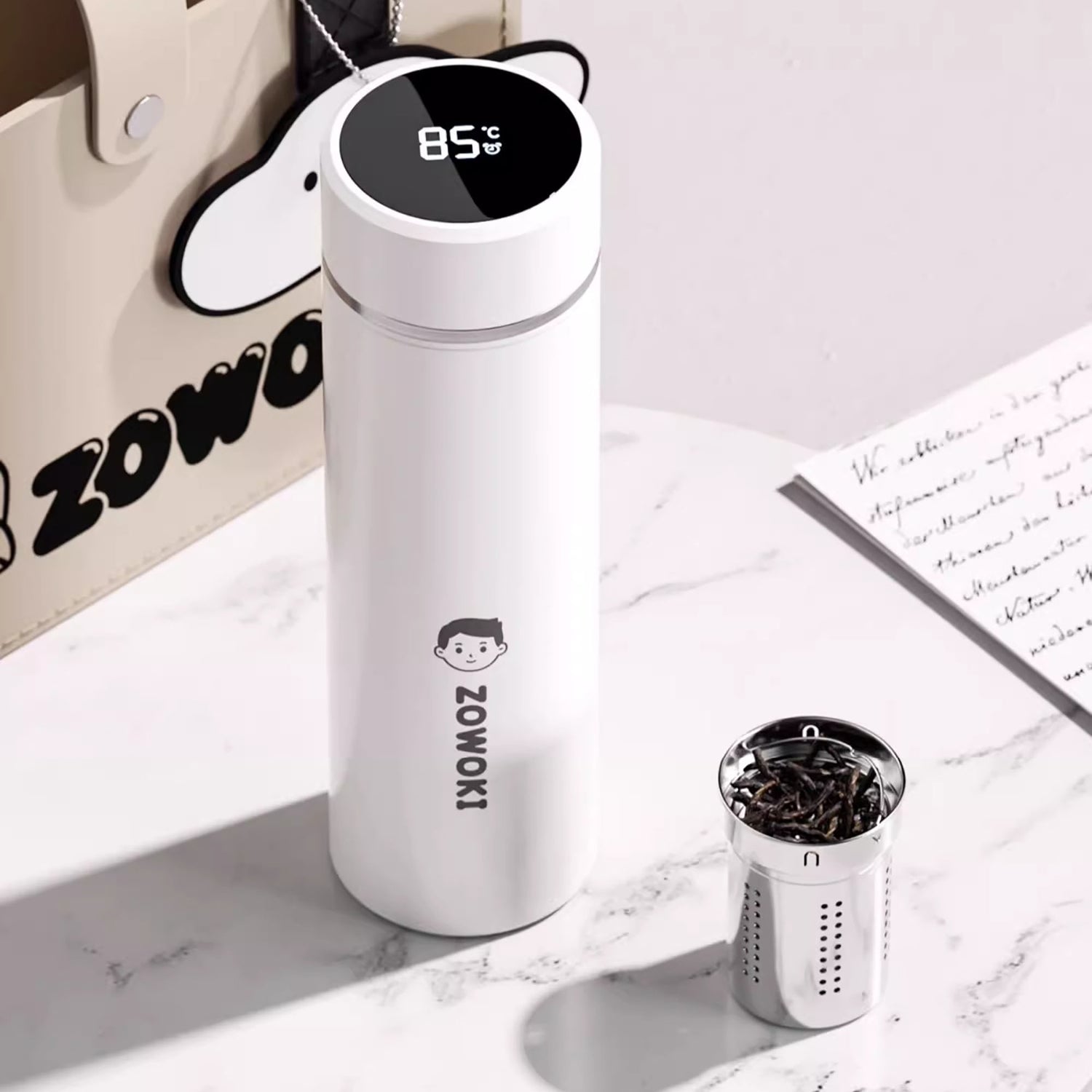 Cette gourde isotherme en inox 316 offre une excellente conservation de la chaleur et du froid. Son couvercle tactile affiche instantanément la température de l’eau, vous permettant de boire en toute sécurité. Dotée d’un infuseur à thé en acier inoxydable à mailles fines, elle sépare aisément les feuilles de thé pour une dégustation pure et raffinée. Élégante et fonctionnelle, elle est idéale pour le bureau, les voyages ou le quotidien.