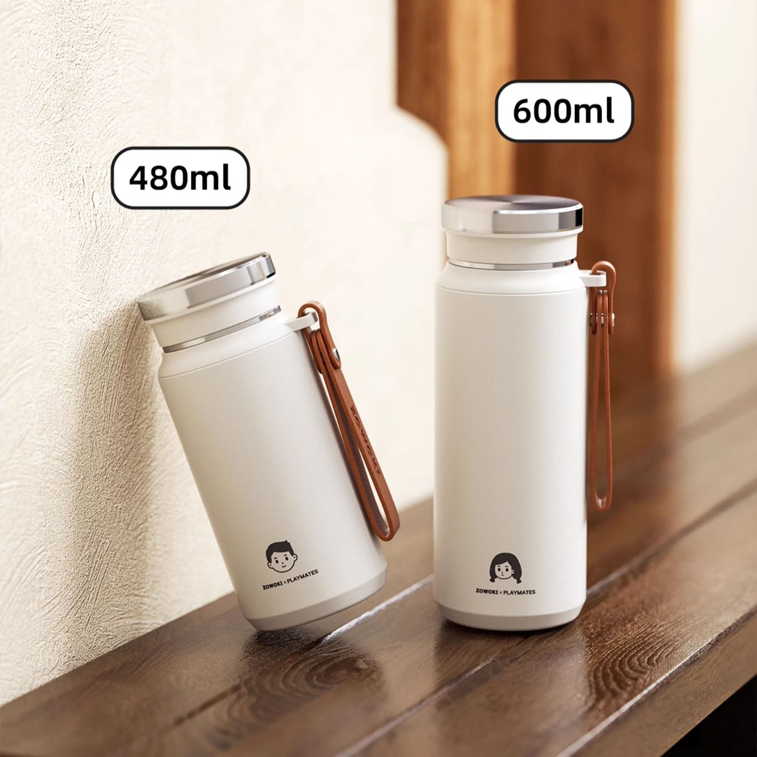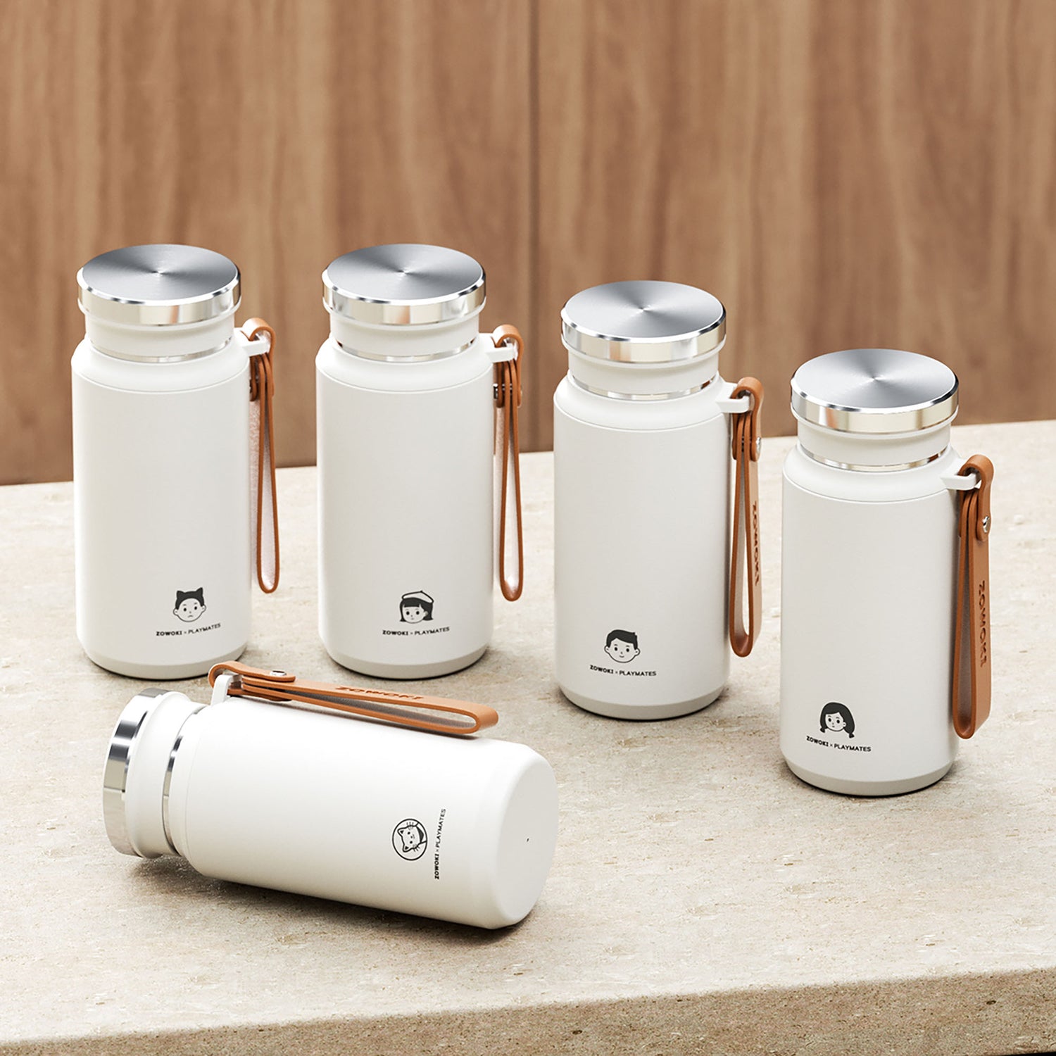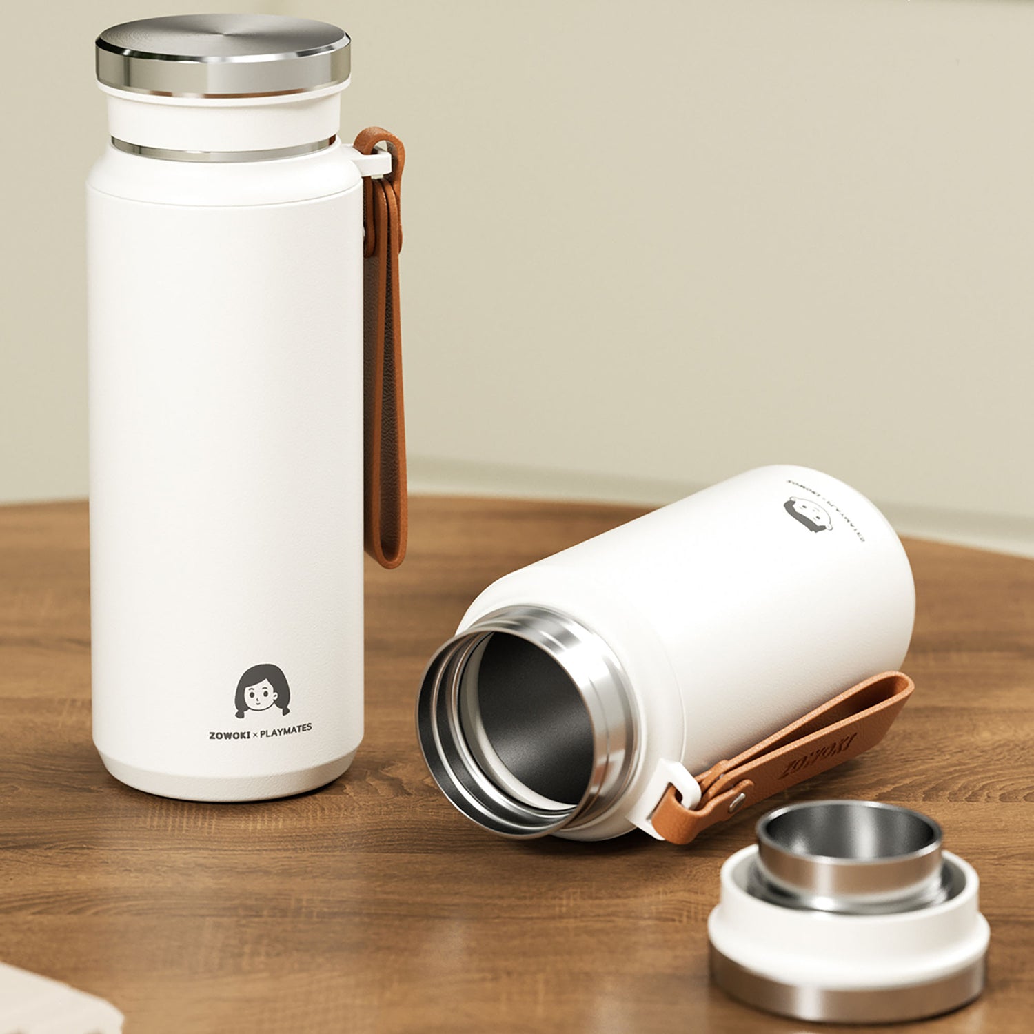Dotée d’un filtre à thé en acier inoxydable et d’un design ingénieux séparant l’eau du thé, cette gourde incarne le style minimaliste japonais. Avec des motifs adorables créés par des designers, elle ajoute une touche chaleureuse à votre quotidien. Son intérieur en acier inoxydable SUS316 de qualité alimentaire garantit une isolation longue durée, grâce à une conception sans vide avec double paroi. Équipée d’une sangle pratique, elle est parfaite pour être emportée partout. Le couvercle multifonction peut également servir de petite tasse, idéal pour savourer une gorgée de thé. Disponible en deux tailles pour répondre à tous vos besoins de déplacement. Personnalisez-la avec vos propres motifs ou messages pour en faire un objet unique. Parfaite pour un usage personnel ou comme cadeau.
