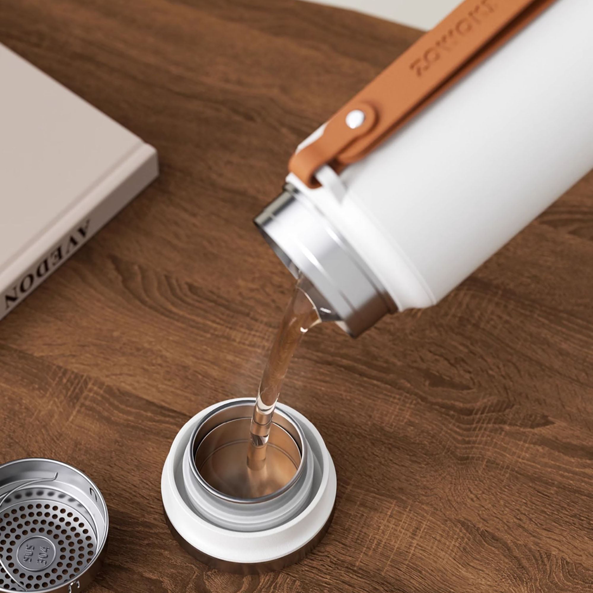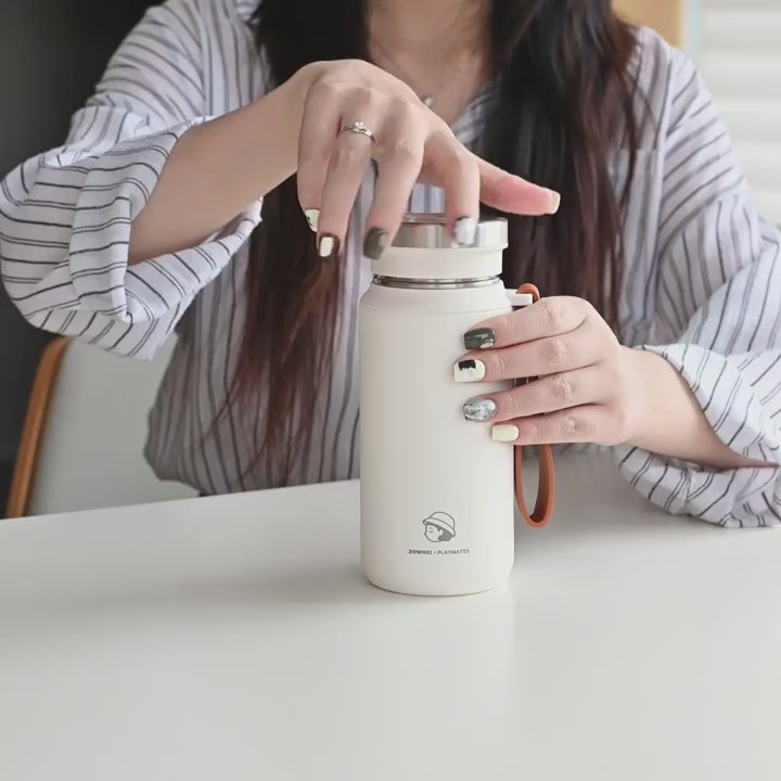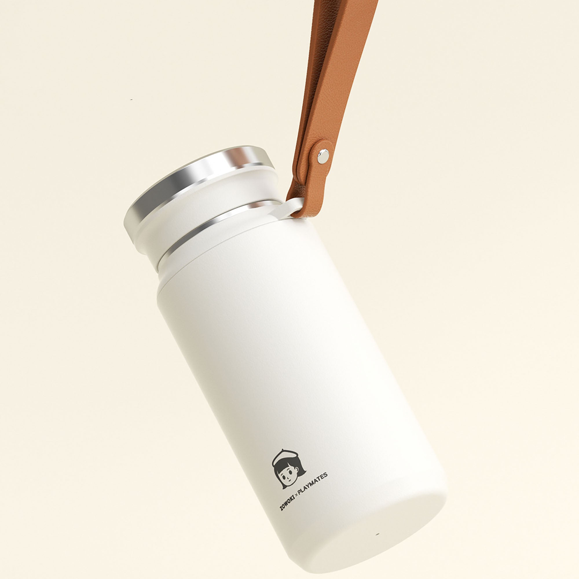 Dotée d’un filtre à thé en acier inoxydable et d’un design ingénieux séparant l’eau du thé, cette gourde incarne le style minimaliste japonais. Avec des motifs adorables créés par des designers, elle ajoute une touche chaleureuse à votre quotidien. Son intérieur en acier inoxydable SUS316 de qualité alimentaire garantit une isolation longue durée, grâce à une conception sans vide avec double paroi. Équipée d’une sangle pratique, elle est parfaite pour être emportée partout. Le couvercle multifonction peut également servir de petite tasse, idéal pour savourer une gorgée de thé. Disponible en deux tailles pour répondre à tous vos besoins de déplacement. Personnalisez-la avec vos propres motifs ou messages pour en faire un objet unique. Parfaite pour un usage personnel ou comme cadeau.