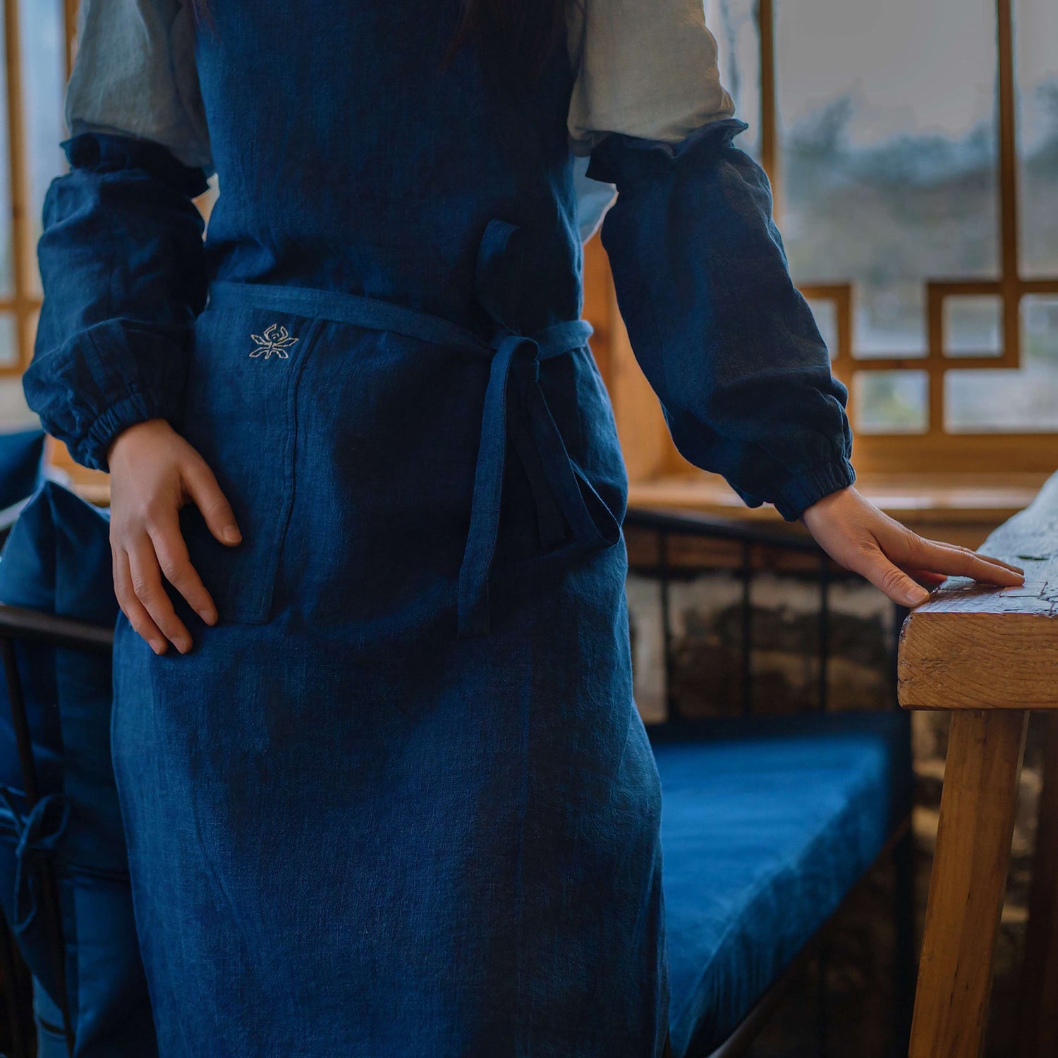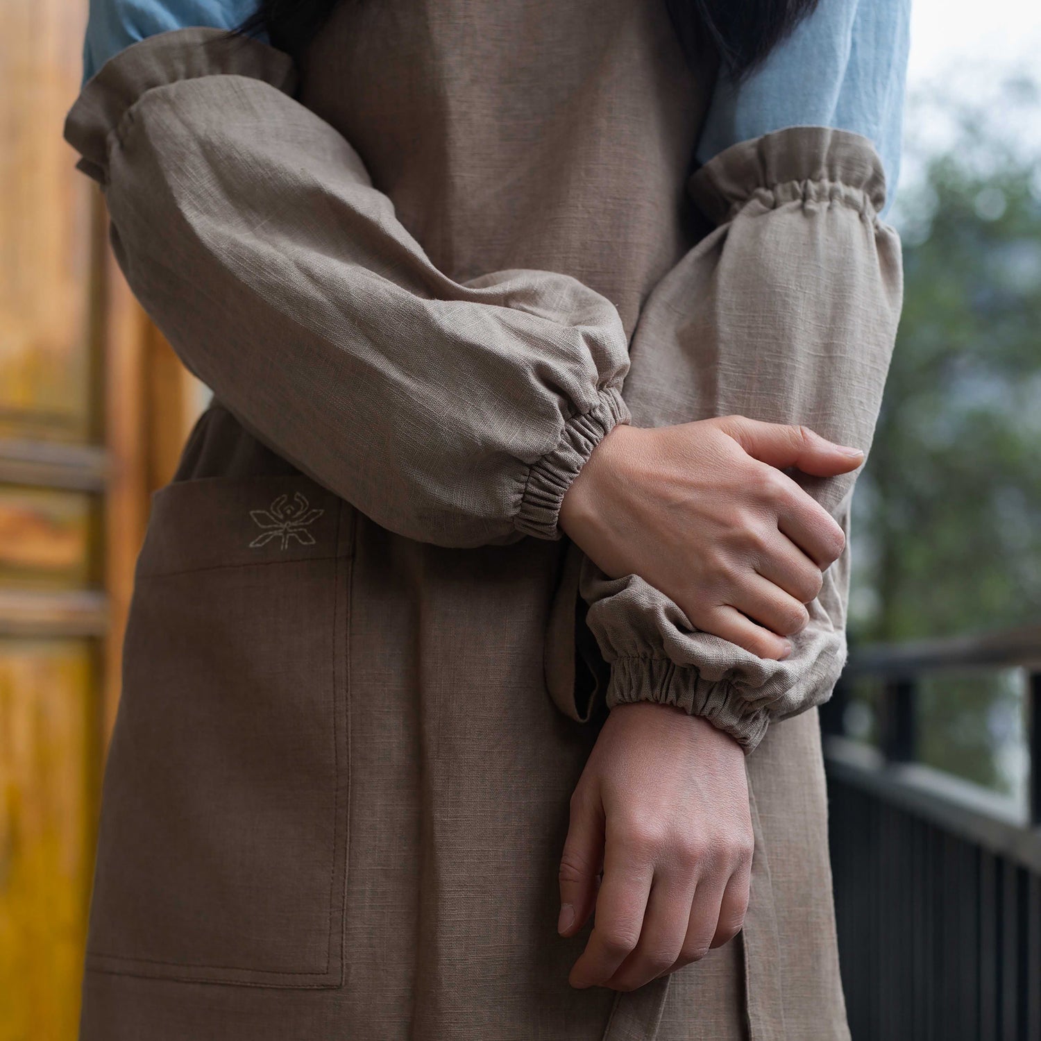 Ces manchettes artisanales sont confectionnées en lin et coton, teintées à la main selon des méthodes végétales traditionnelles. Douces, respirantes et agréables à porter, elles protègent vos manches lors de vos activités quotidiennes : cuisine, jardinage, artisanat… Le design épuré s’adapte naturellement à tous les styles. Disponibles en bleu indigo et en ton neutre, elles ajoutent une touche discrète et poétique à vos gestes du quotidien.