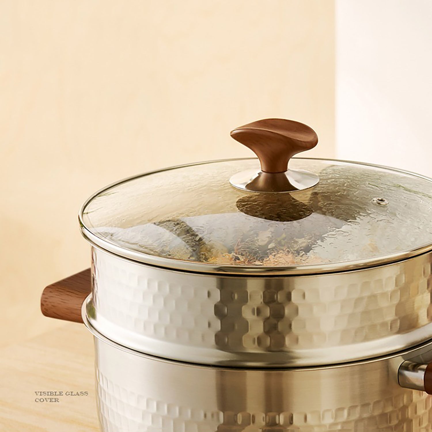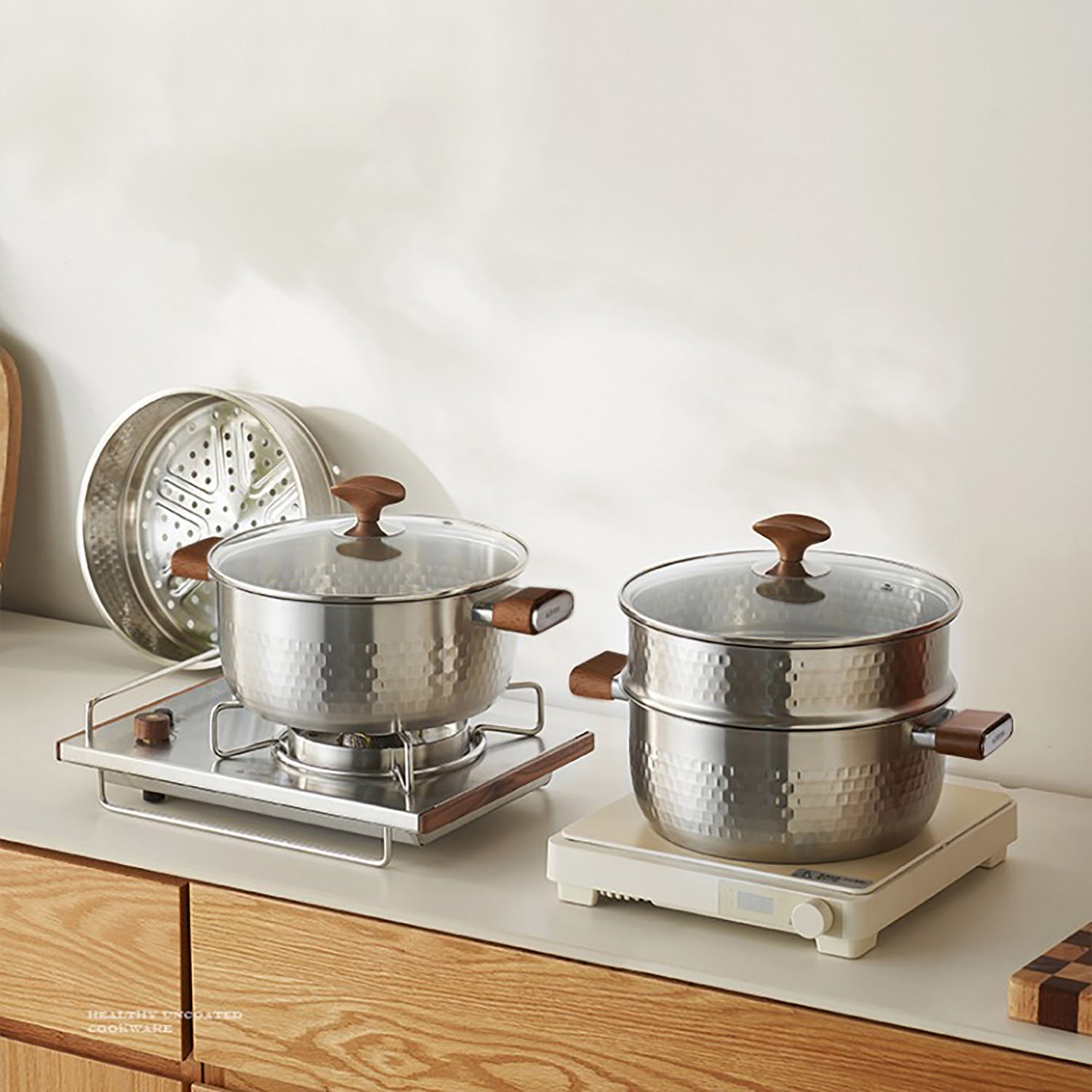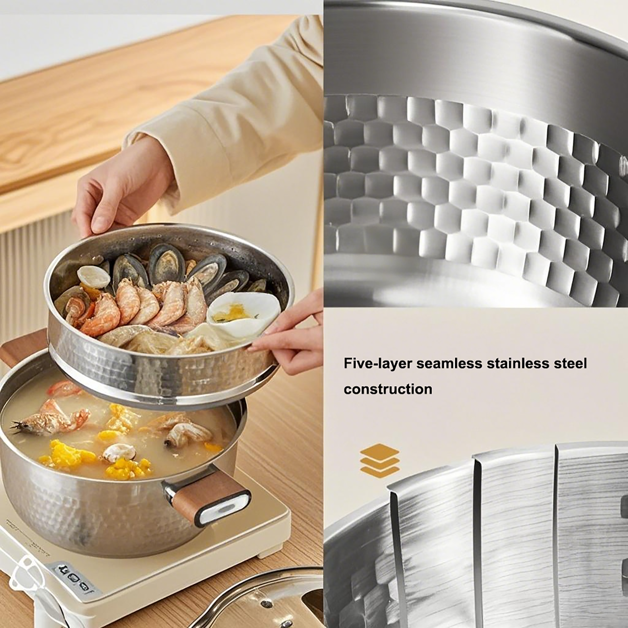Cette Marmite Yukihira en acier inoxydable 304 est conçue avec un fond épais multicouche 5 plis, garantissant une diffusion rapide et homogène de la chaleur. Son design martelé traditionnel est à la fois esthétique et fonctionnel. Polyvalente, elle permet de bouillir, mijoter ou cuire à la vapeur avec un seul ustensile. Compatible avec la plupart des sources de chaleur : gaz, plaques électriques, plaque induction ,vitrocéramique. Un incontournable dans la cuisine du quotidien.