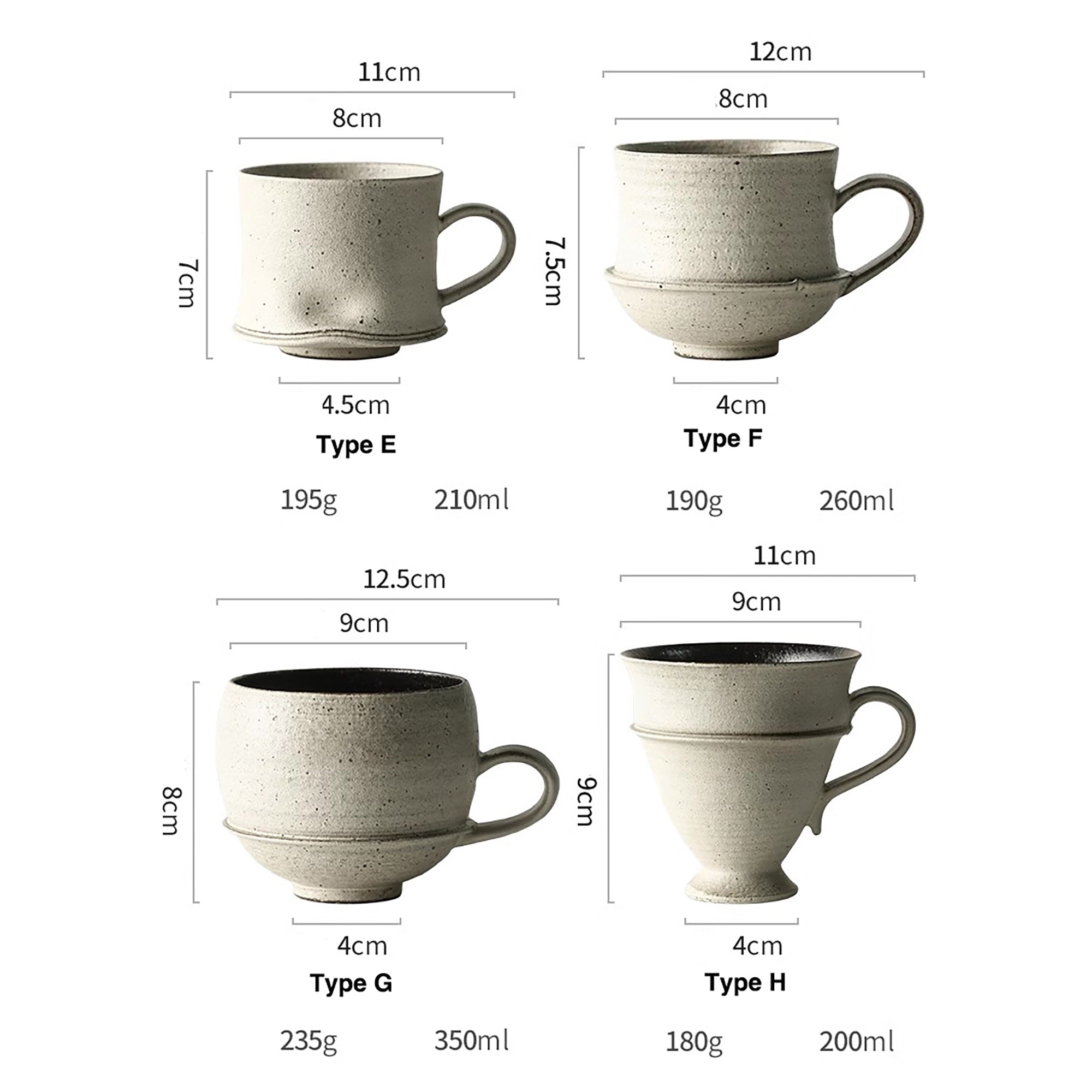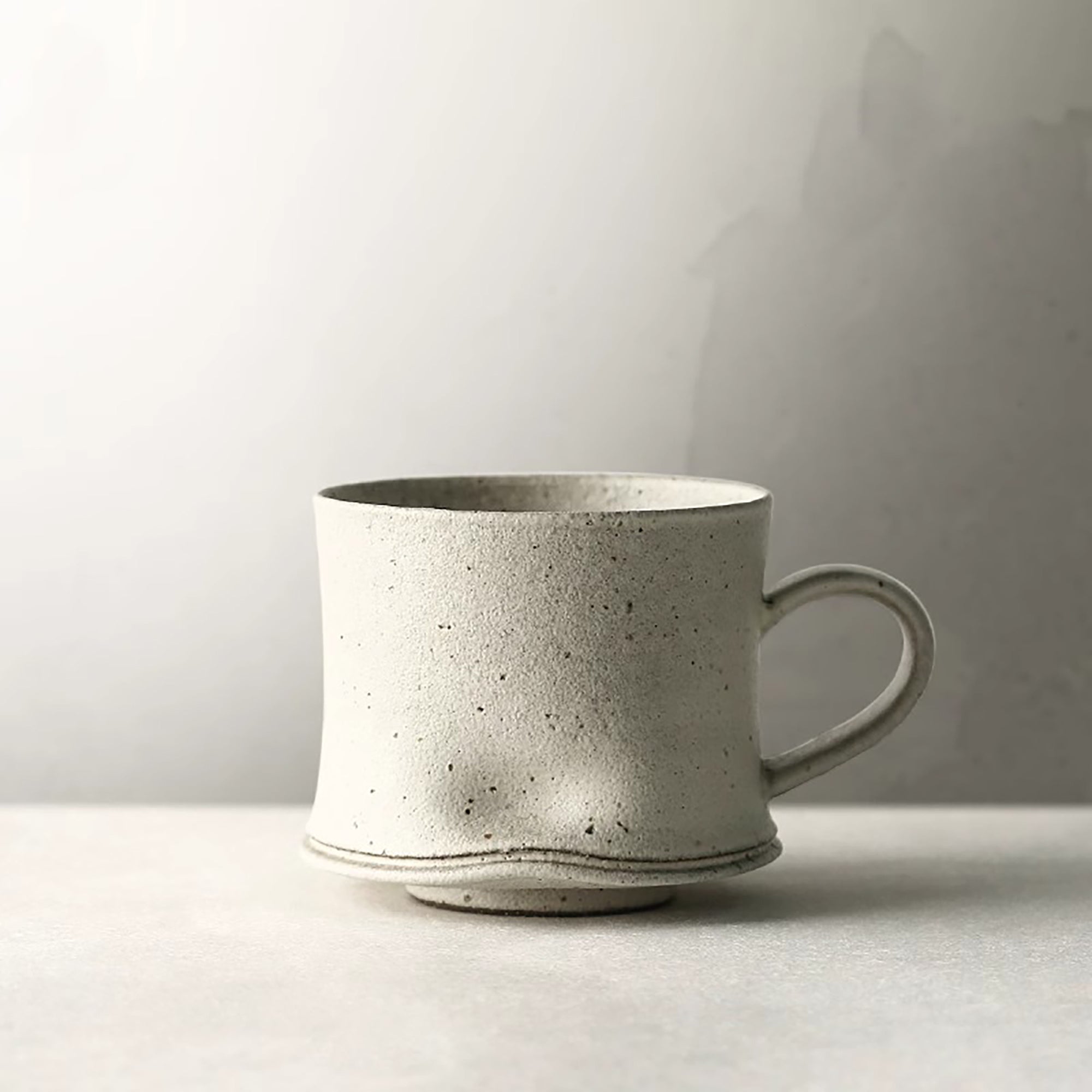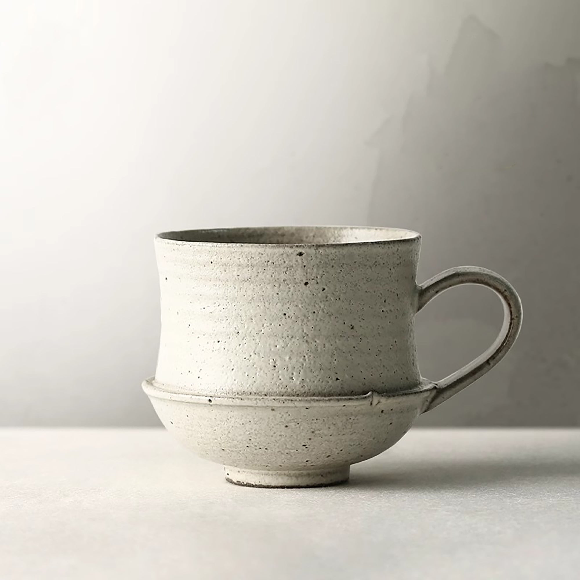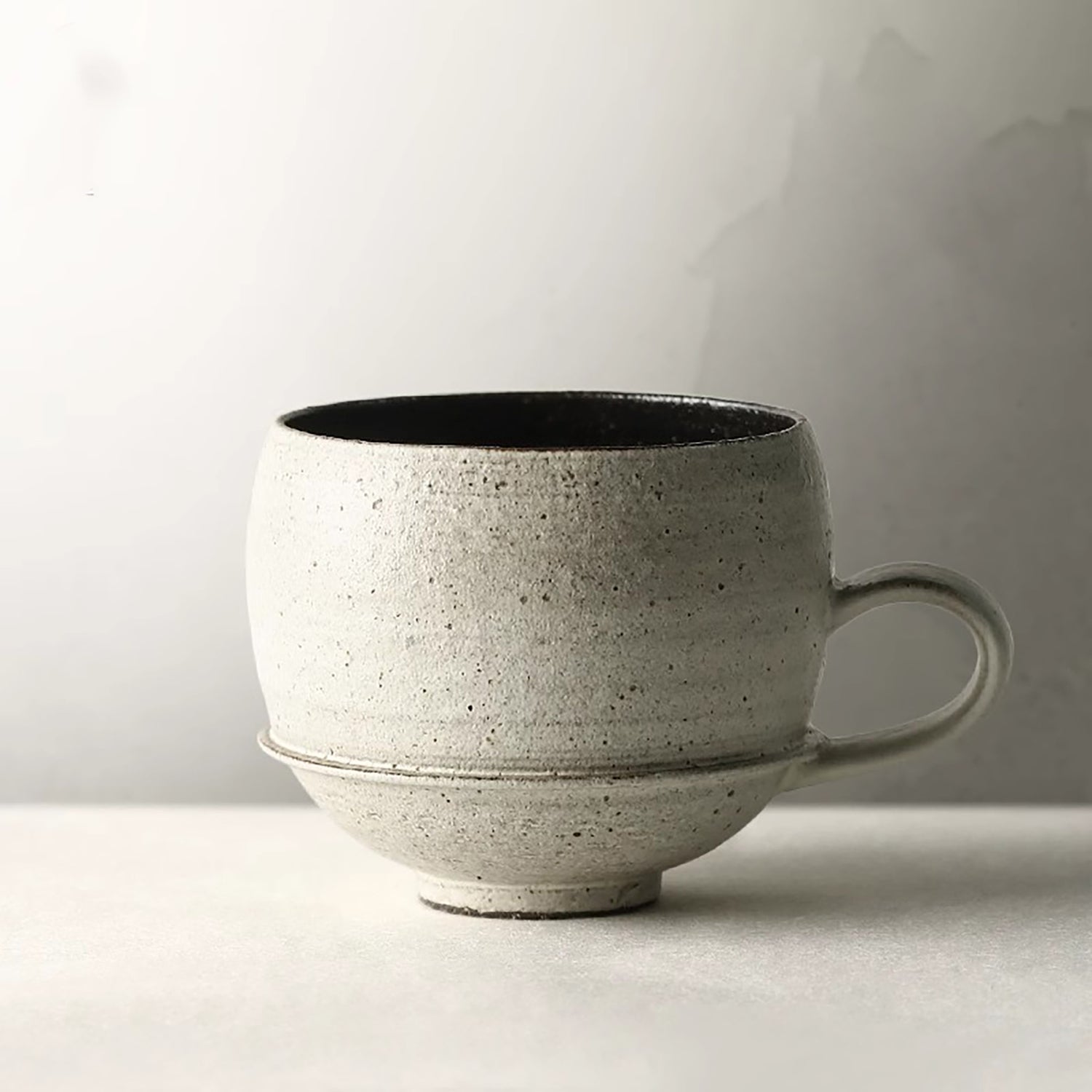 Mug fabriquée à la main à Jingdezhen en grès brut, utilisant la technique traditionnelle de cuisson sous émail sans plomb à haute température. Un design minimaliste et vintage avec des contours adorables, apportant une touche de calme et de charme à votre moment café. Parfait pour un usage personnel ou comme cadeau.