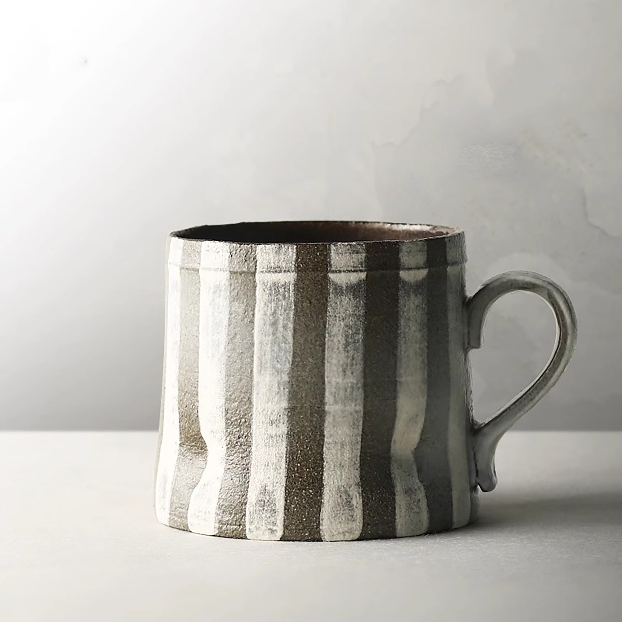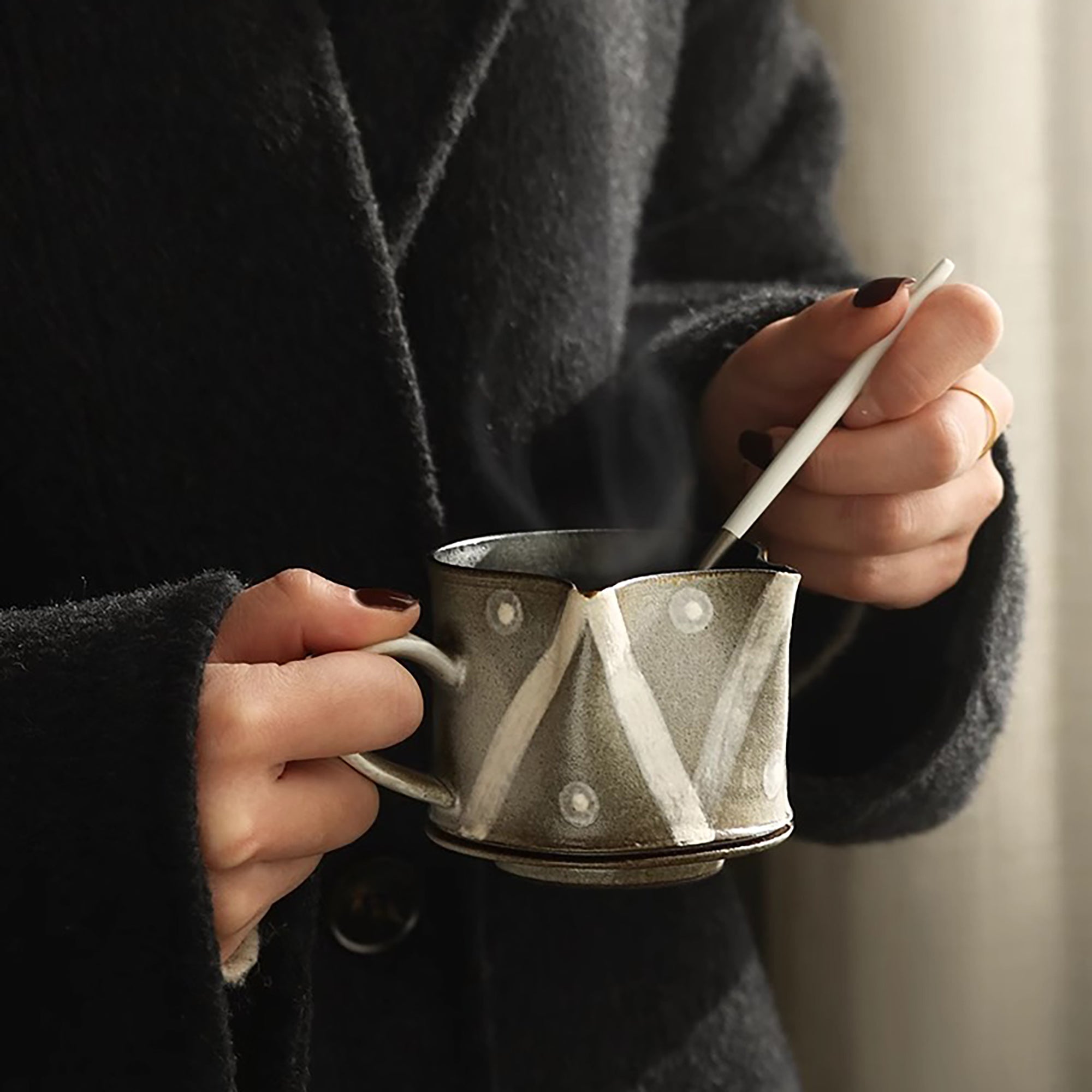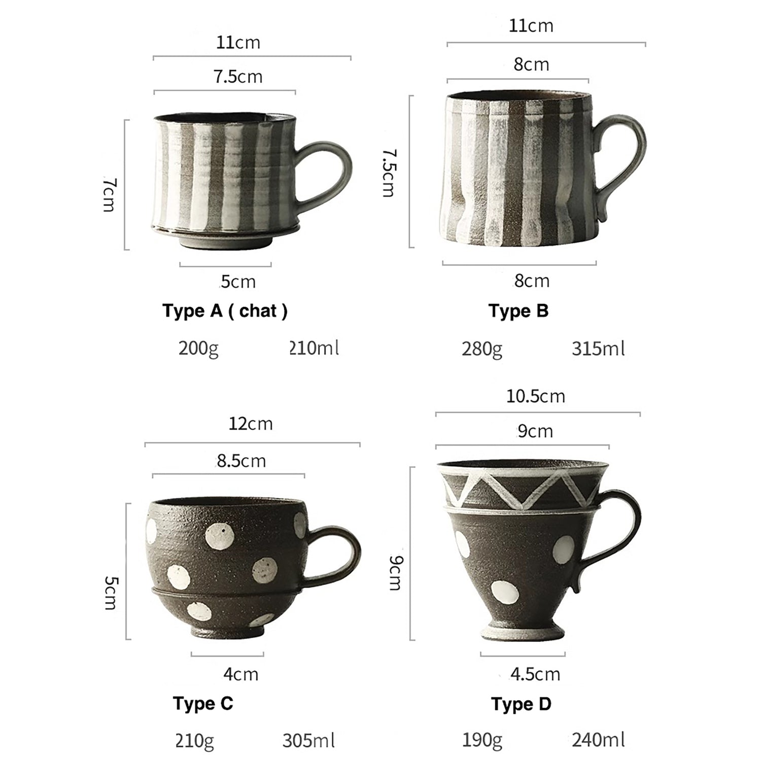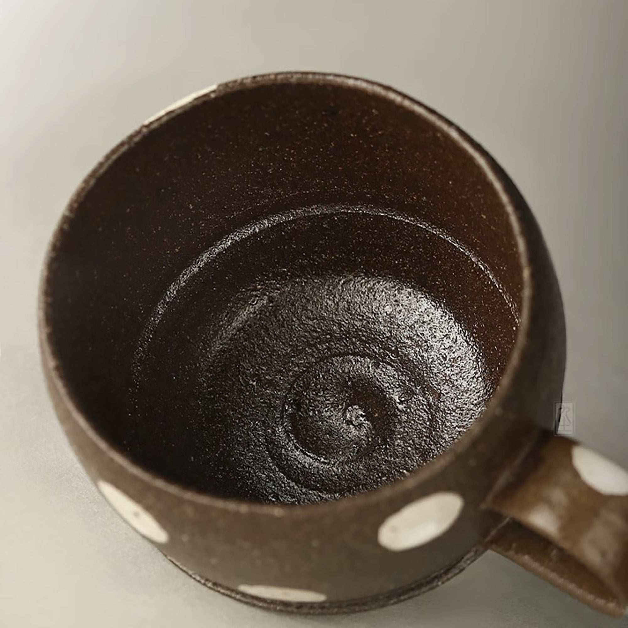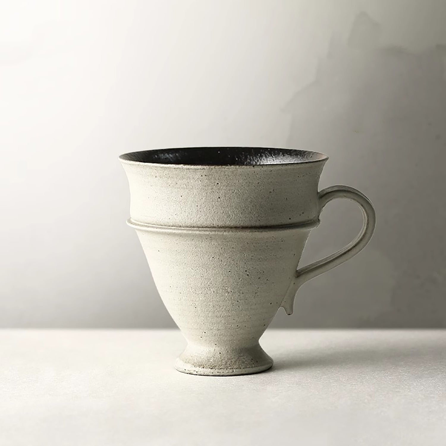 Mug fabriquée à la main à Jingdezhen en grès brut, utilisant la technique traditionnelle de cuisson sous émail sans plomb à haute température. Un design minimaliste et vintage avec des contours adorables, apportant une touche de calme et de charme à votre moment café. Parfait pour un usage personnel ou comme cadeau.