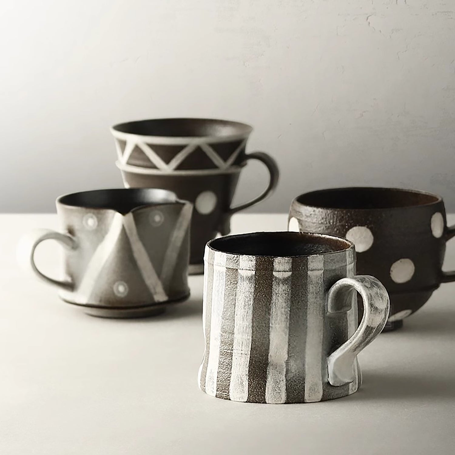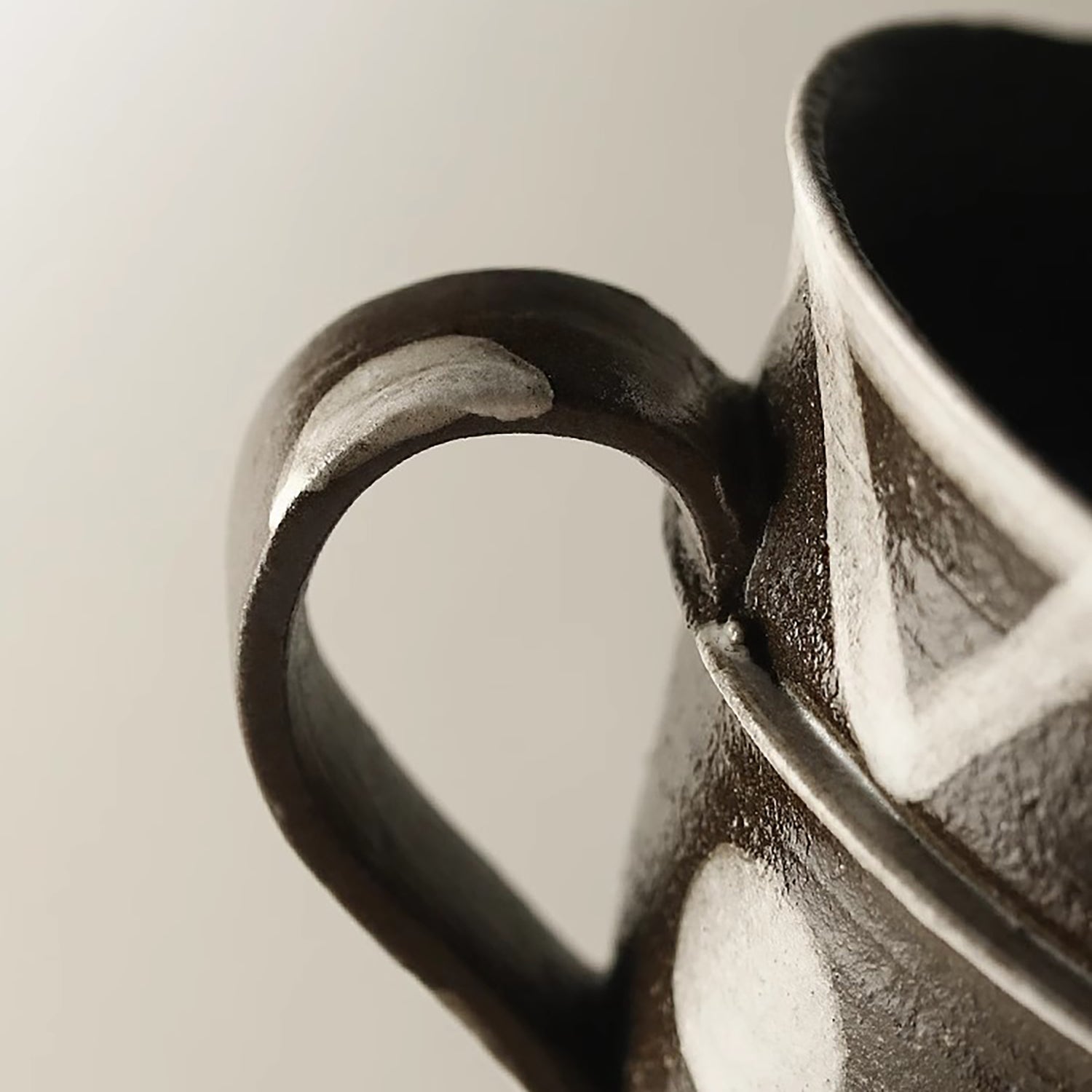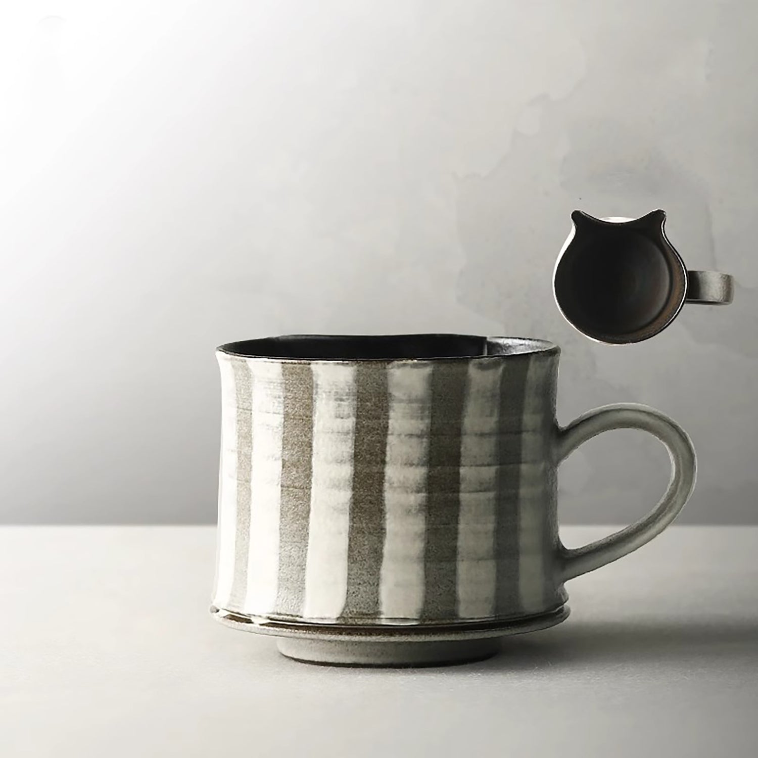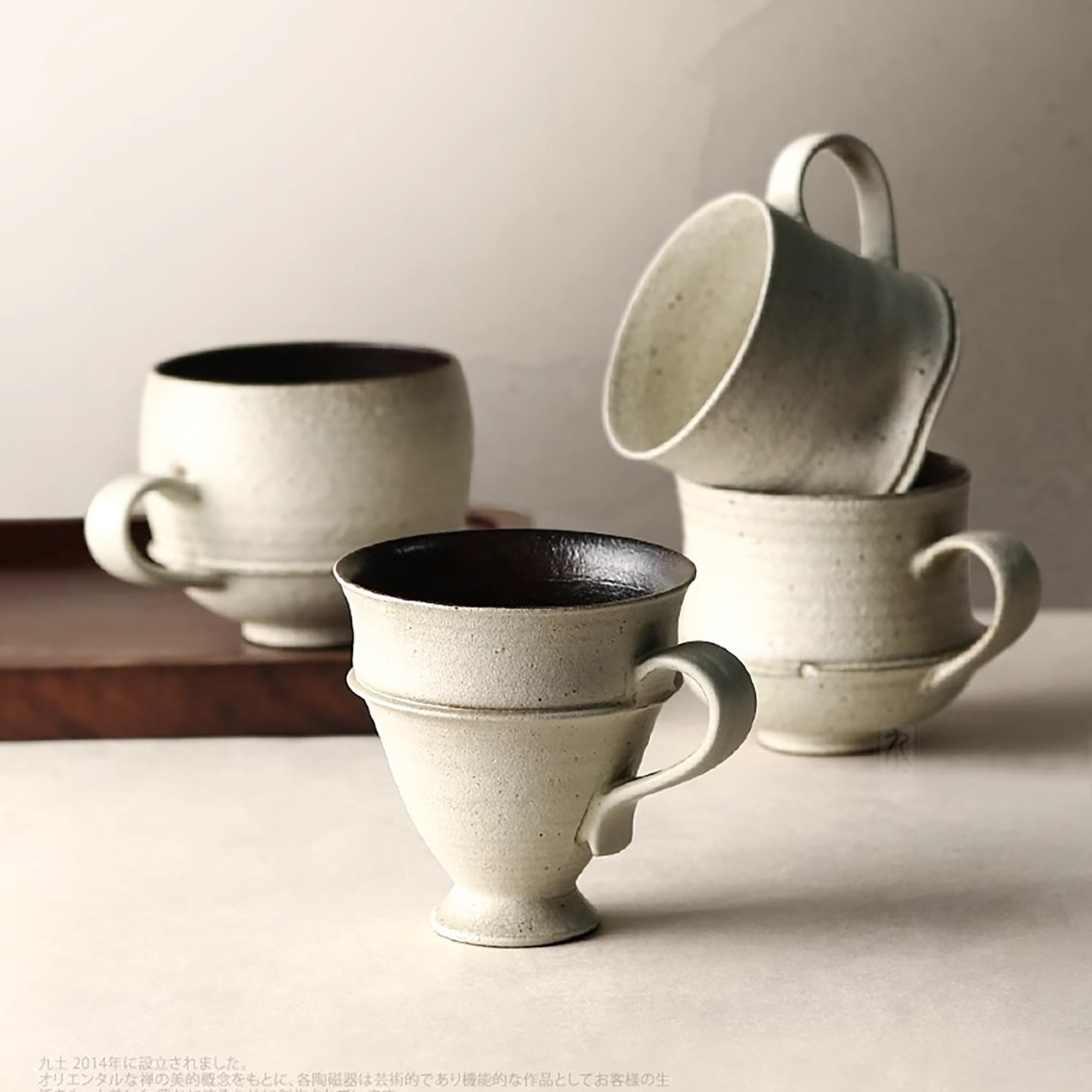 Mug fabriquée à la main à Jingdezhen en grès brut, utilisant la technique traditionnelle de cuisson sous émail sans plomb à haute température. Un design minimaliste et vintage avec des contours adorables, apportant une touche de calme et de charme à votre moment café. Parfait pour un usage personnel ou comme cadeau.
