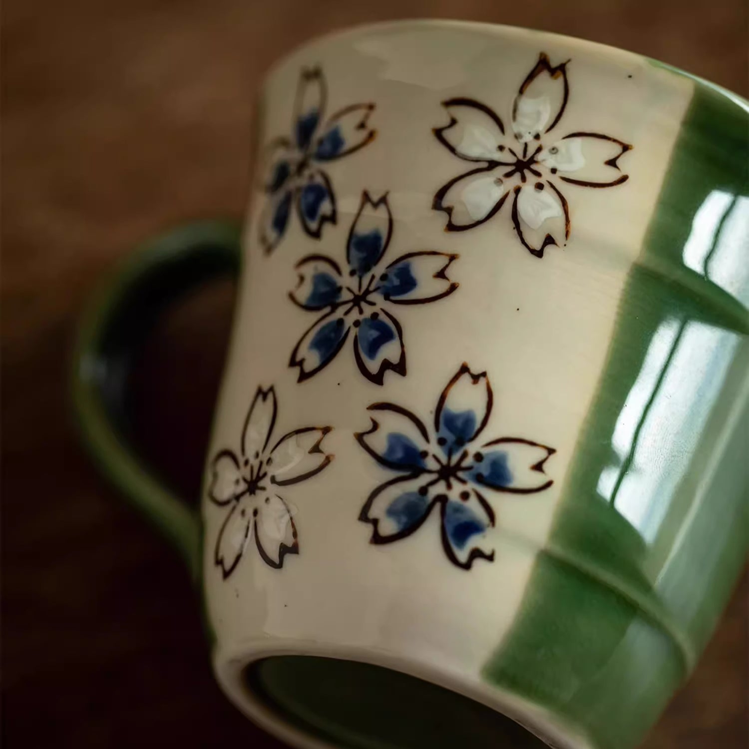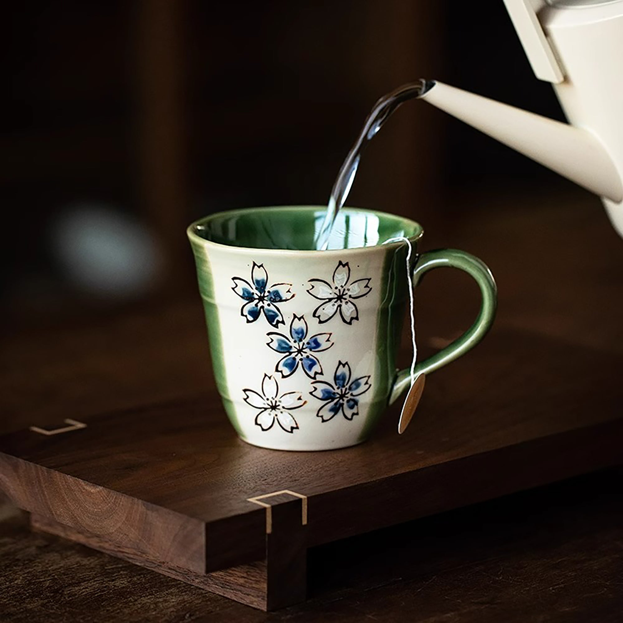 Ce mug en céramique Mino-yaki est décoré à la main par des artisans japonais, avec un motif floral au charme rétro, réalisé selon la technique traditionnelle de glaçure sous haute température sans plomb. La porcelaine, lisse et douce au toucher, met en valeur la finesse du dessin. Parfait pour savourer un café ou un thé au quotidien, ce mug fait aussi un cadeau raffiné chargé de poésie japonaise.