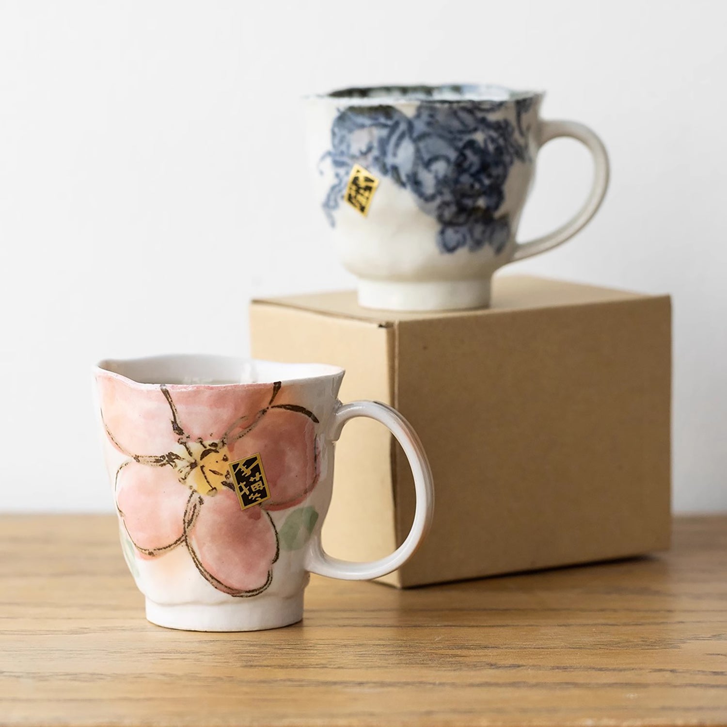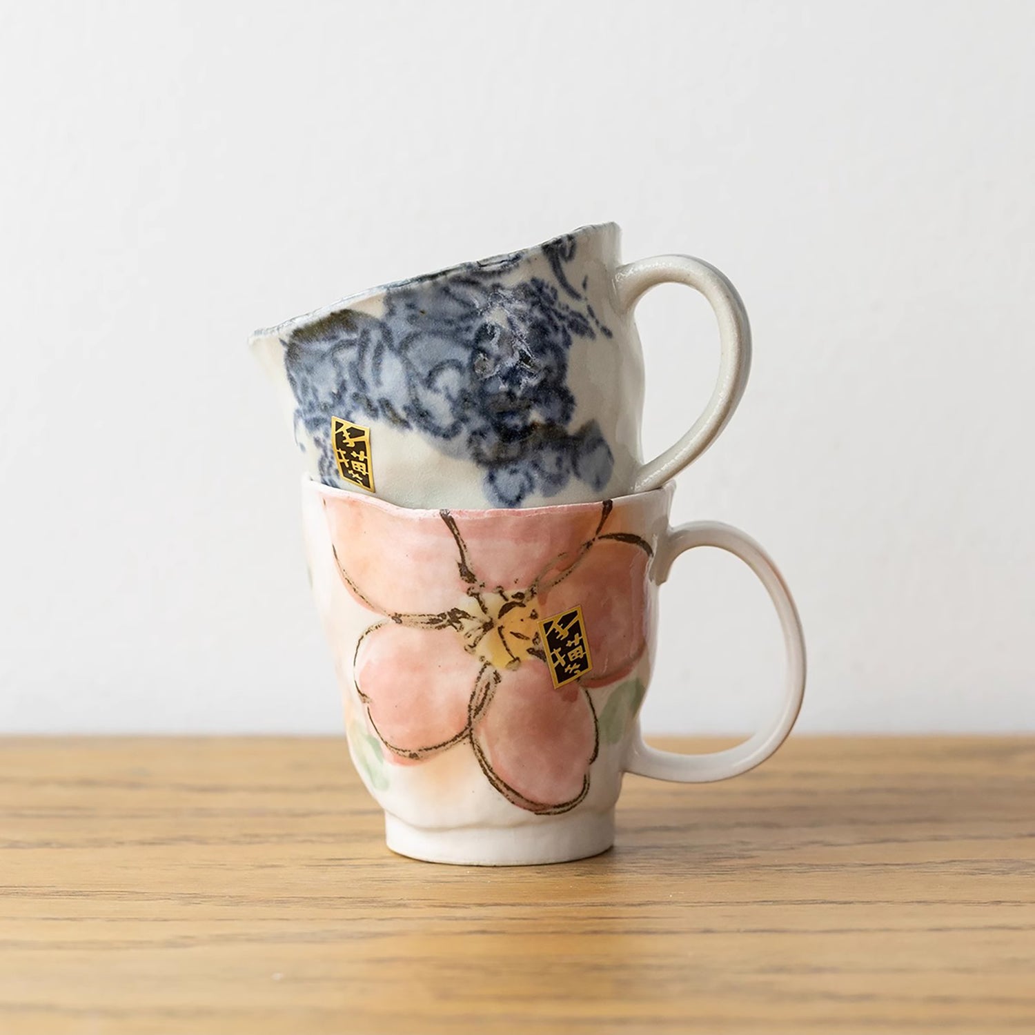 Ce mug en céramique Mino-yaki est façonné à la main selon la technique traditionnelle de peinture sous émail sans plomb à haute température. Son bord irrégulier met en valeur l’unicité du travail artisanal, tandis que son motif aquarelle inspiré du Japon apporte une touche chaleureuse et authentique. La finition émaillée du rebord accentue son charme vintage. Idéal pour un usage quotidien ou comme cadeau raffiné.