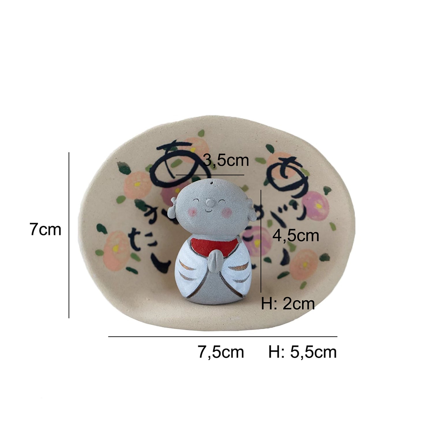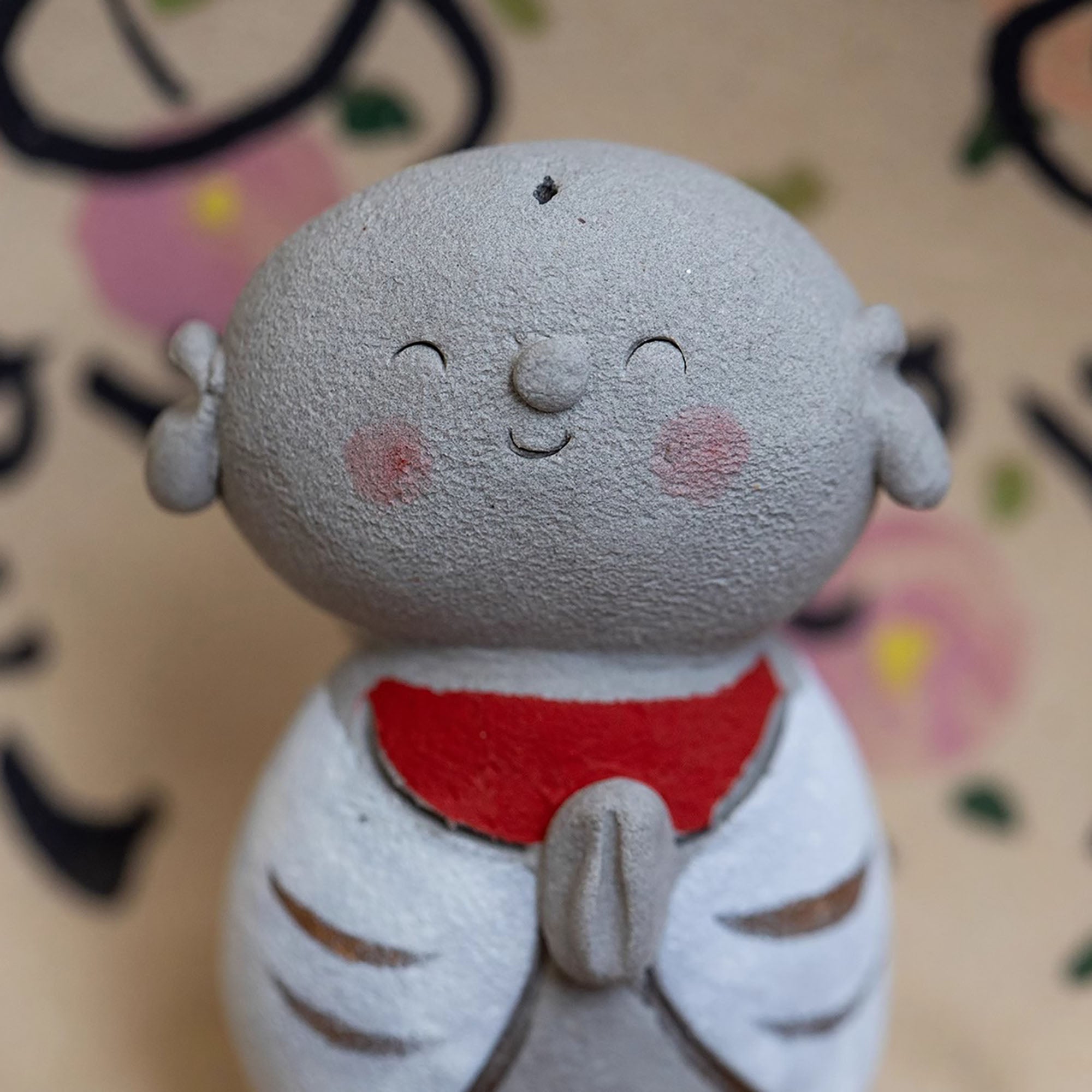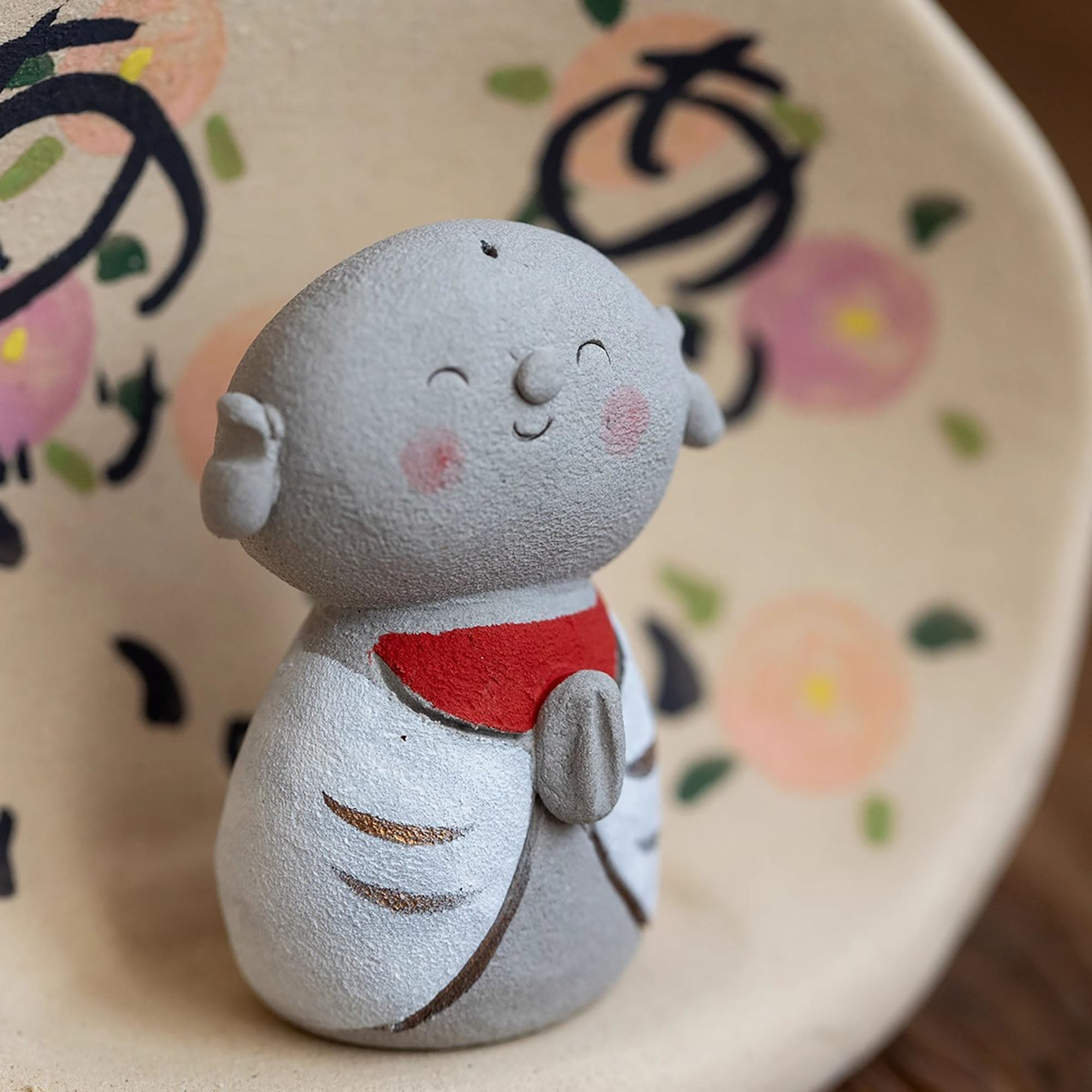 Fabriqué à la main en Mino-yaki traditionnel, ce petit objet décoratif en grès représente Jizō les mains jointes sous une maisonnette de prière. Avec son style artisanal doux et rustique, il apporte une touche chaleureuse, protectrice et apaisante à votre espace de vie.