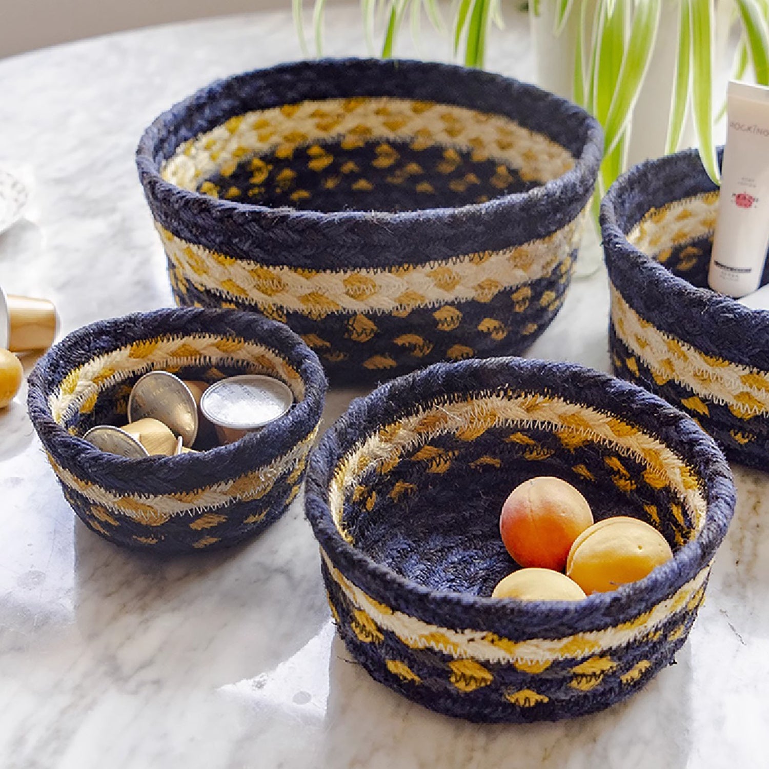 Les motifs, soigneusement imprimés à la main par des artisans, sont réalisés à partir de teintures écologiques, garantissant durabilité et résistance au lavage sans décoloration. Idéal pour organiser vos espaces tout en ajoutant une touche naturelle et élégante, ce panier est parfait pour une utilisation quotidienne ou comme idée cadeau.