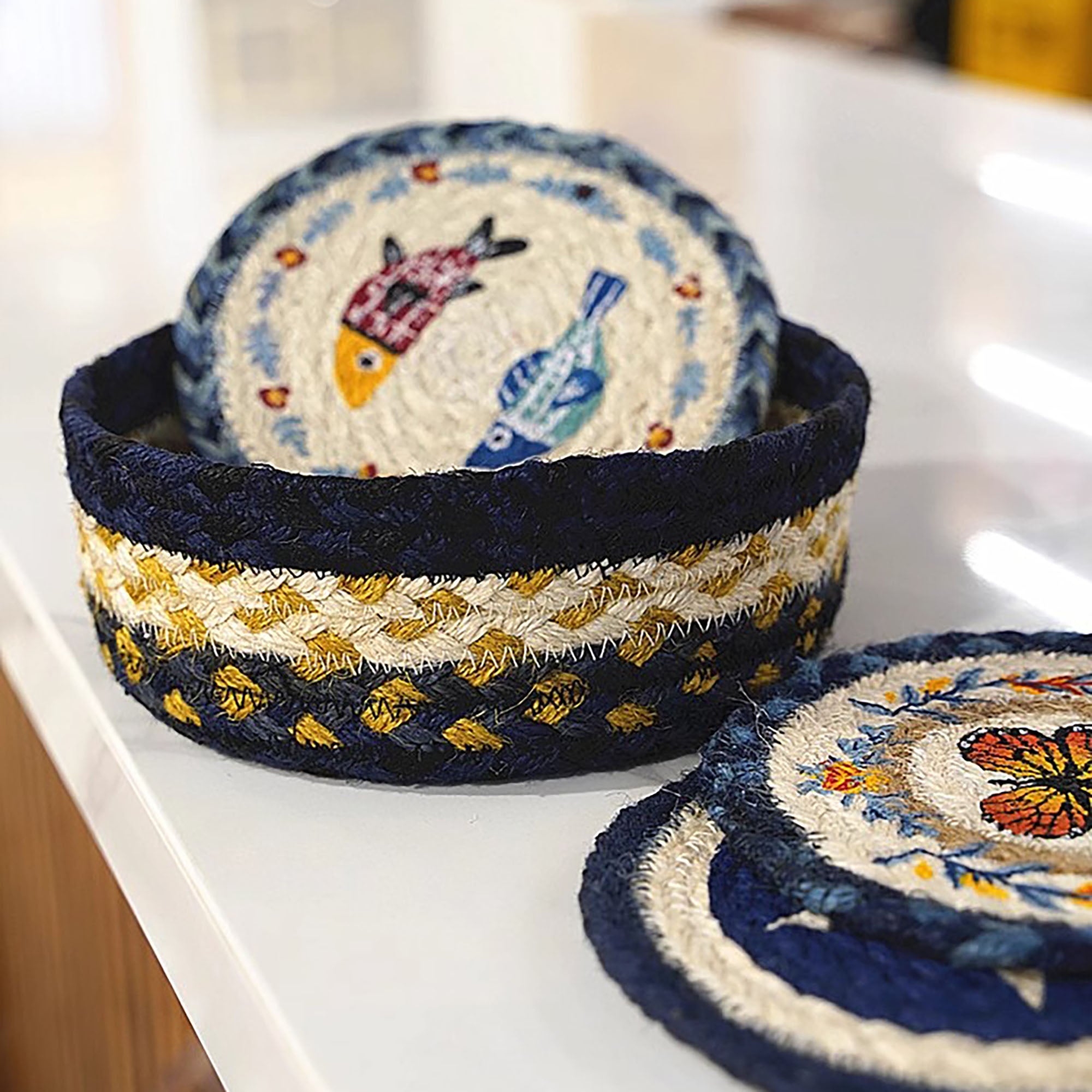 Ce panier de rangement en jute naturelle tressée à la main est un mélange parfait de fonctionnalité et d’esthétique rustique. Sa texture épaisse et sa couleur vintage apportent une ambiance chaleureuse et authentique à votre intérieur.