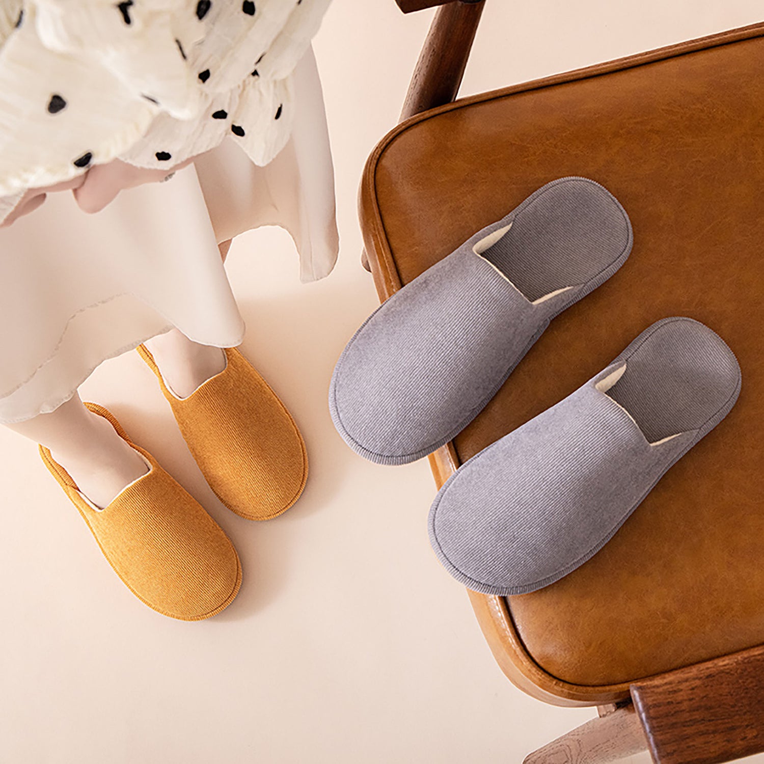 Chaussons à bout fermé en velours côtelé