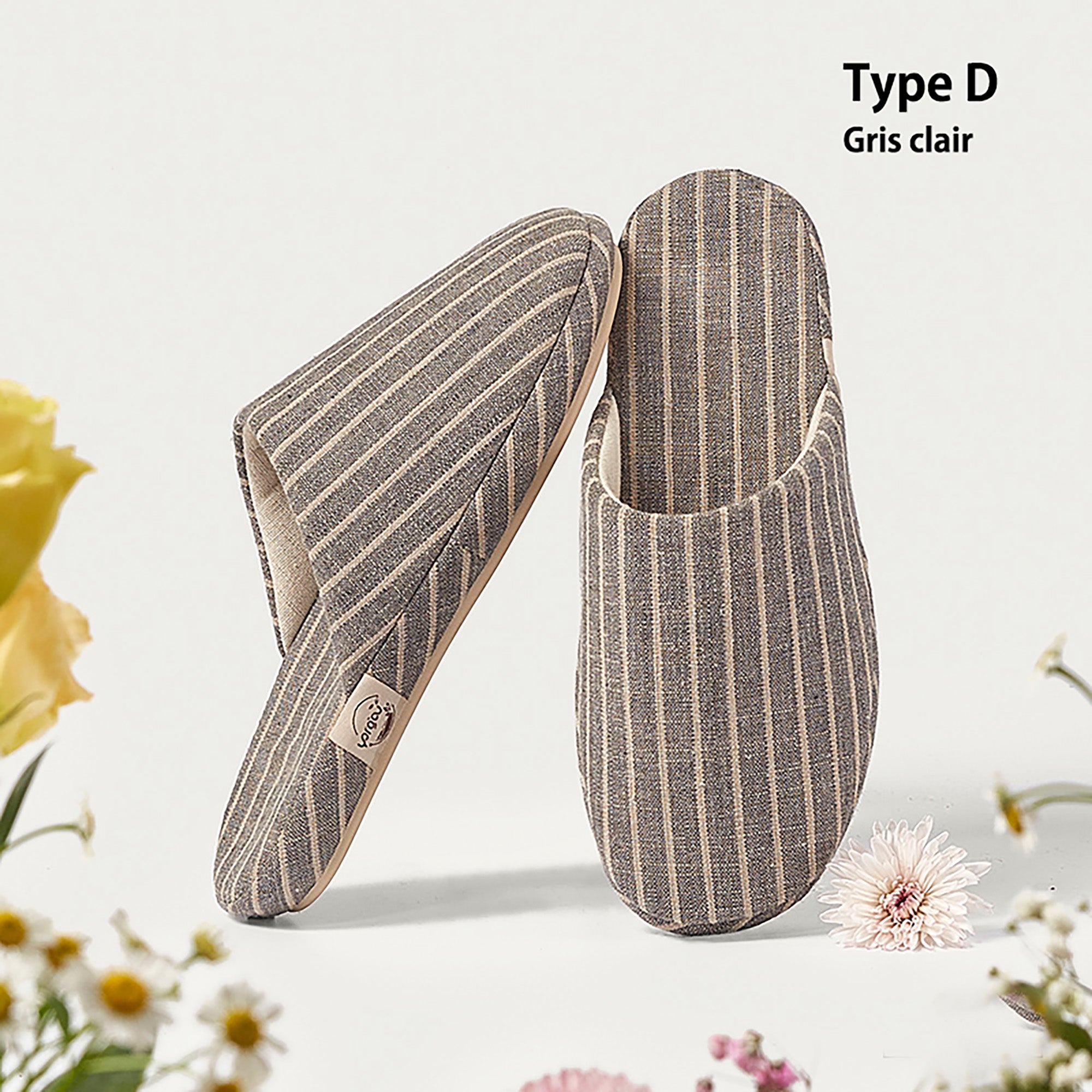 Des Chaussons confortables au style minimaliste, parfaites pour toute l'année. Fabriquées avec une tige et une semelle intermédiaire en lin et coton, elles présentent un design simple et élégant. La semelle en caoutchouc est antidérapante, douce et résistante à l'usure, assurant ainsi un confort et une durabilité exceptionnels.