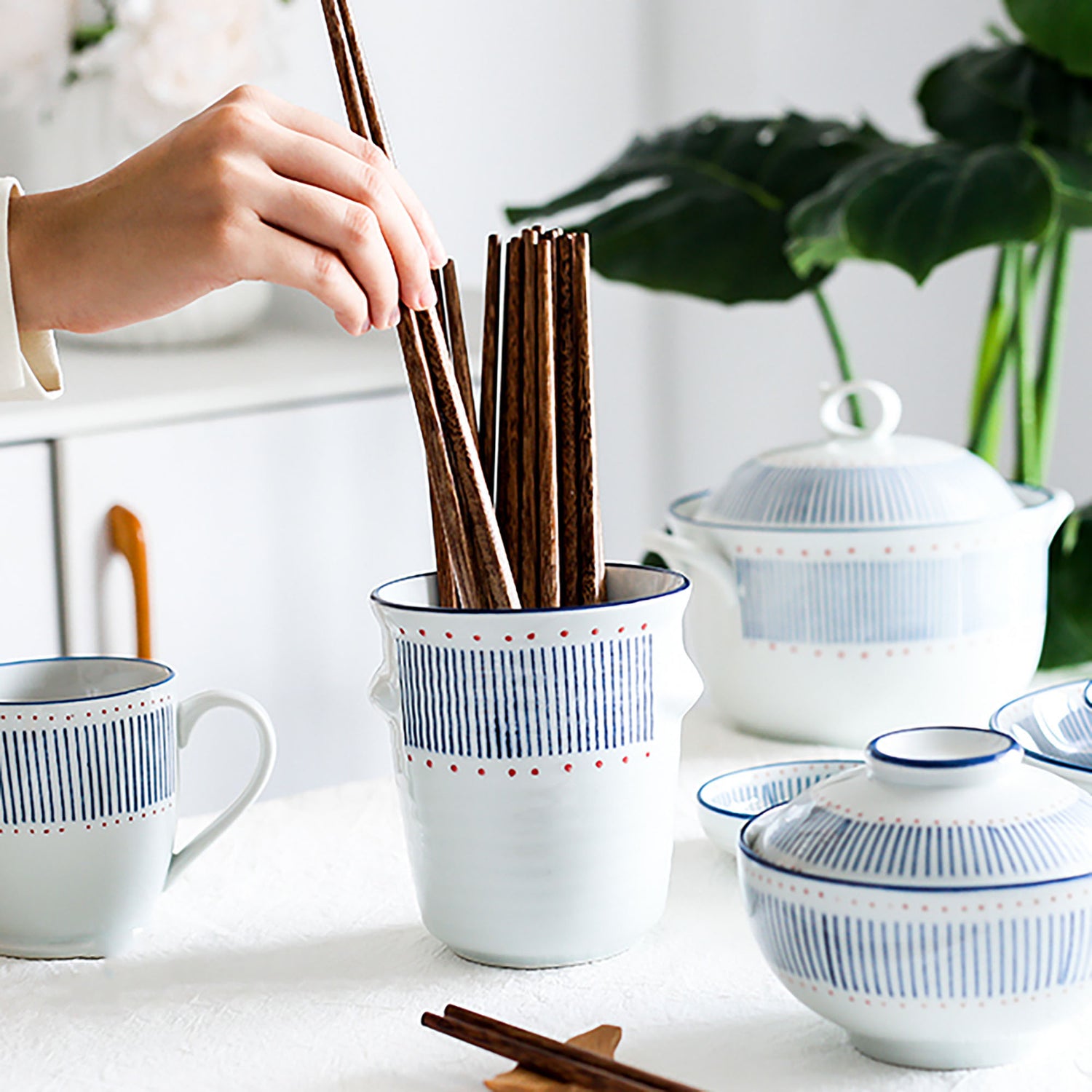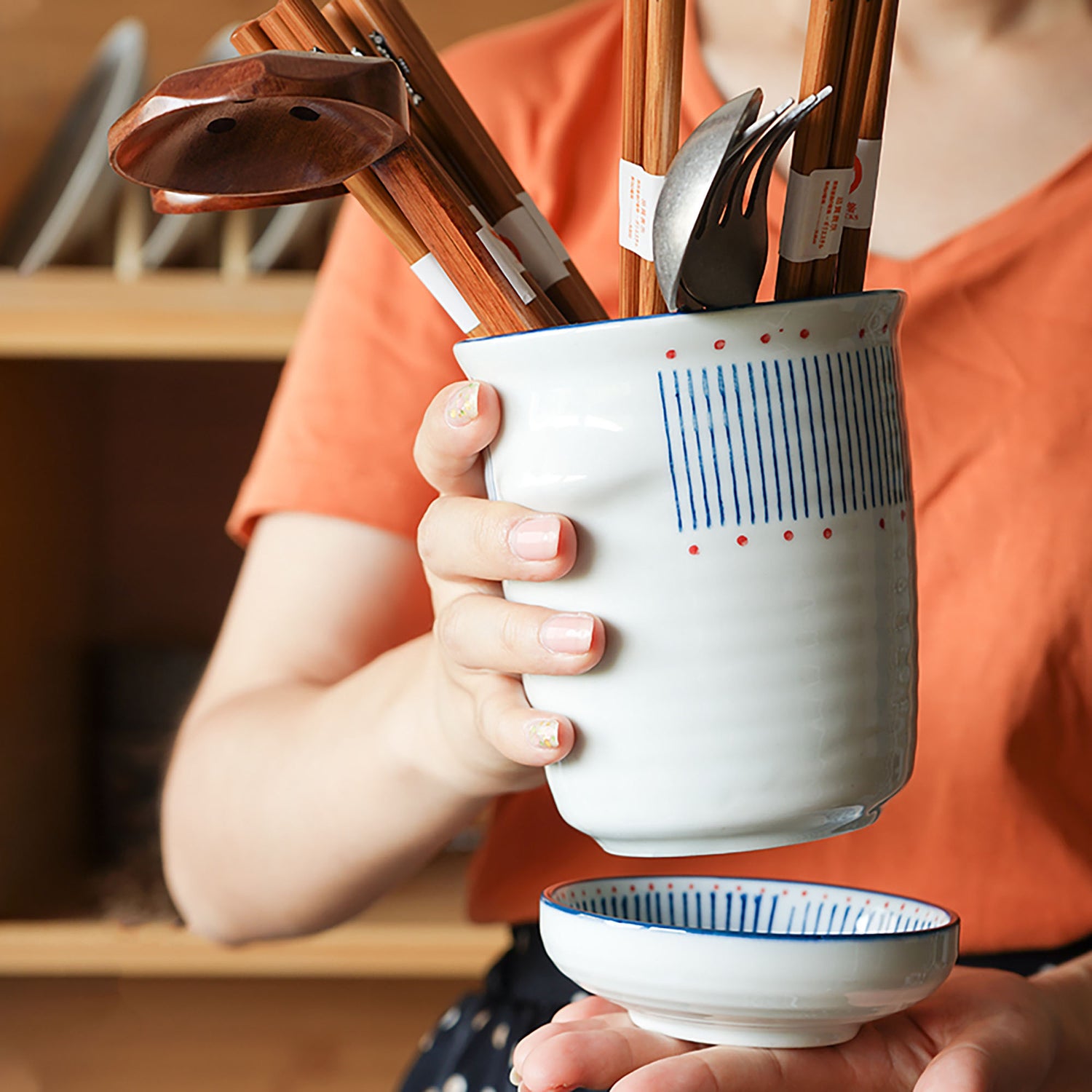 Notre pot à baguettes en céramique japonais peint à la main combine un design classique et minimaliste avec de magnifiques motifs peints à la main. Fabriqué à 1320°, il est durable et résistant. Non seulement il permet de ranger vos baguettes de manière organisée, mais il ajoute également une touche authentiquement japonaise à votre cuisine. Chaque repas devient ainsi une expérience culturelle japonaise.