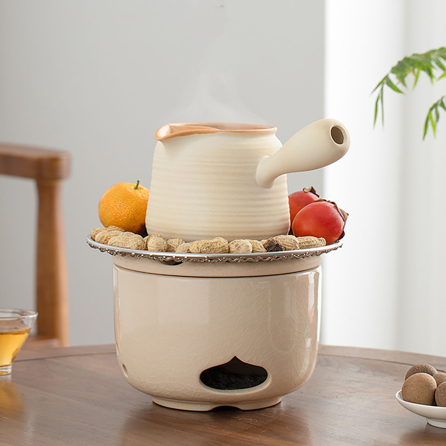 Ce réchaud à thé en céramique, fabriqué à la main à Jingdezhen, adopte un design vintage, combinant une esthétique traditionnelle et une grande durabilité. Sa conception ergonomique permet de l’utiliser confortablement pour préparer du thé tout en grillant de petites collations, offrant ainsi un moment de tranquillité et de plaisir. La théière peut être chauffée sur diverses sources de chaleur directe, mais il est conseillé d’éviter le chauffage à sec pour prolonger sa durée de vie. Idéal à la fois pour un usage personnel ou comme cadeau élégant.