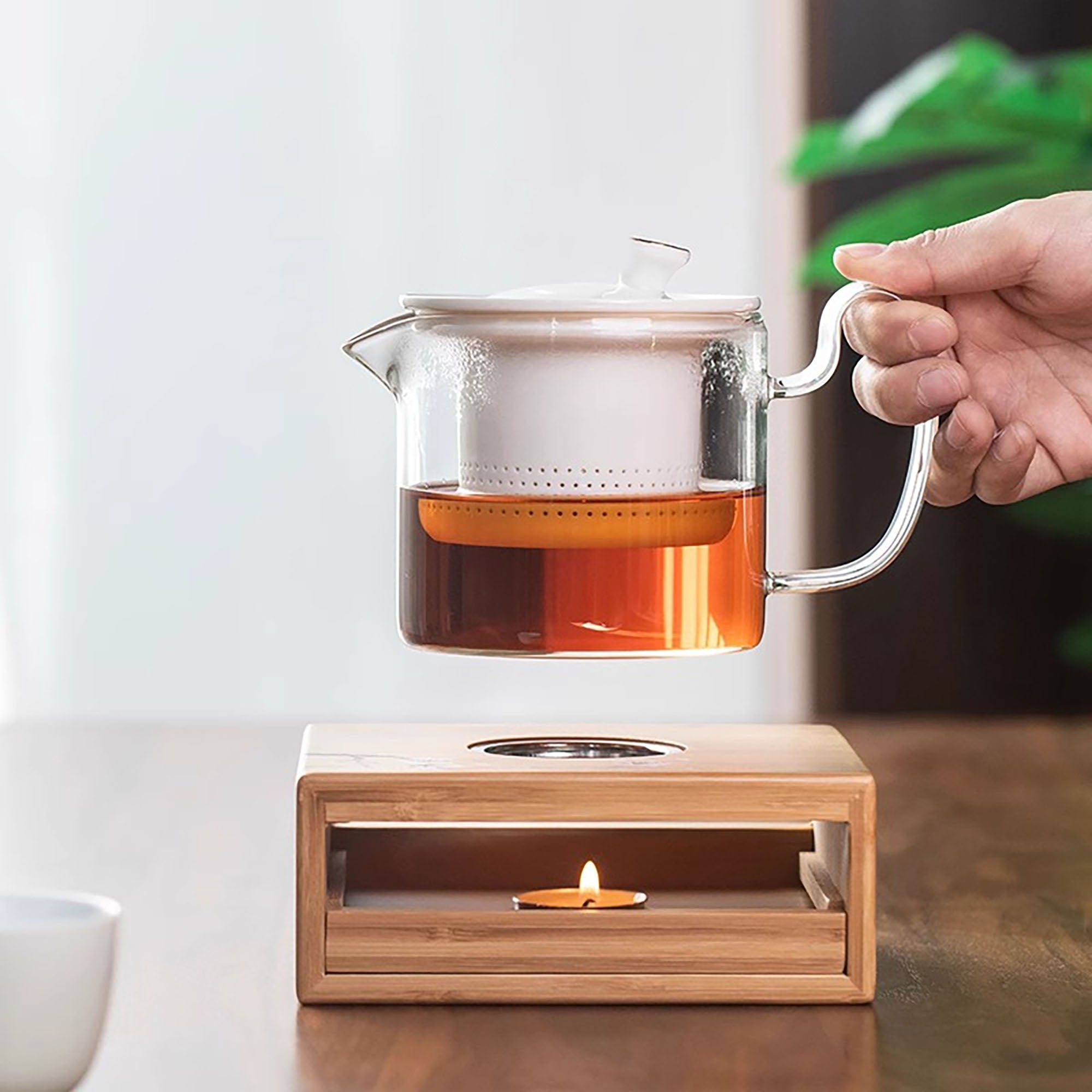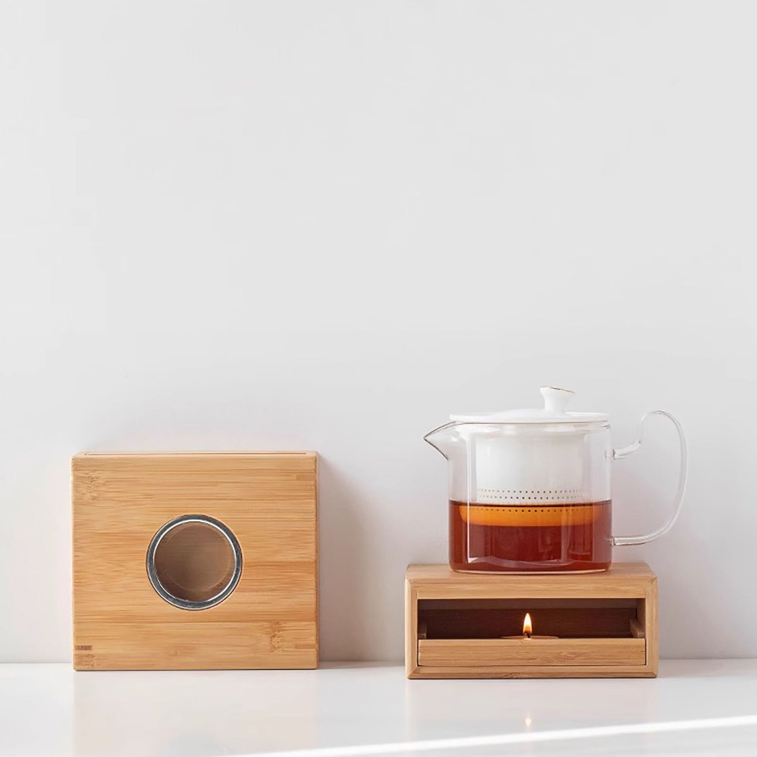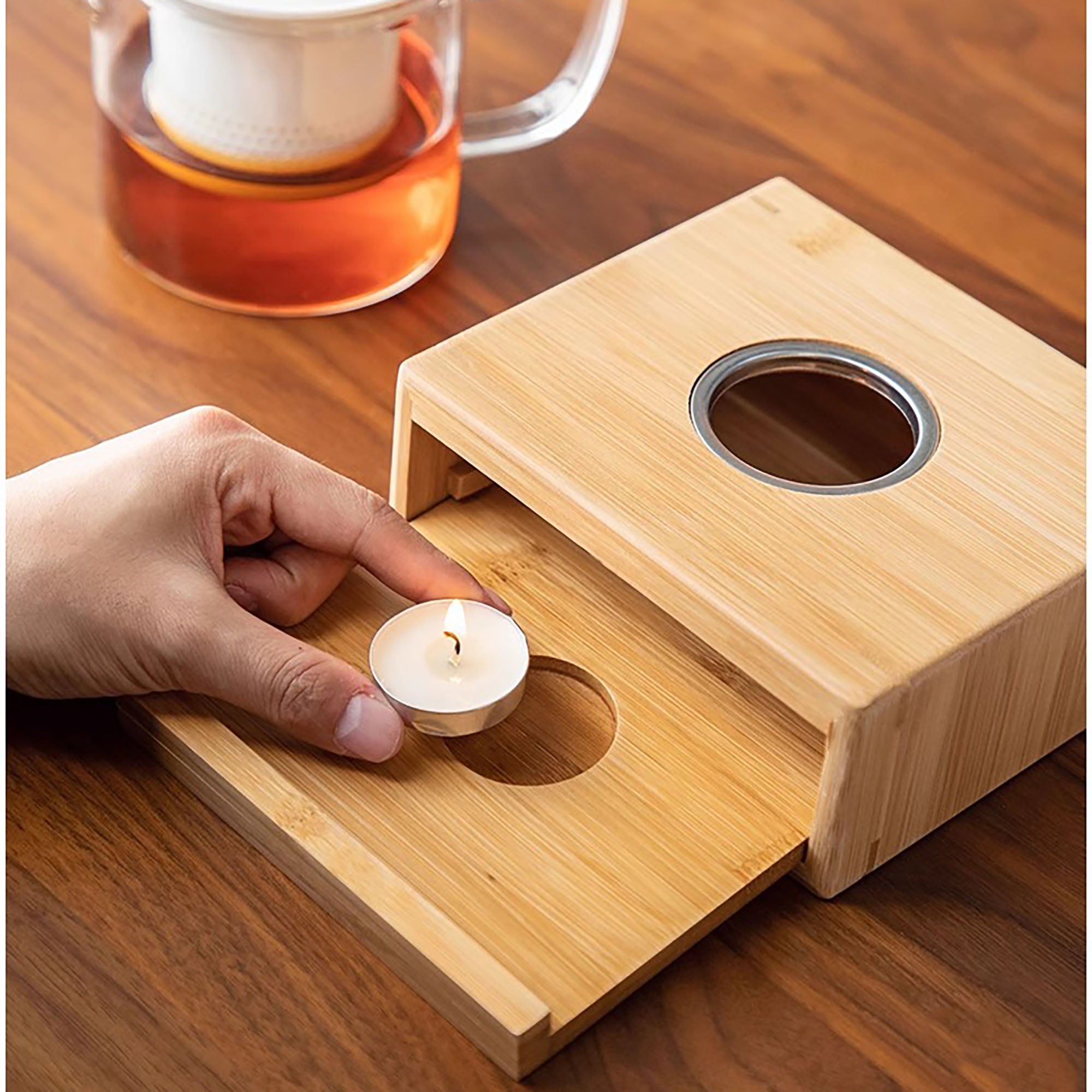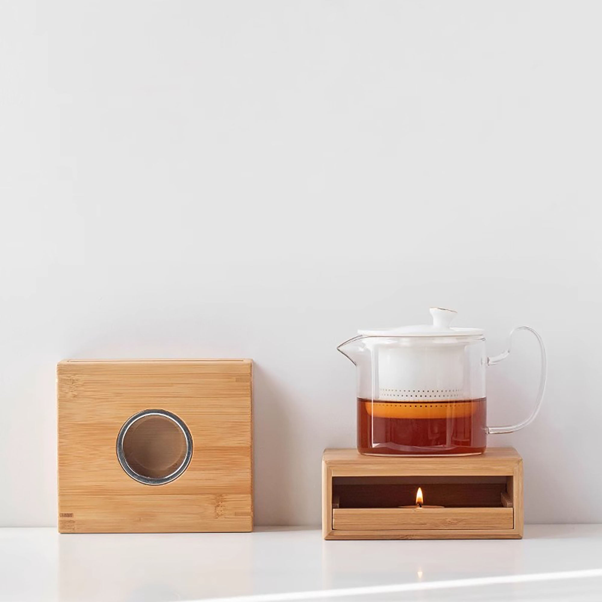 Ce réchaud à bougie pour théière en bambou utilise la technique traditionnelle des joints tenons-mortaises pour une structure solide et durable. Fabriqué en bambou massif avec un grain naturel distinct, il évoque une atmosphère rustique et champêtre. Le motif peint à la main de fleurs de prunier ajoute une touche poétique. Conçu pour s’adapter à la plupart des théières, il est doté d’un porte-bougie coulissant, offrant une commodité parfaite pour votre moment de thé quotidien.