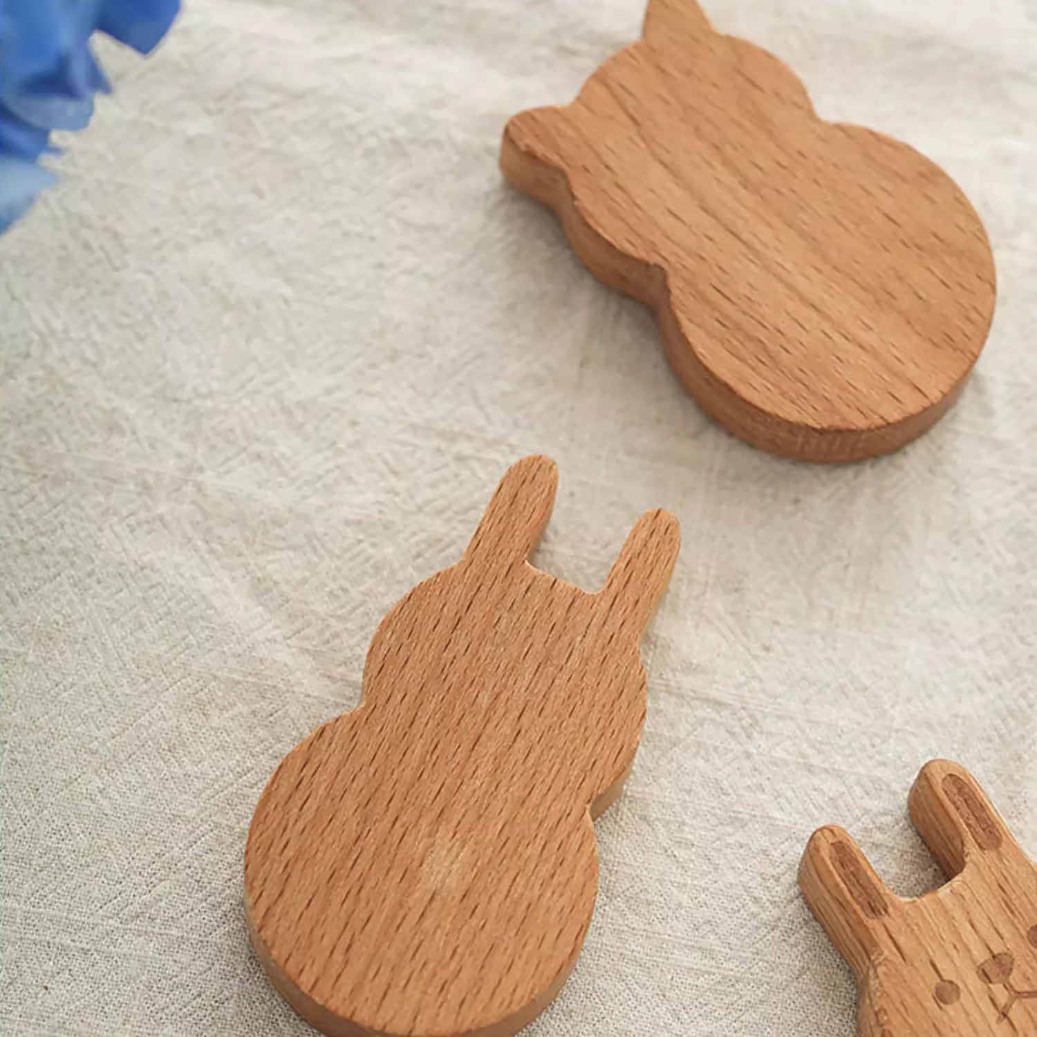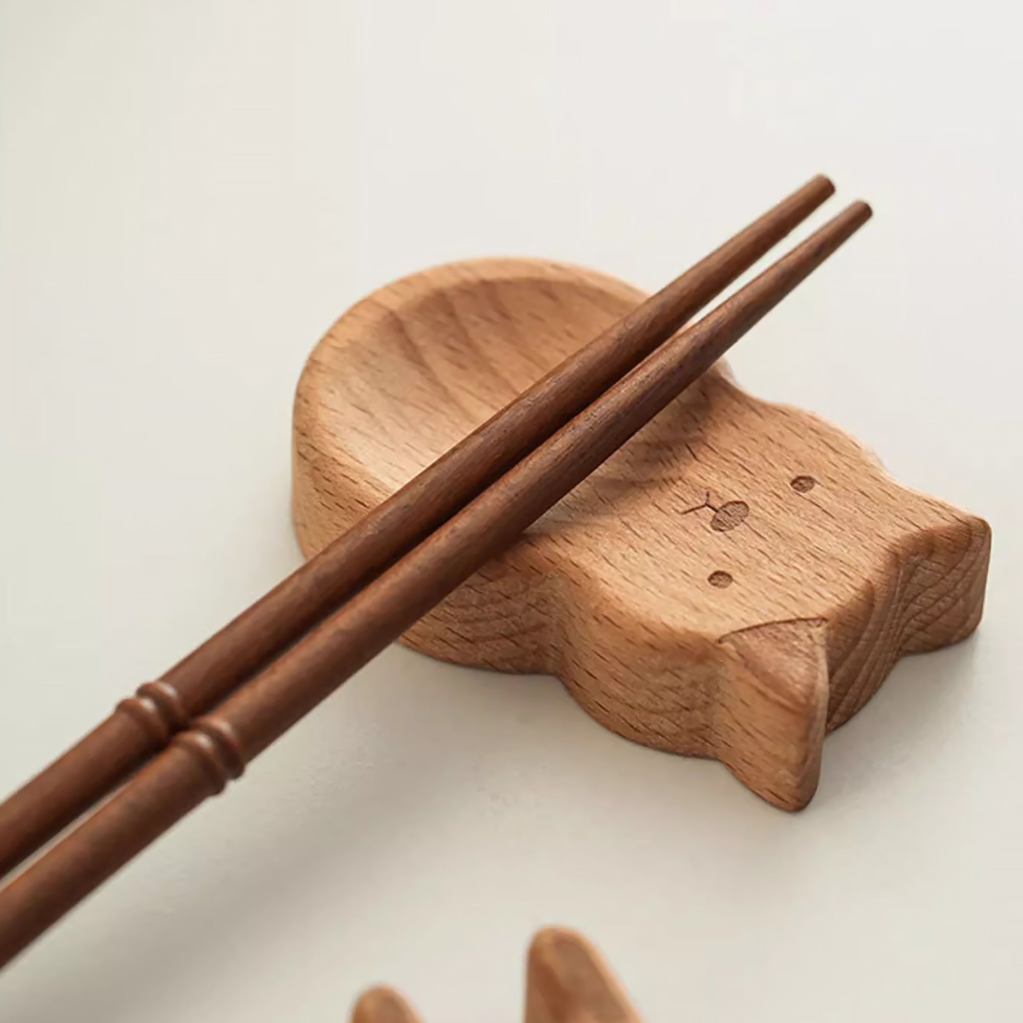 Ajoutez une touche ludique à votre table avec ces repose-baguettes en bois en forme de chat et de lapin. Fabriqués en bois de hêtre robuste et élégant, ils offrent une cavité centrale pratique pour poser cuillères et fourchettes. Parfait pour une utilisation quotidienne ou comme petit cadeau original.