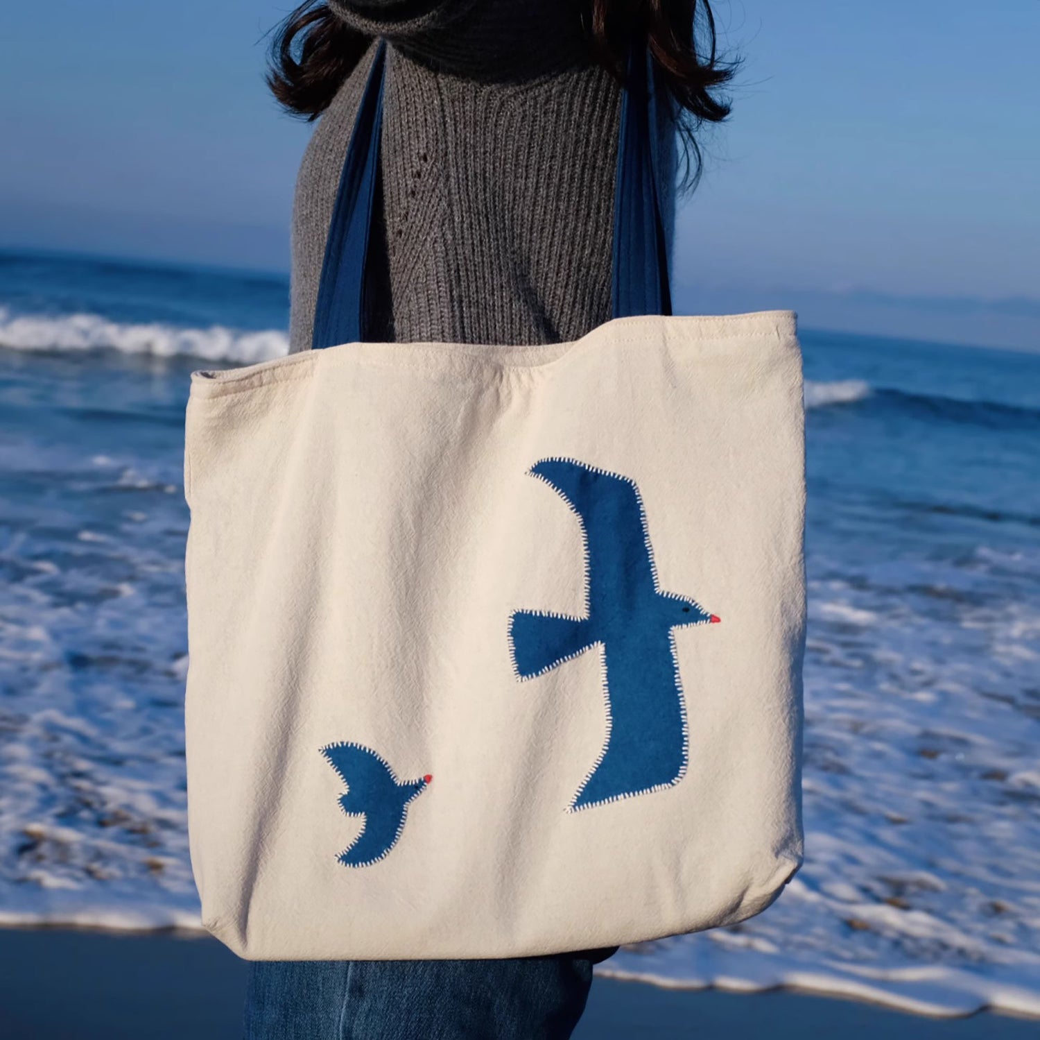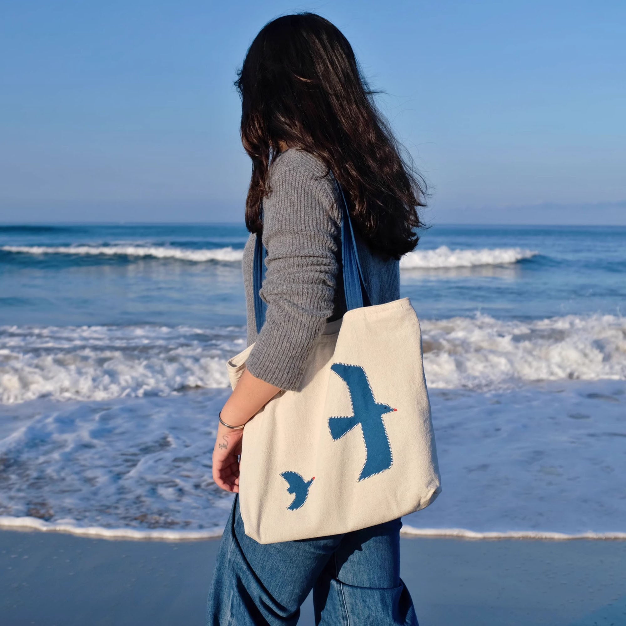 Ce sac bandoulière en lin et coton, réalisé en patchwork teint à l'indigo, est entièrement cousu à la main et orné d’un motif de vol d’oiseaux brodé à la main. Chaque point reflète l’aspiration du designer pour la nature et une vie paisible. Le sac se ferme avec une fermeture éclair en métal YKK et possède une doublure en toile de coton bleu marine avec une poche intérieure ouverte, parfaite pour organiser vos petits objets lors de vos sorties quotidiennes. Alliant esthétique et fonctionnalité, ce sac est idéal pour une utilisation quotidienne.