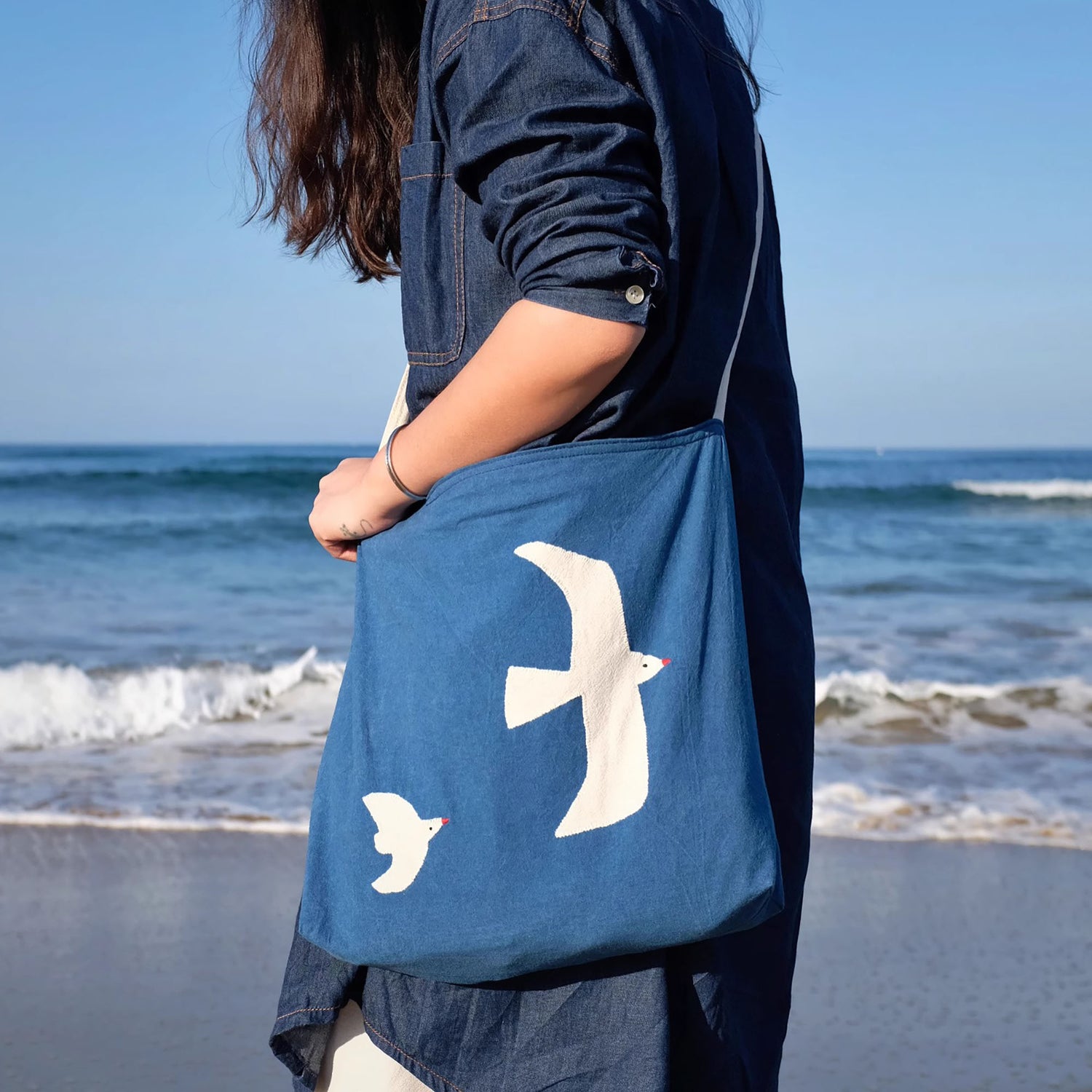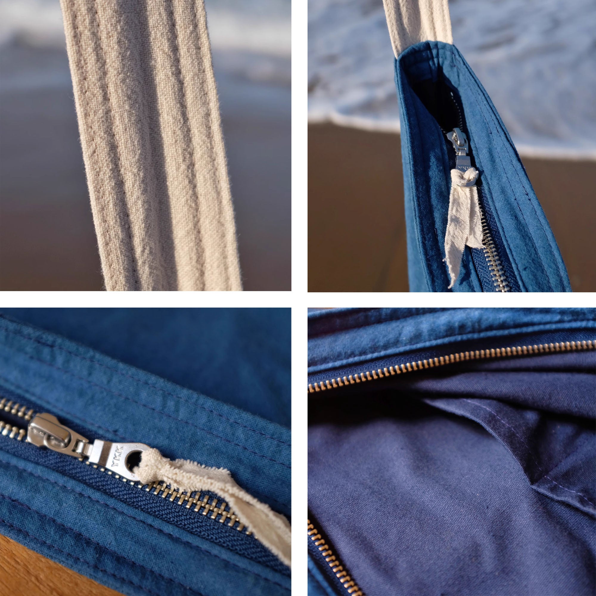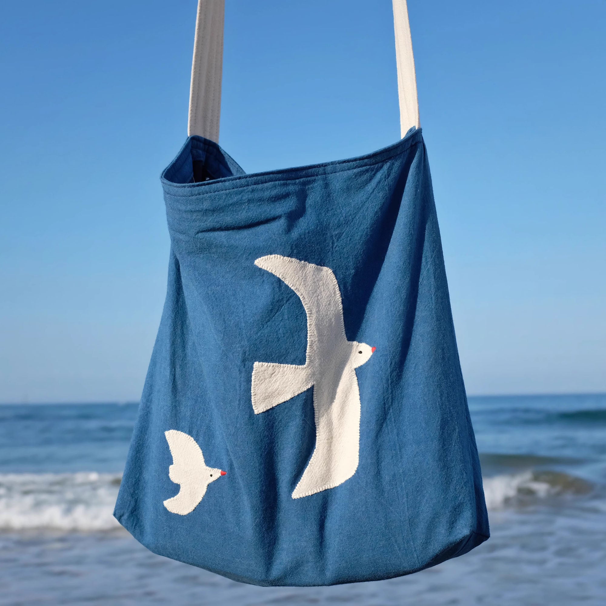 Ce sac épaule en lin et coton cousu main, agrémenté d’un patchwork teinté à l’indigo et d'une broderie délicate représentant des mouettes, exprime l’amour du créateur pour la nature et la vie paisible. La fermeture à glissière en métal YKK garantit une robustesse durable, tandis que la doublure en toile de coton bleu marine ajoute une touche de douceur. Avec une poche intérieure ouverte, ce sac est parfait pour ranger vos petits objets du quotidien. Idéal pour les sorties quotidiennes, il allie fonctionnalité et élégance artisanale.