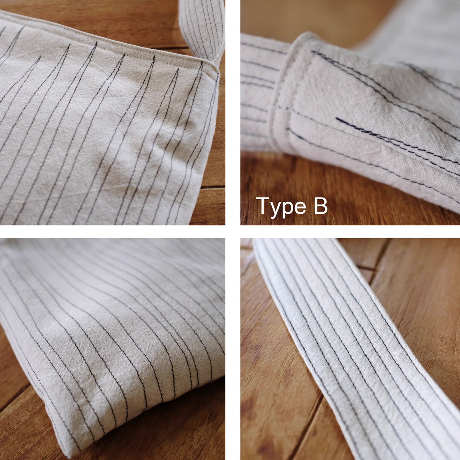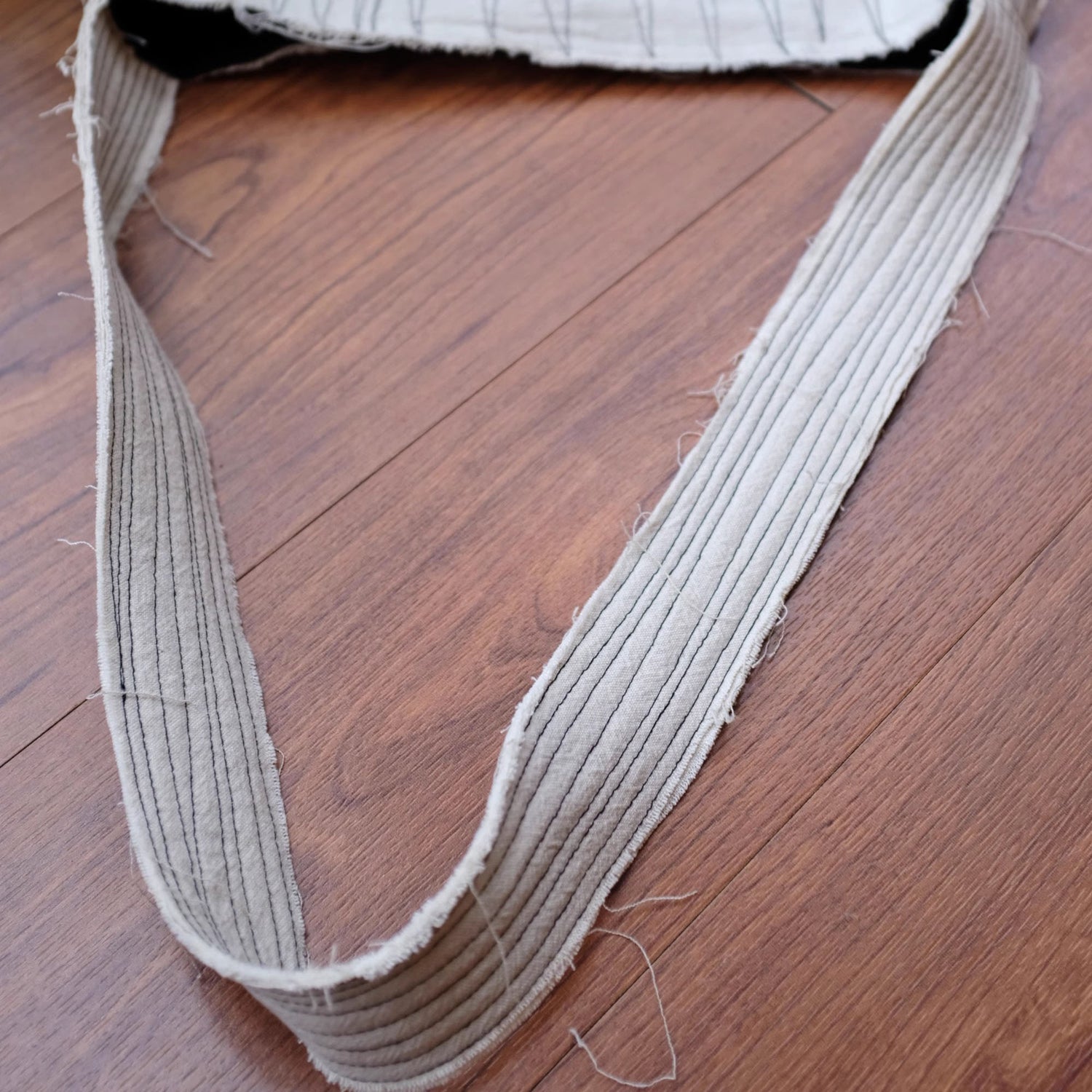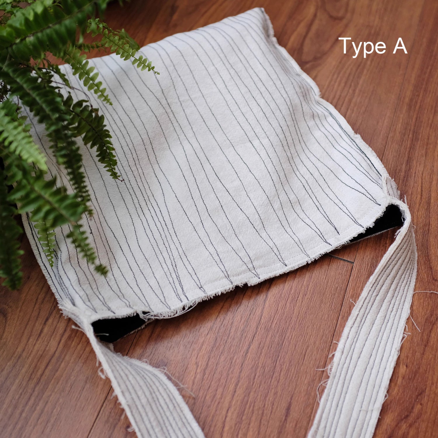 Ce sac fourre-tout, cousu à la main, est fabriqué à partir de lin et coton de haute qualité dans sa couleur naturelle, avec des coutures noires irrégulières qui ajoutent une touche rétro et artistique. La doublure intérieure est en toile de coton avec une fermeture magnétique et comprend une poche zippée et une poche ouverte pour organiser vos affaires quotidiennes. Les coutures décontractées apportent une originalité subtile à ce sac, soulignant son caractère unique. Deux versions sont disponibles : l'une avec des bords effilochés sur le corps et les poignées, qui exprime un style libre et audacieux (mais un peu plus difficile à entretenir), et l'autre avec des bords finis pour un look plus épuré. Parfait pour un usage quotidien ou des sorties décontractées, ce sac est un mélange de fonctionnalité et de style artistique.