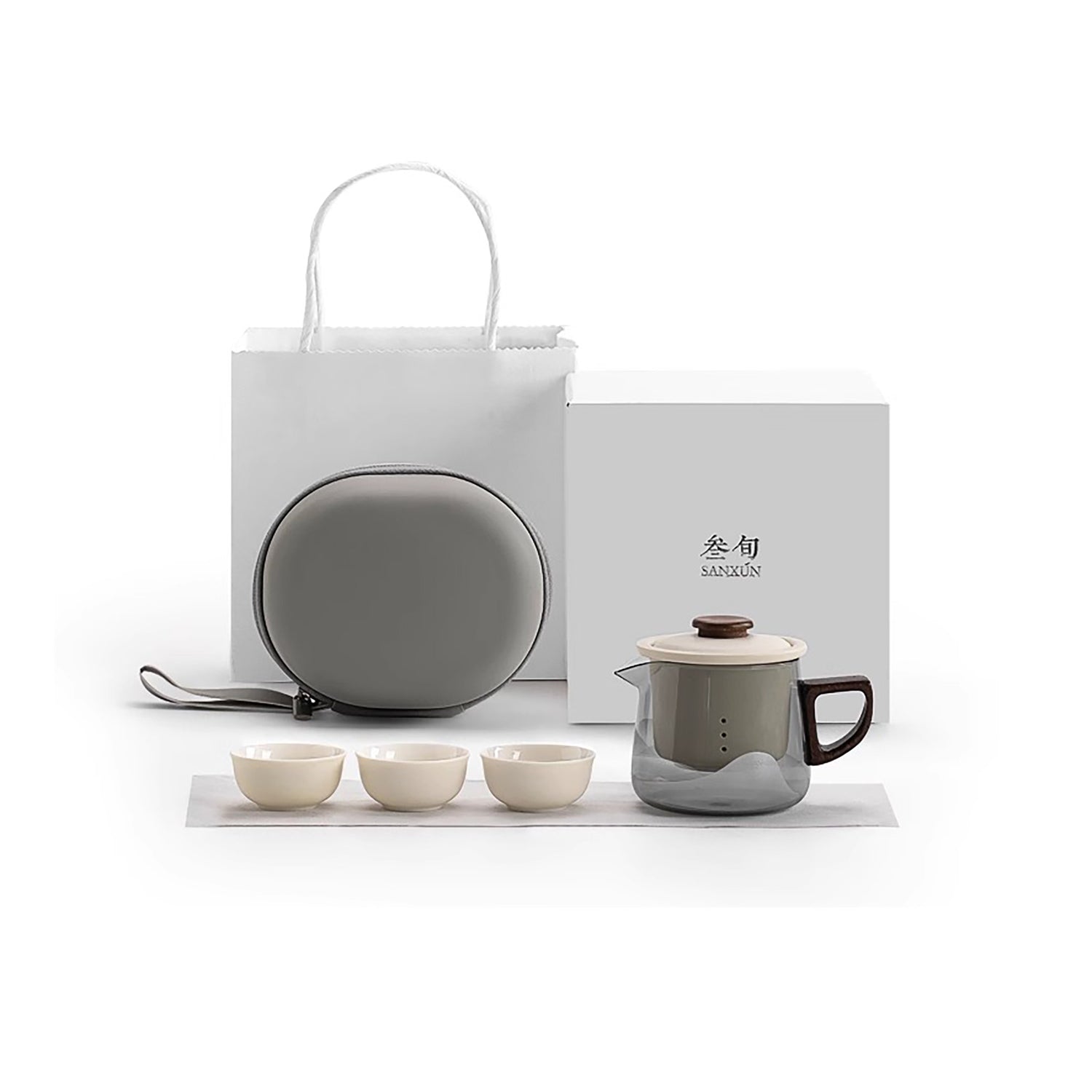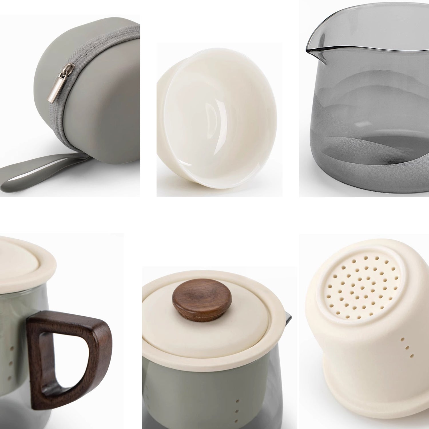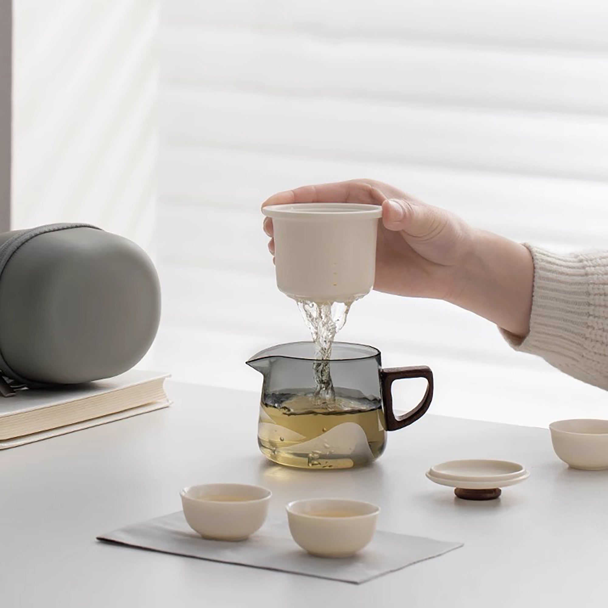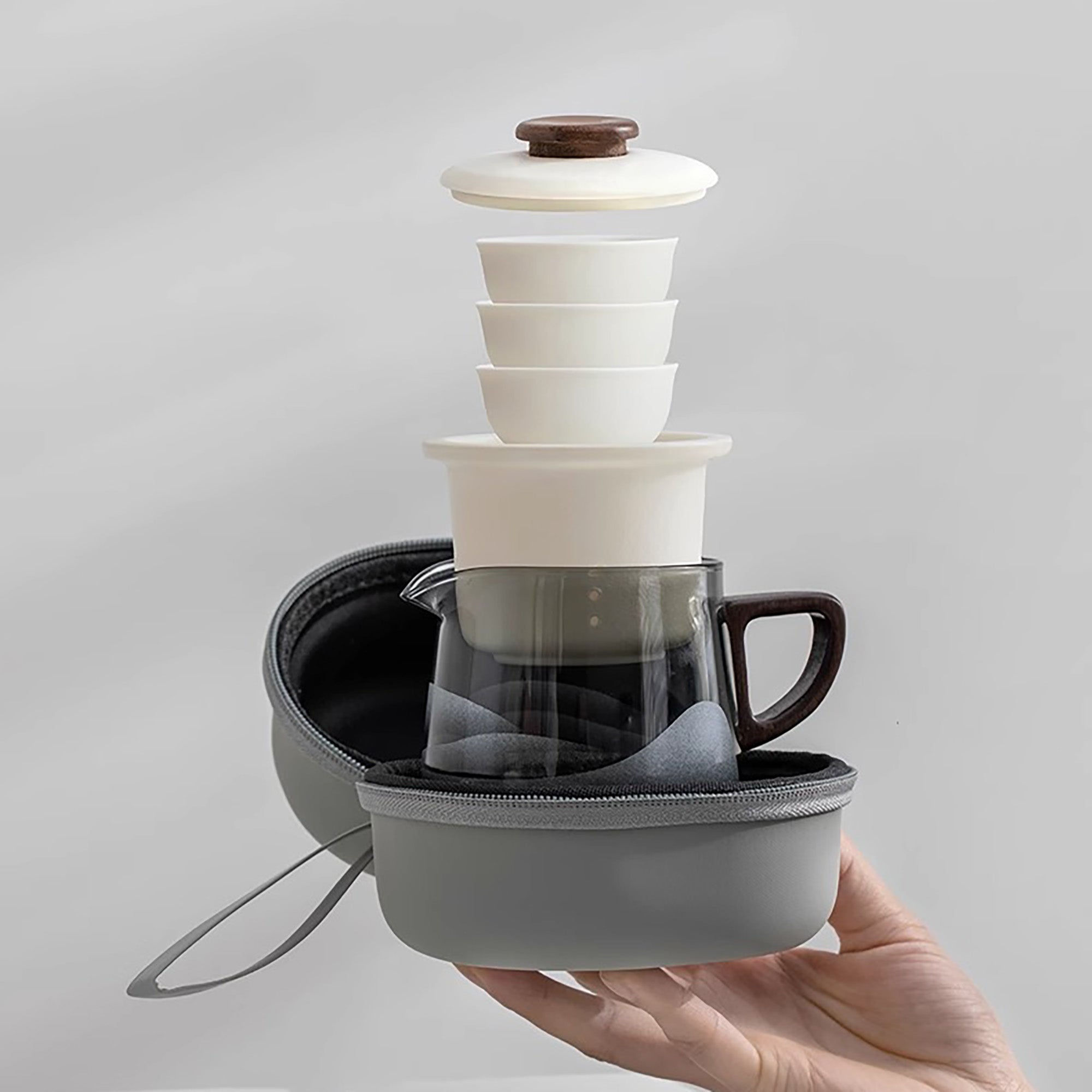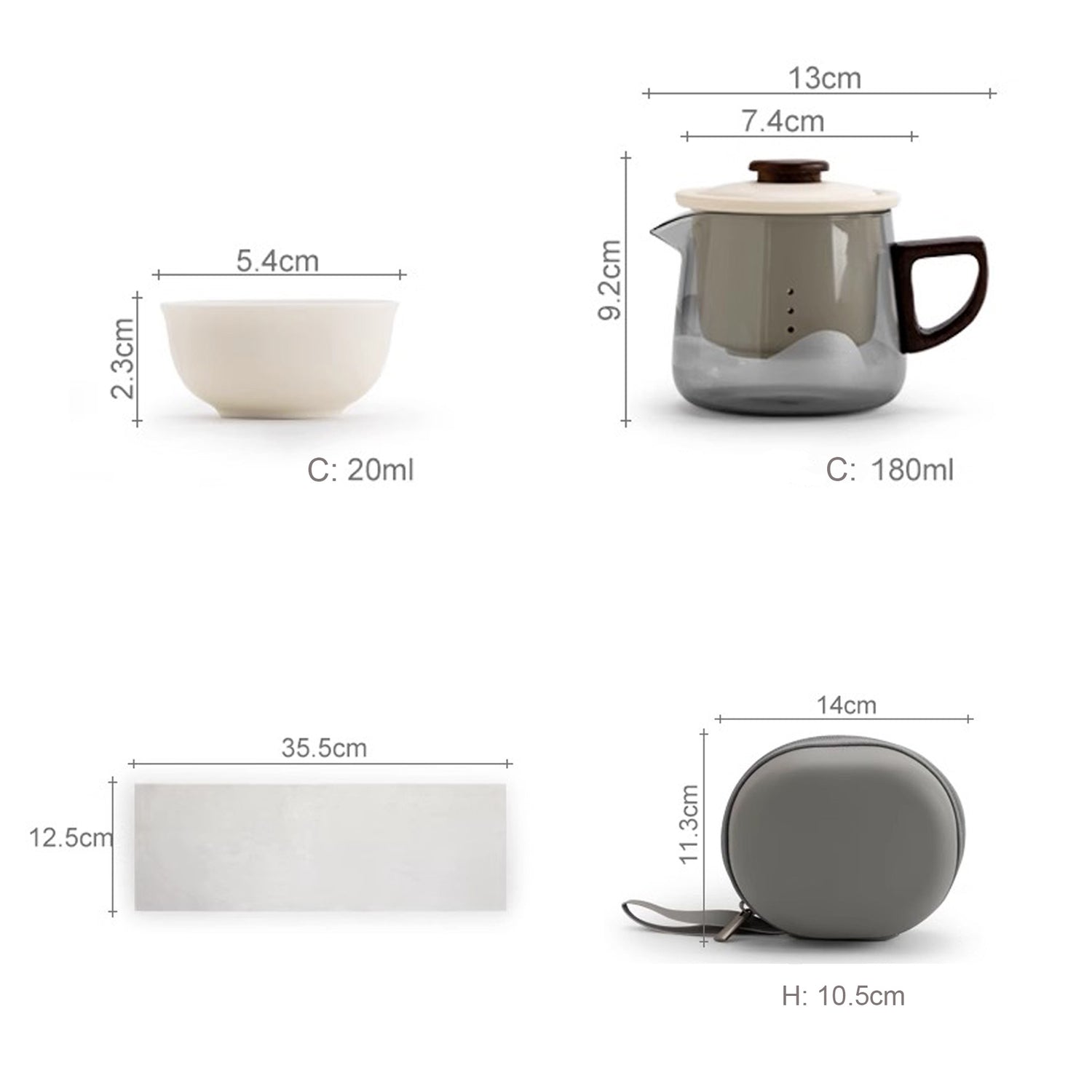 Ce service de thé portable pour l'extérieur, composé d'une théière et de trois tasses, est conçu pour être pratique et élégant. Fabriqué en verre borosilicaté résistant aux chocs thermiques, il supporte facilement les variations de température. Le manche en bois de noyer est ergonomique et anti-brûlure, apportant un confort agréable. La théière, avec sa transparence cristalline, est équipée d'un filtre en céramique pour une infusion pure. Le set comprend également une serviette à thé et se distingue par son design portable, idéal pour savourer une tasse de thé à tout moment, en voyage ou en extérieur.
