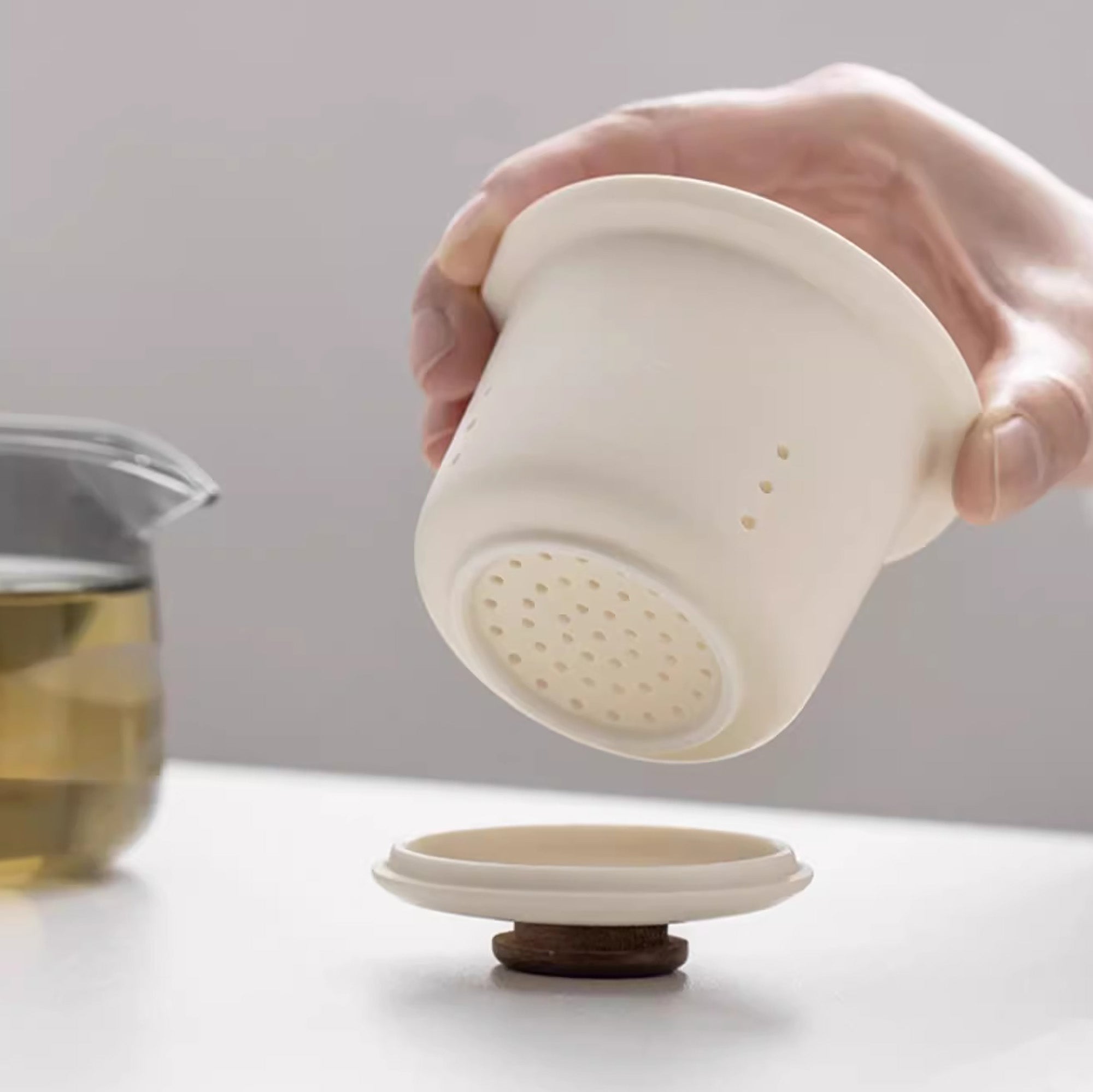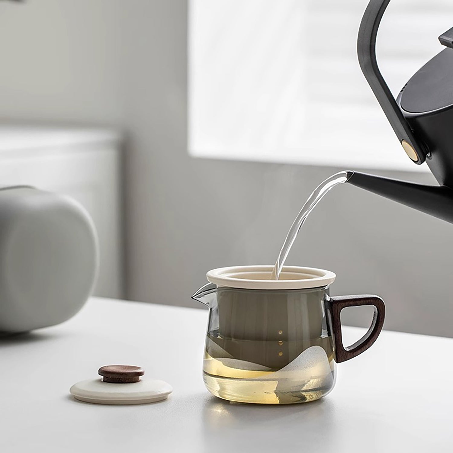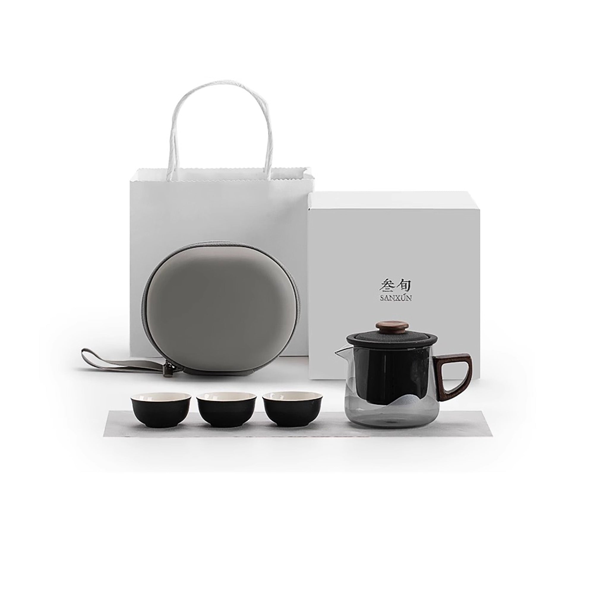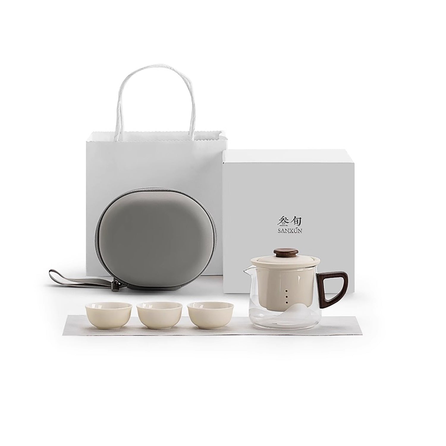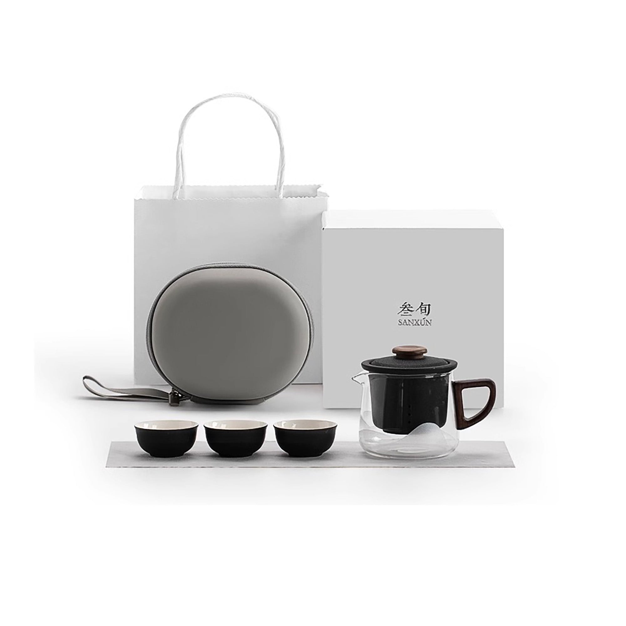 Ce service de thé portable pour l'extérieur, composé d'une théière et de trois tasses, est conçu pour être pratique et élégant. Fabriqué en verre borosilicaté résistant aux chocs thermiques, il supporte facilement les variations de température. Le manche en bois de noyer est ergonomique et anti-brûlure, apportant un confort agréable. La théière, avec sa transparence cristalline, est équipée d'un filtre en céramique pour une infusion pure. Le set comprend également une serviette à thé et se distingue par son design portable, idéal pour savourer une tasse de thé à tout moment, en voyage ou en extérieur.