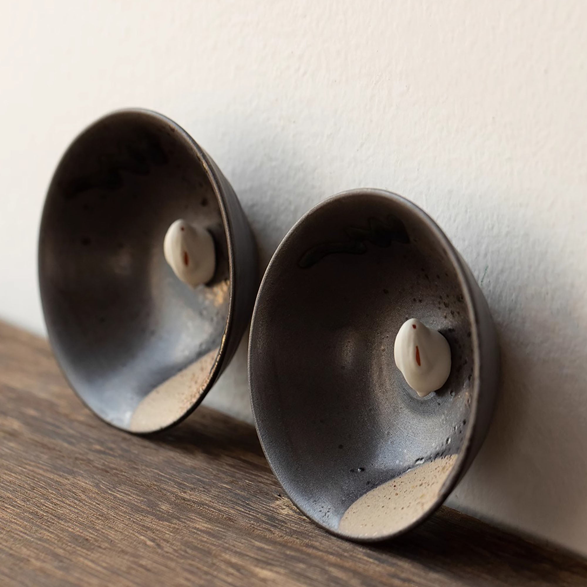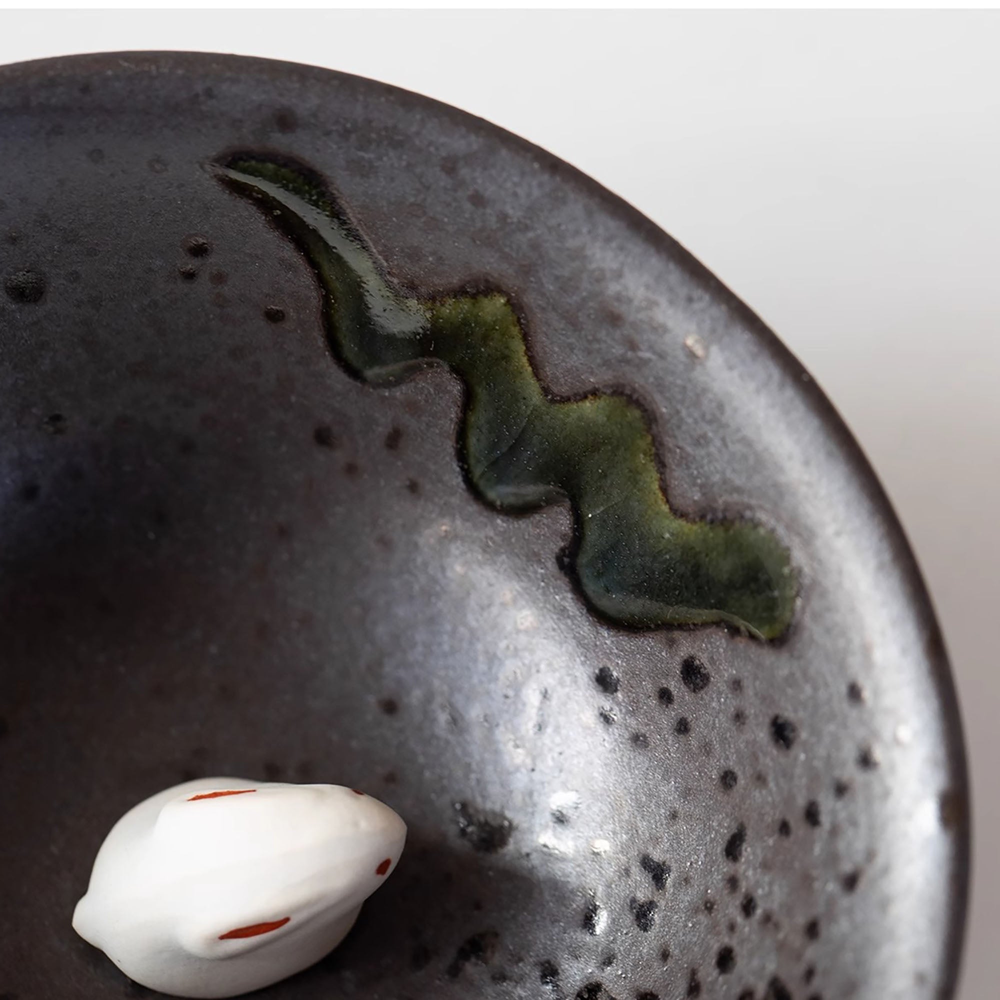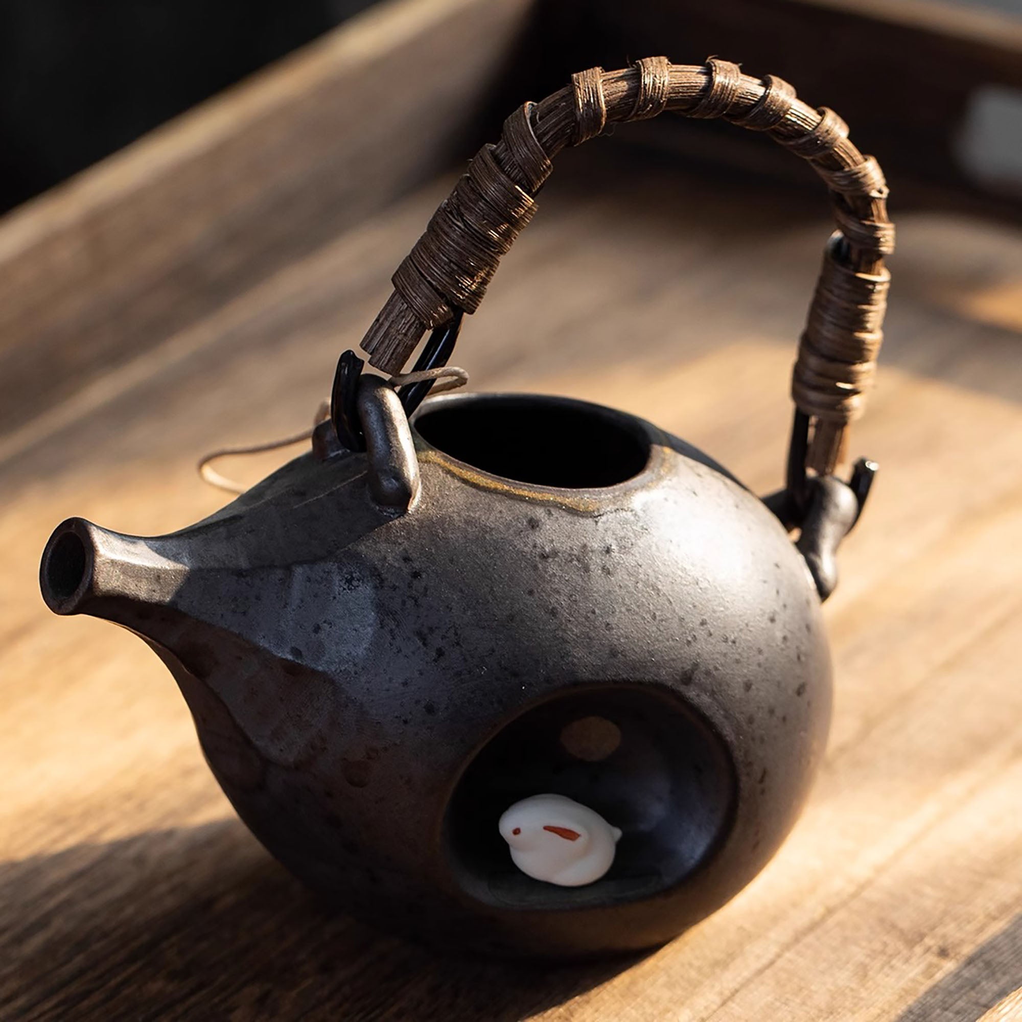Ce service à saké artisanal inclut une carafe et deux tasses, fabriqué à la main par des artisans. Orné de charmants lapins contemplant la lune, contrastant harmonieusement avec la base en céramique noire, il allie sobriété et vivacité. Les textures naturelles et le design épuré évoquent une chaleur empreinte de zen. Idéal pour partager un moment convivial en famille ou entre amis. Cuit à haute température avec une technique sous glaçure, il reflète l'artisanat authentique. Parfait pour un usage personnel ou comme cadeau raffiné.