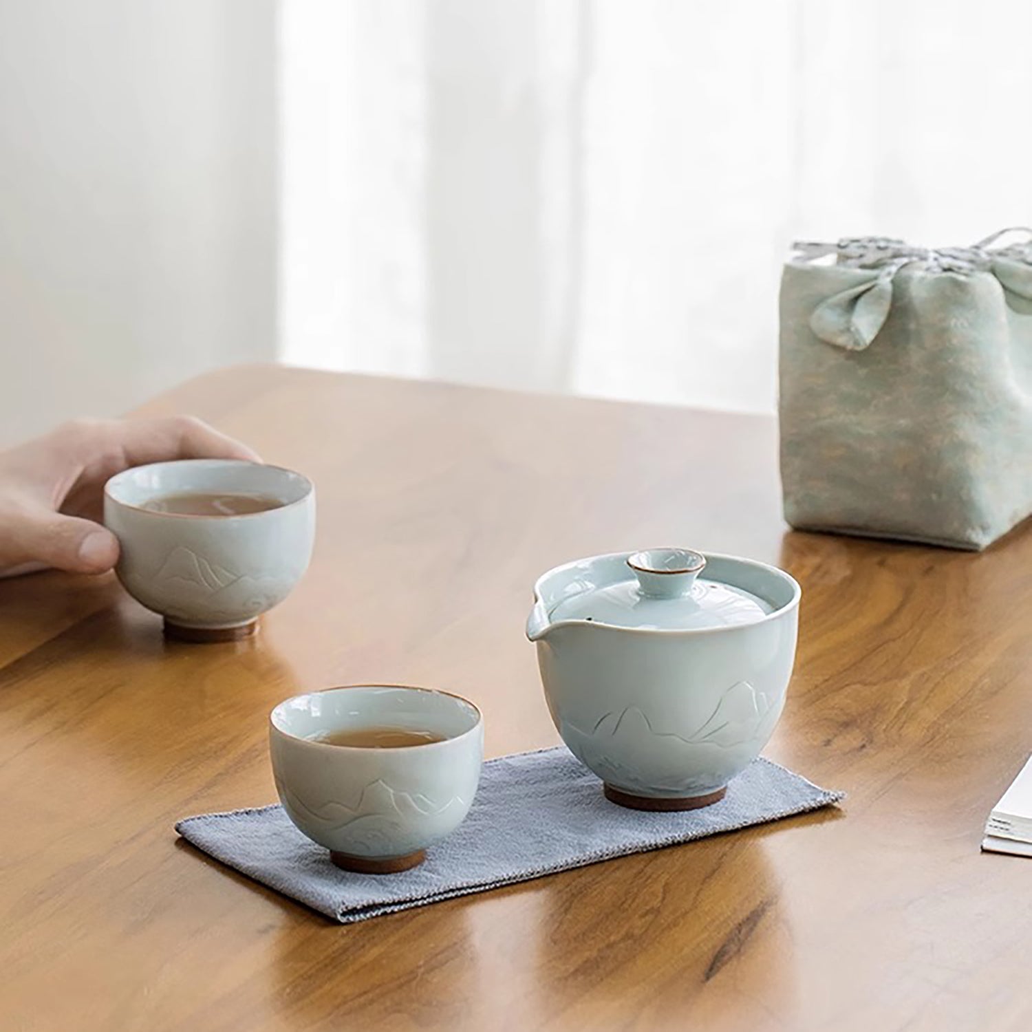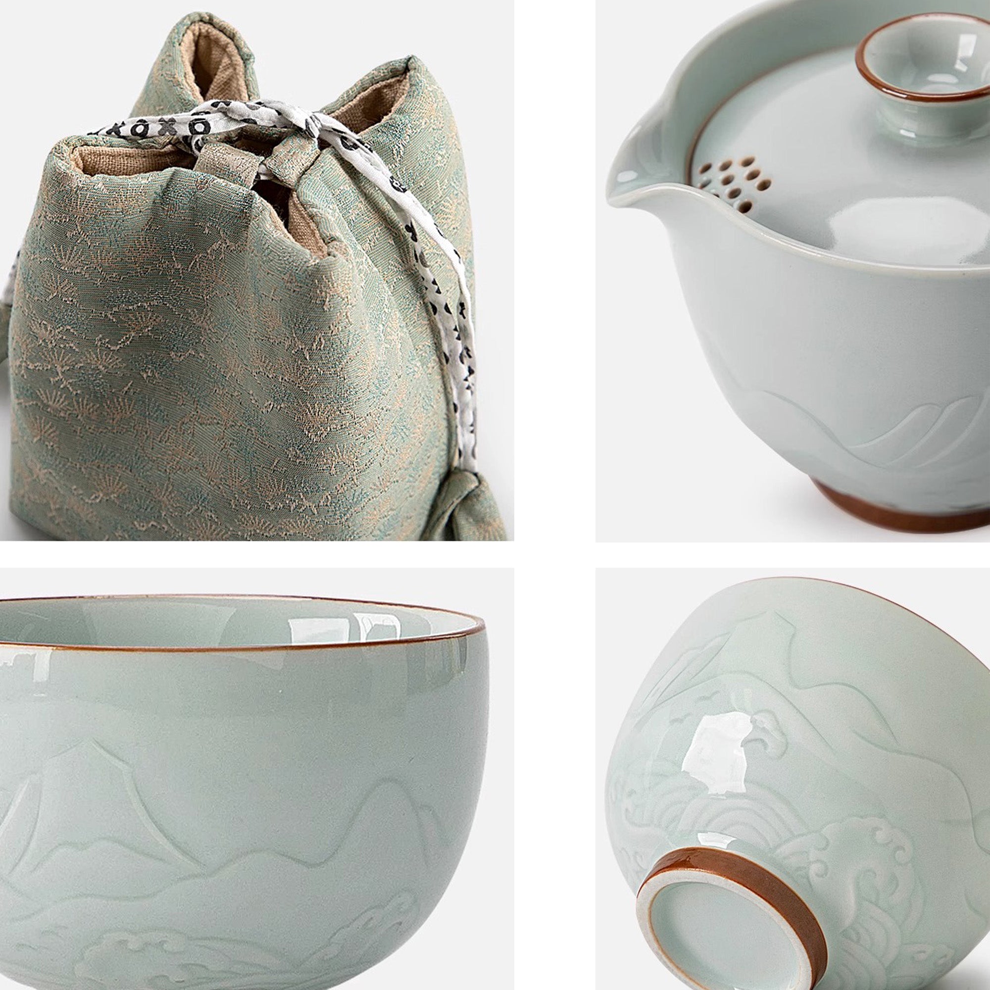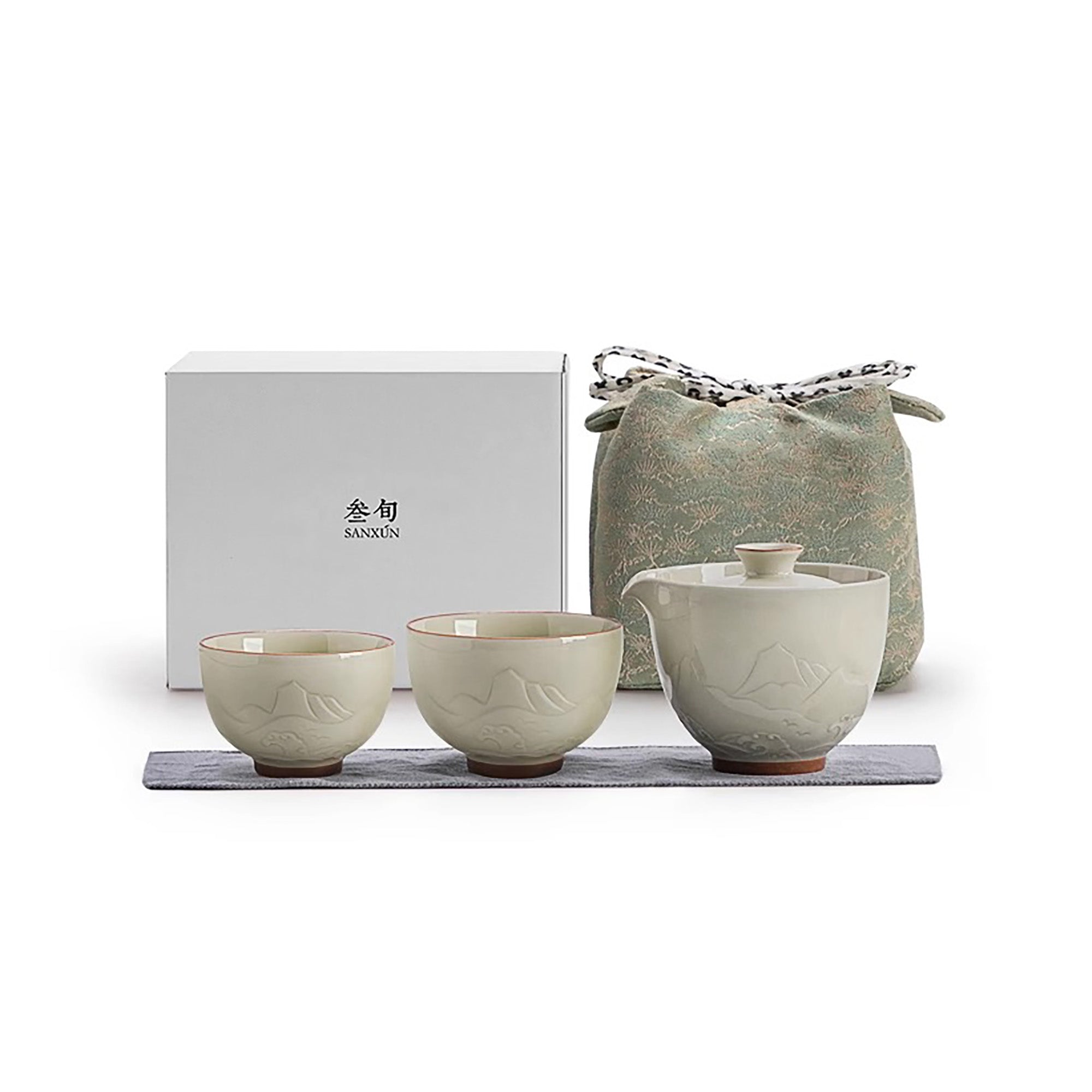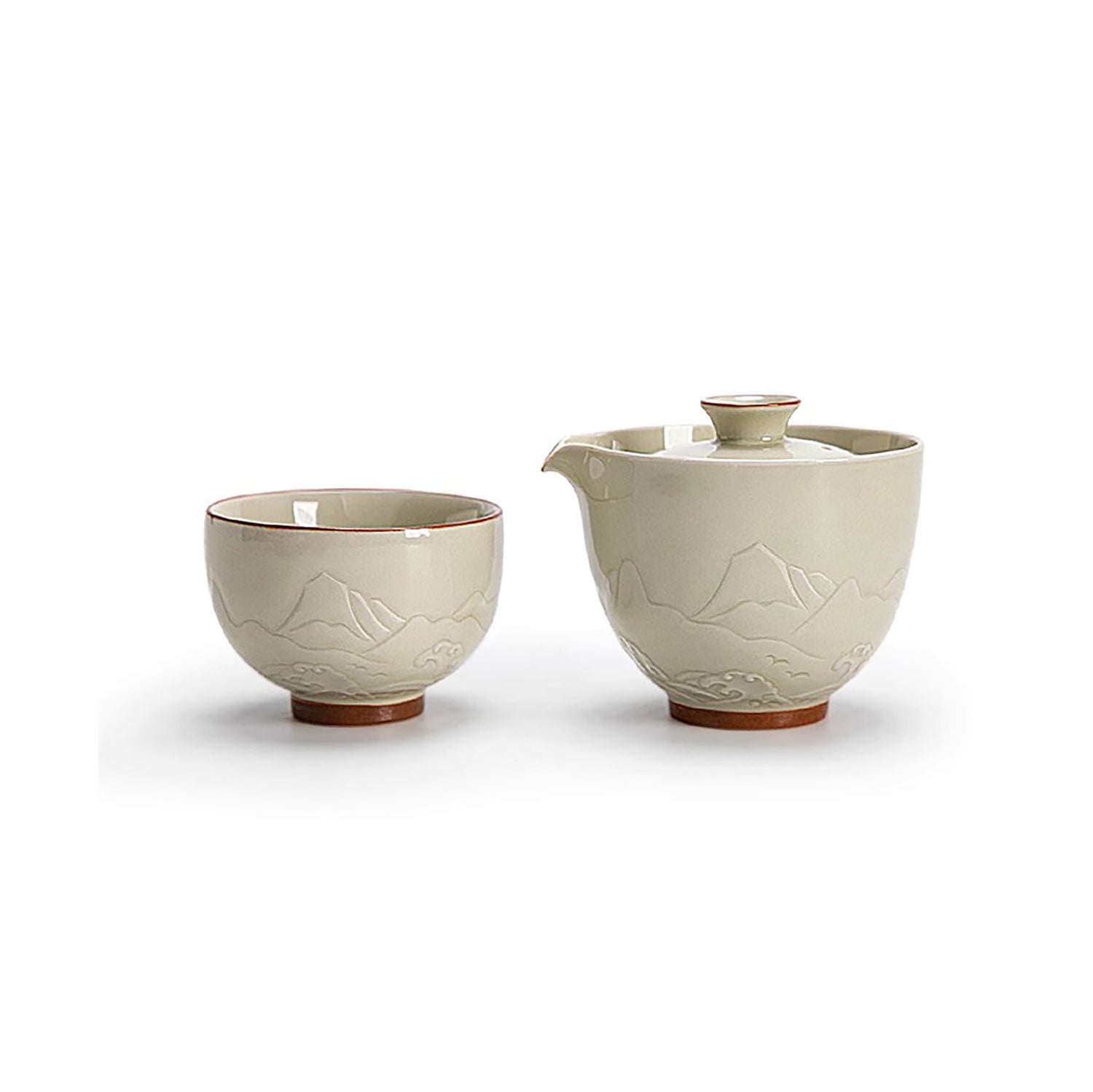 Service à thé portable en porcelaine avec motif en relief Montagnes et Mers