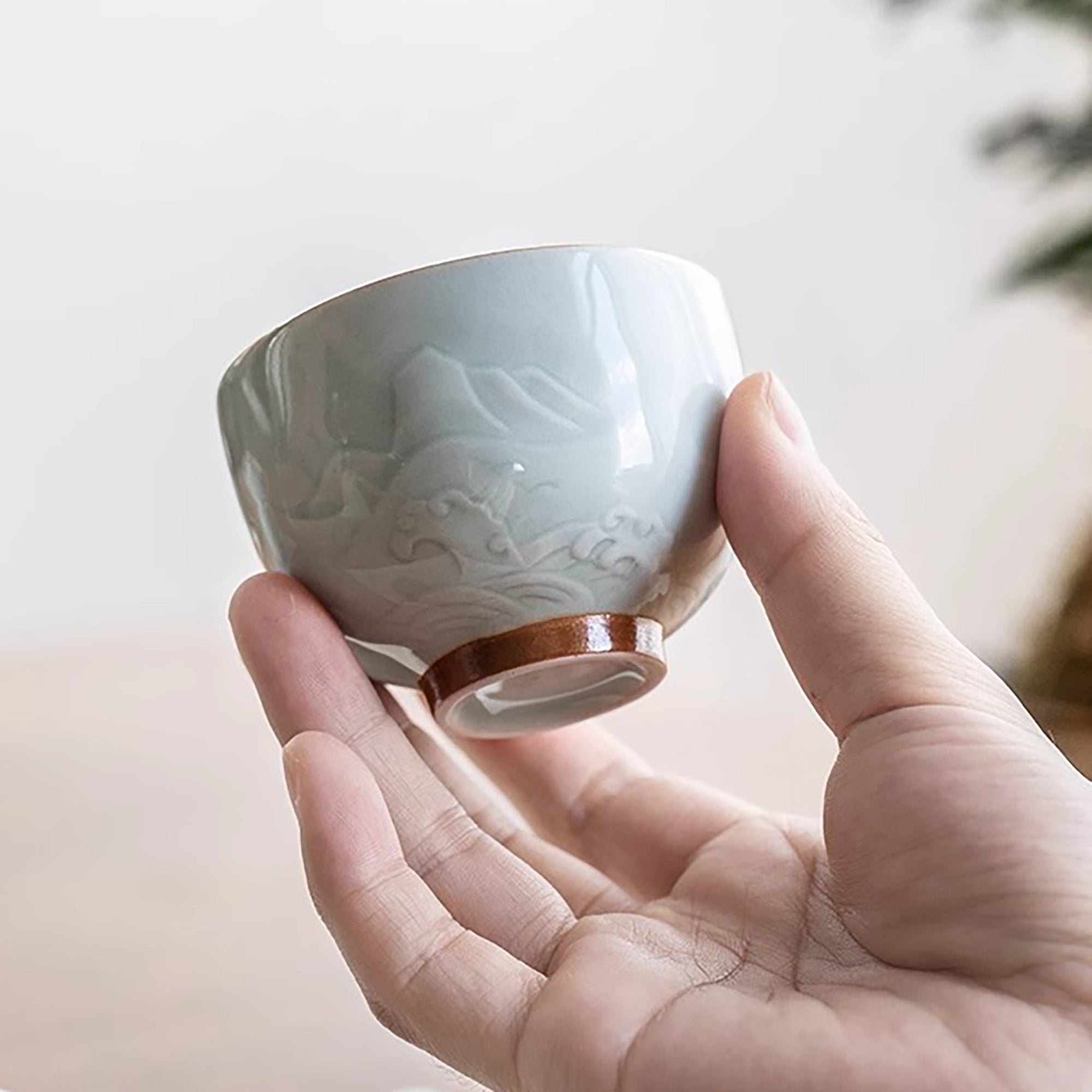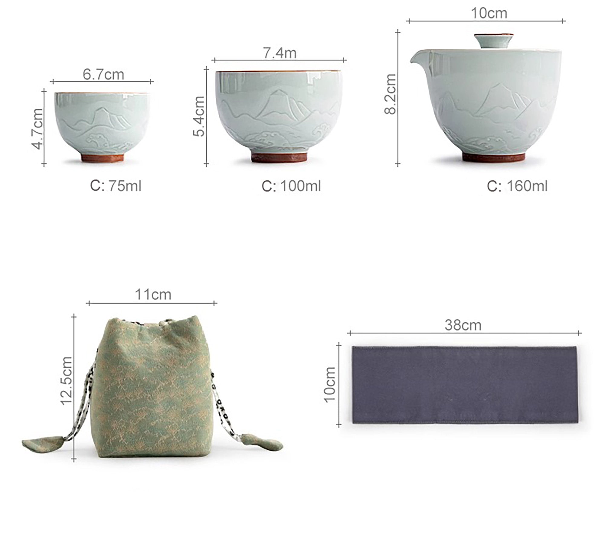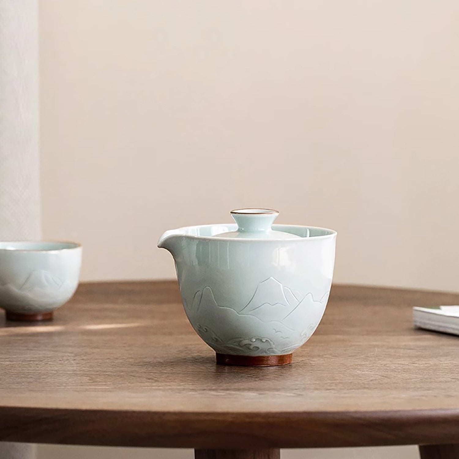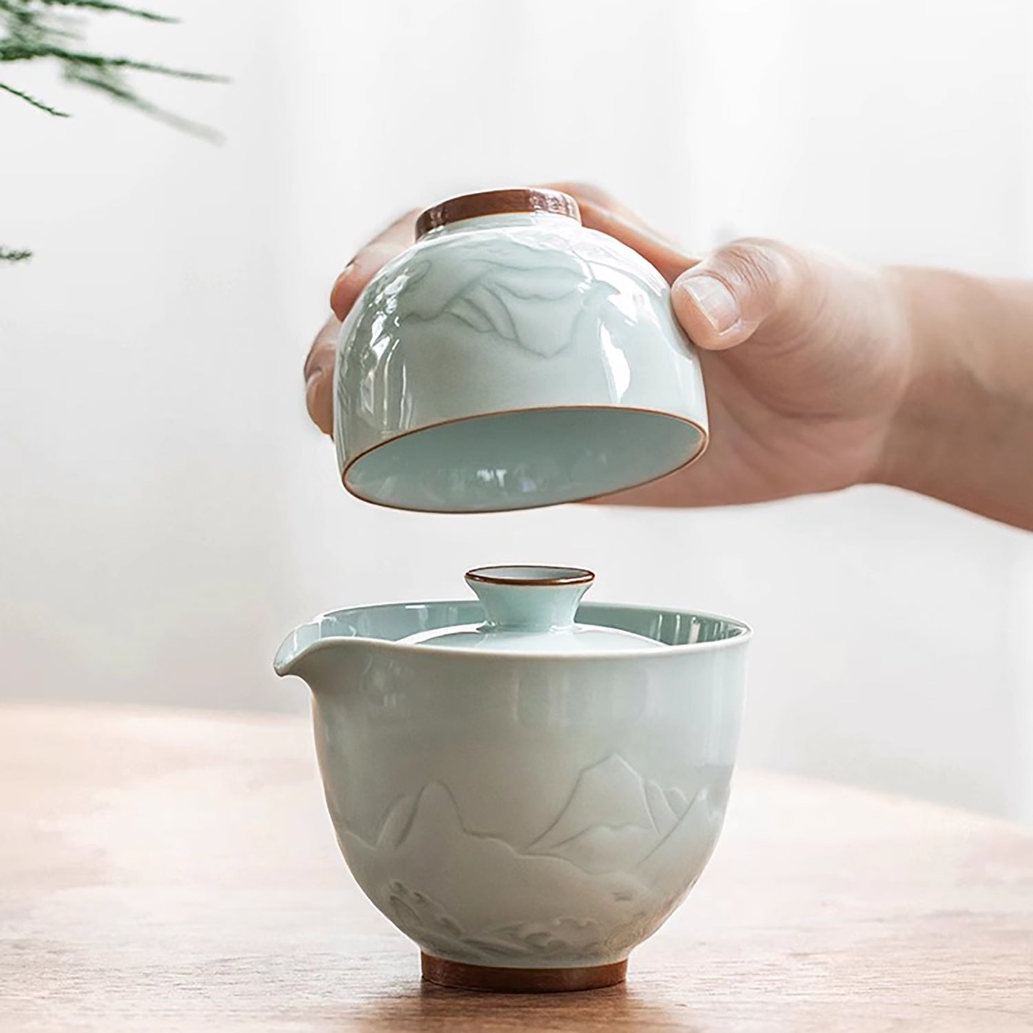Service à thé portable en porcelaine avec motif en relief Montagnes et Mers