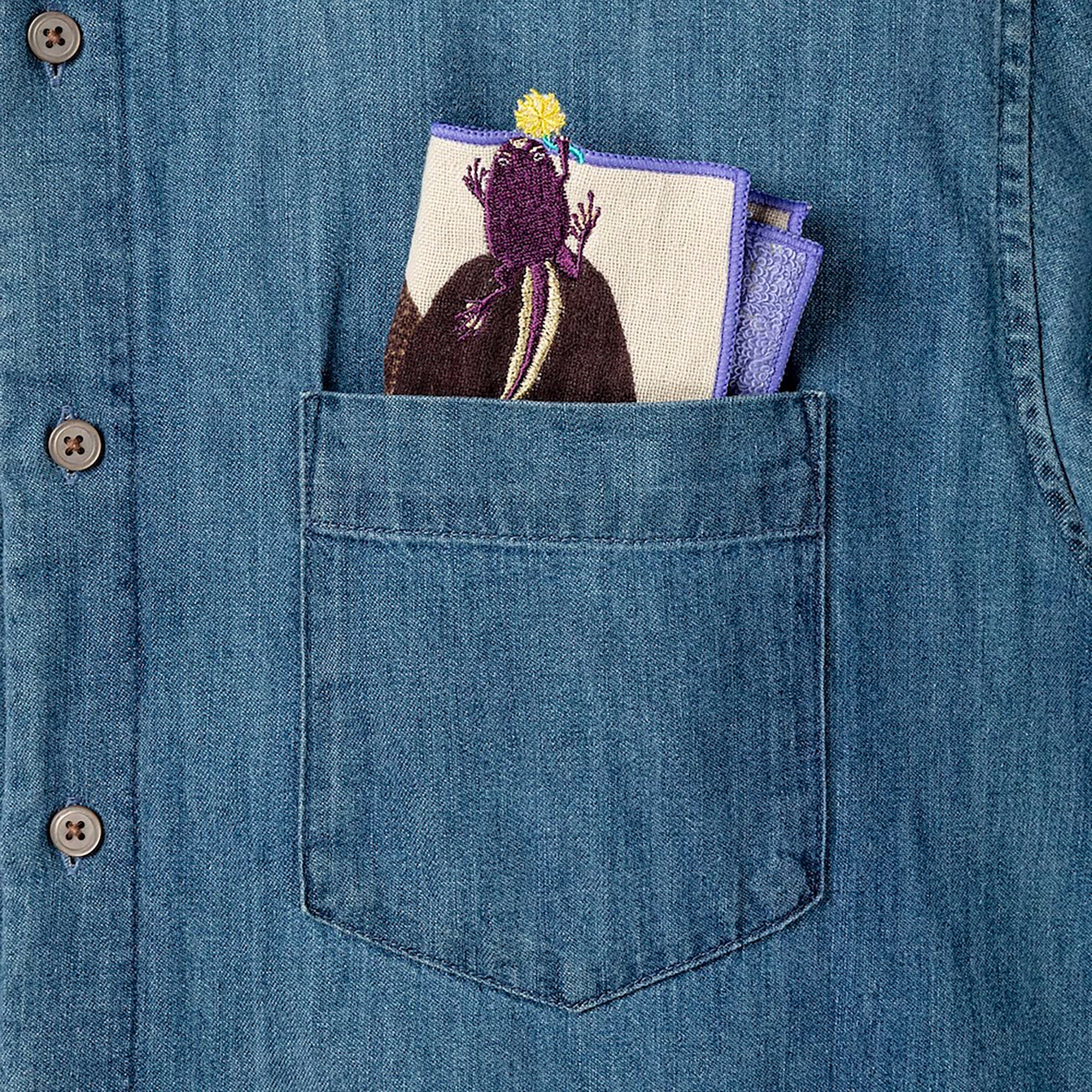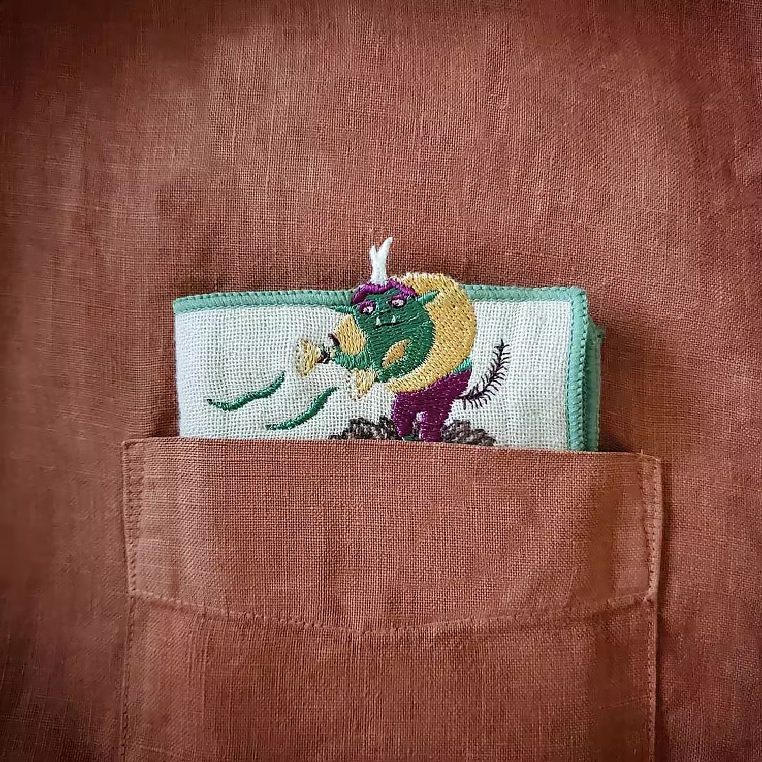 Conçu par l’illustratrice japonaise Morita MiW, ce mouchoir en coton doux mêle poésie visuelle et esprit ludique. Son style délicatement japonais évoque la nature et la tendresse du quotidien. Polyvalent, il s’utilise comme petite serviette essuie-main, accessoire décoratif dans une poche de veste, ou serviette à thé lors de moments paisibles. Un objet simple, beau et utile.