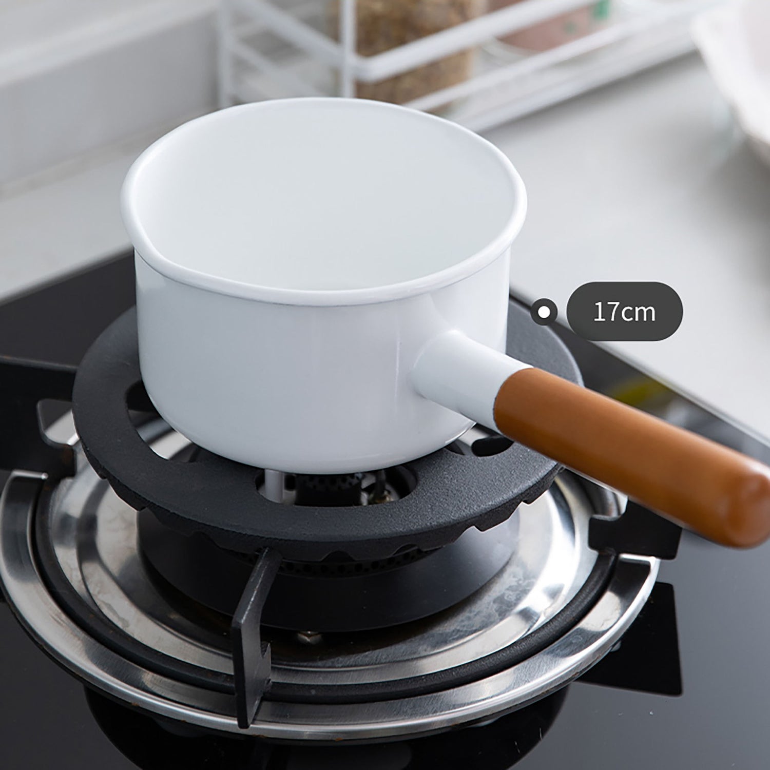 Conçu pour stabiliser les casseroles et bouilloires à fond étroit, ce support en fonte massif signé Shimoyama résout efficacement les problèmes d’instabilité sur les cuisinières à gaz. Fabriqué en fonte pleine, il est robuste, durable et résistant à la déformation. Sa surface large et plane assure une parfaite stabilité, évitant les glissements et basculements. Compatible avec une grande variété d’ustensiles de cuisson.