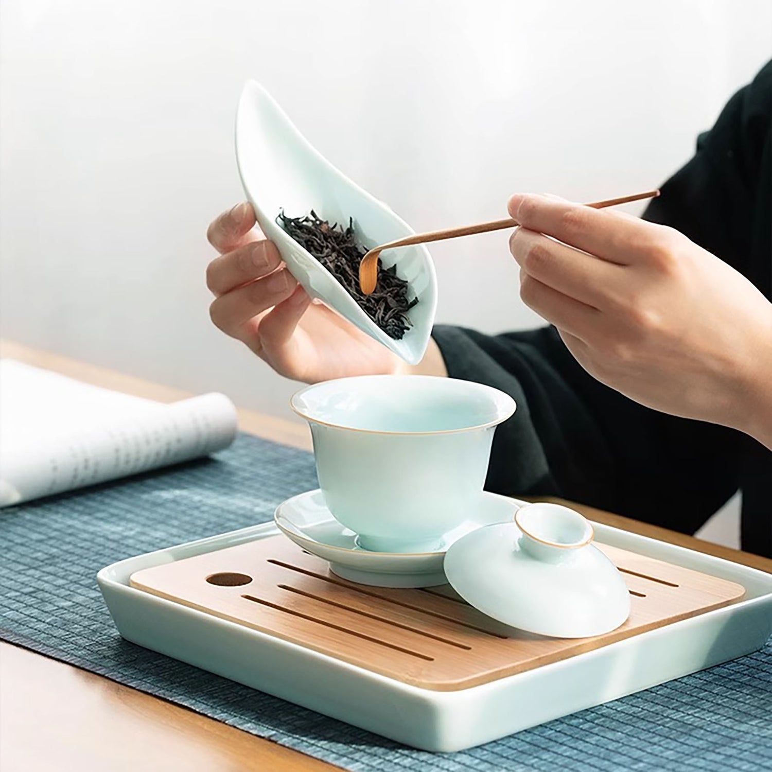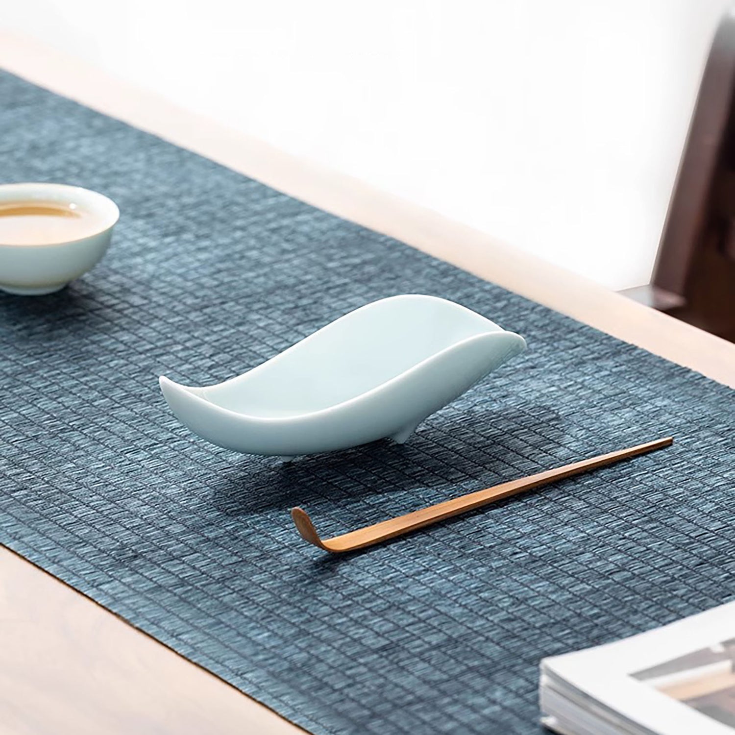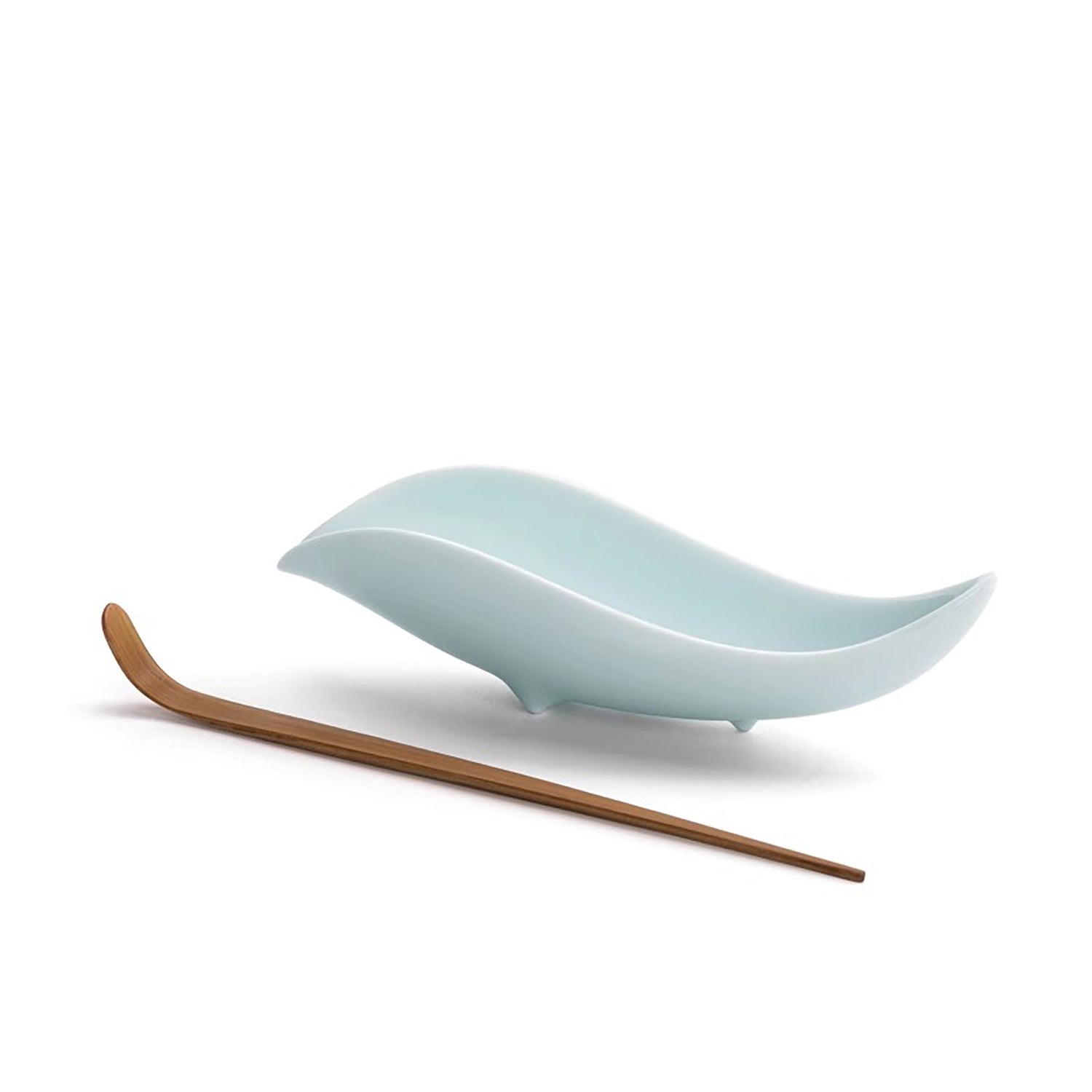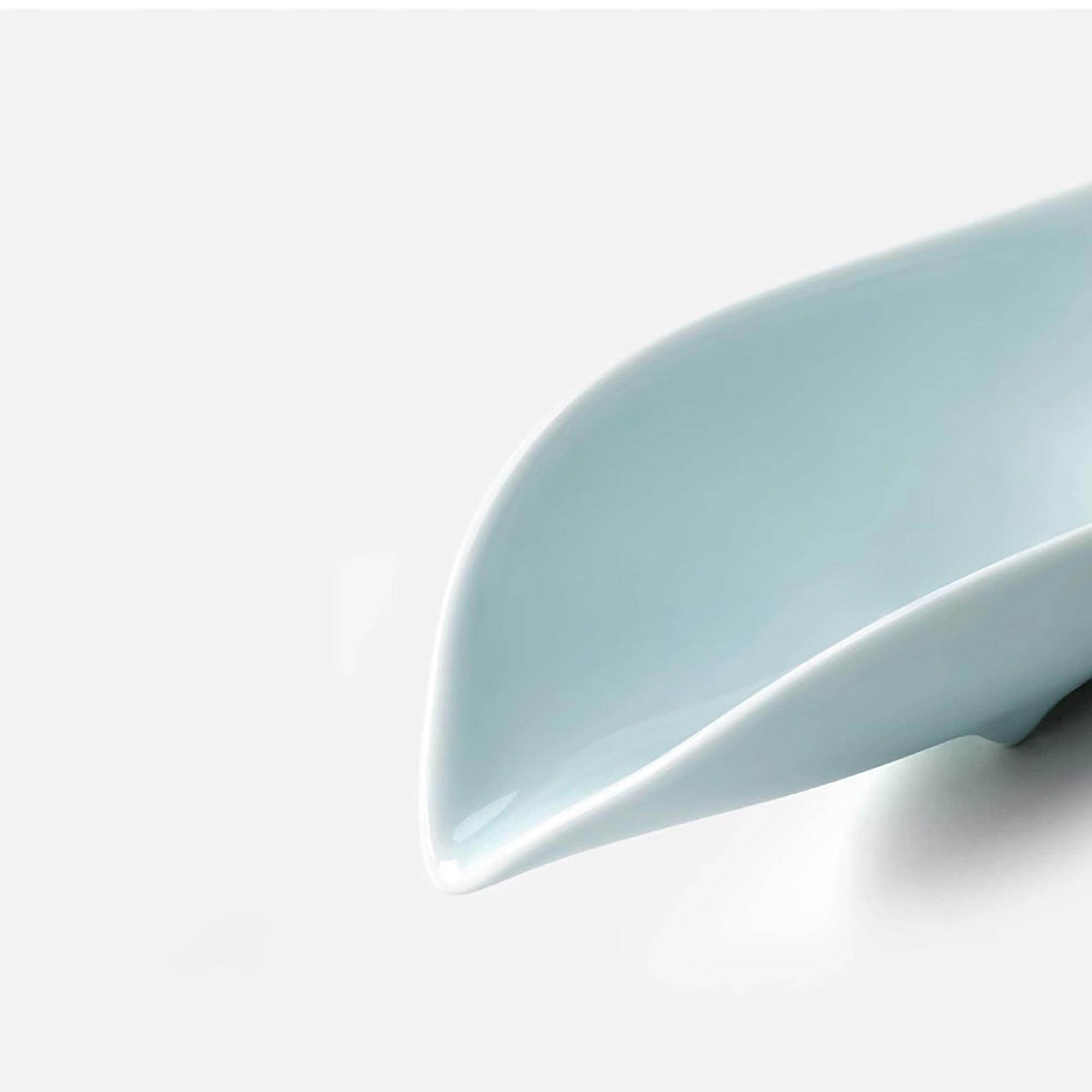Ce support à thé créatif de Jingdezhen présente une forme fluide, évoquant à la fois une feuille et un petit bateau, accompagné d'une cuillère pour doser précisément les feuilles de thé. Sa couleur céladon clair apporte une touche de calme et de sérénité à votre moment de dégustation. À la fois pratique et esthétique, ce support est parfait pour un usage personnel ou comme cadeau raffiné.