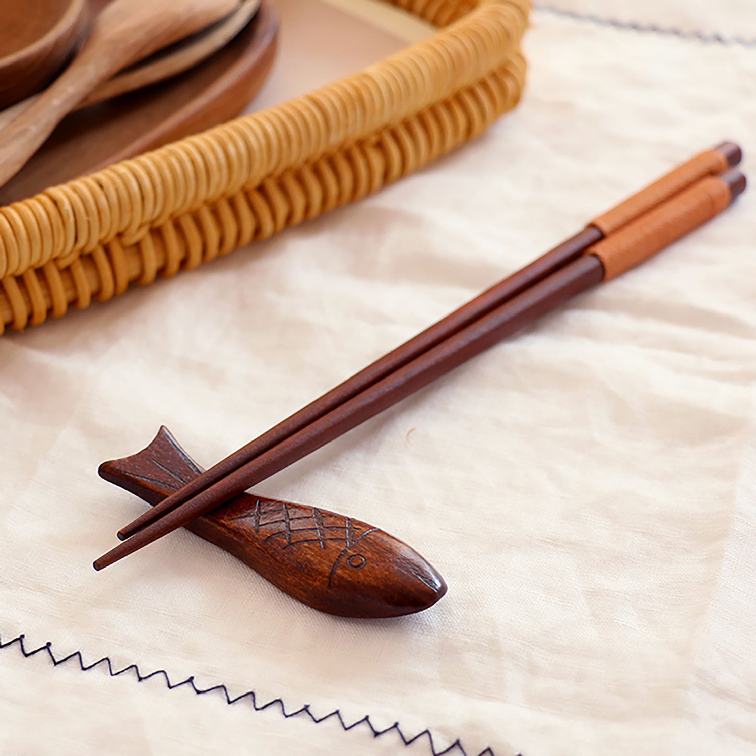 Embellissez votre table avec nos supports à baguettes en bois véritable de style japonais. Chaque pièce est fabriquée à la main avec soin, présentant des formes charmantes telles que petits poissons, petites calebasses et feuilles. Ces supports ne sont pas seulement pratiques, ils sont aussi un élément décoratif attrayant sur votre table, reflétant l'art de vivre raffiné japonais.