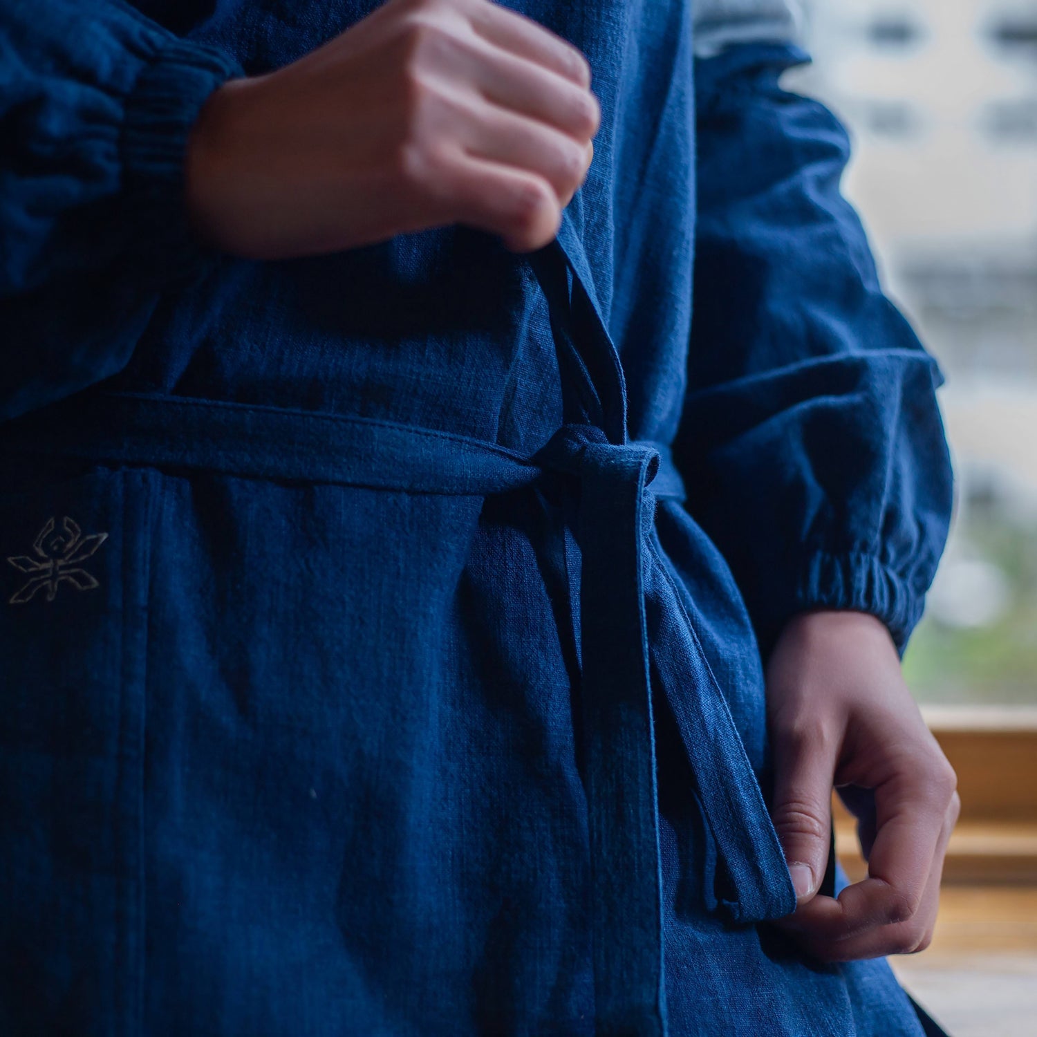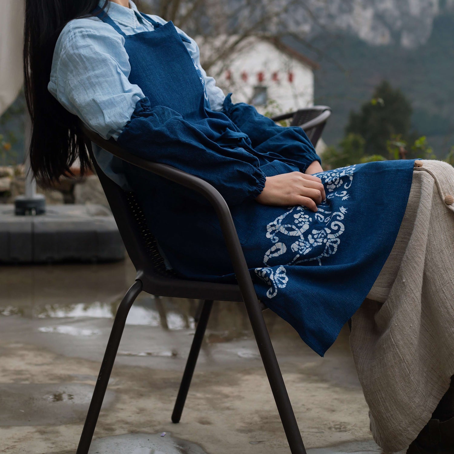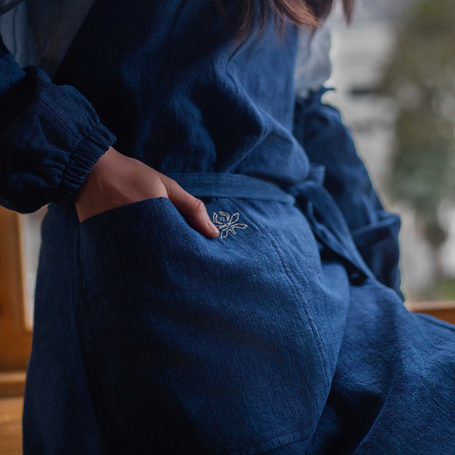 Ce tablier en lin et coton est teint à la main avec de l’indigo naturel selon une méthode traditionnelle artisanale. Sa teinte profonde et ses légères irrégularités rendent chaque pièce unique. Son design épuré avec une poche avant et une ceinture ajustable le rend aussi pratique qu’élégant. Idéal pour la cuisine, le jardin ou les activités créatives, il apporte une touche poétique et intemporelle à votre quotidien.