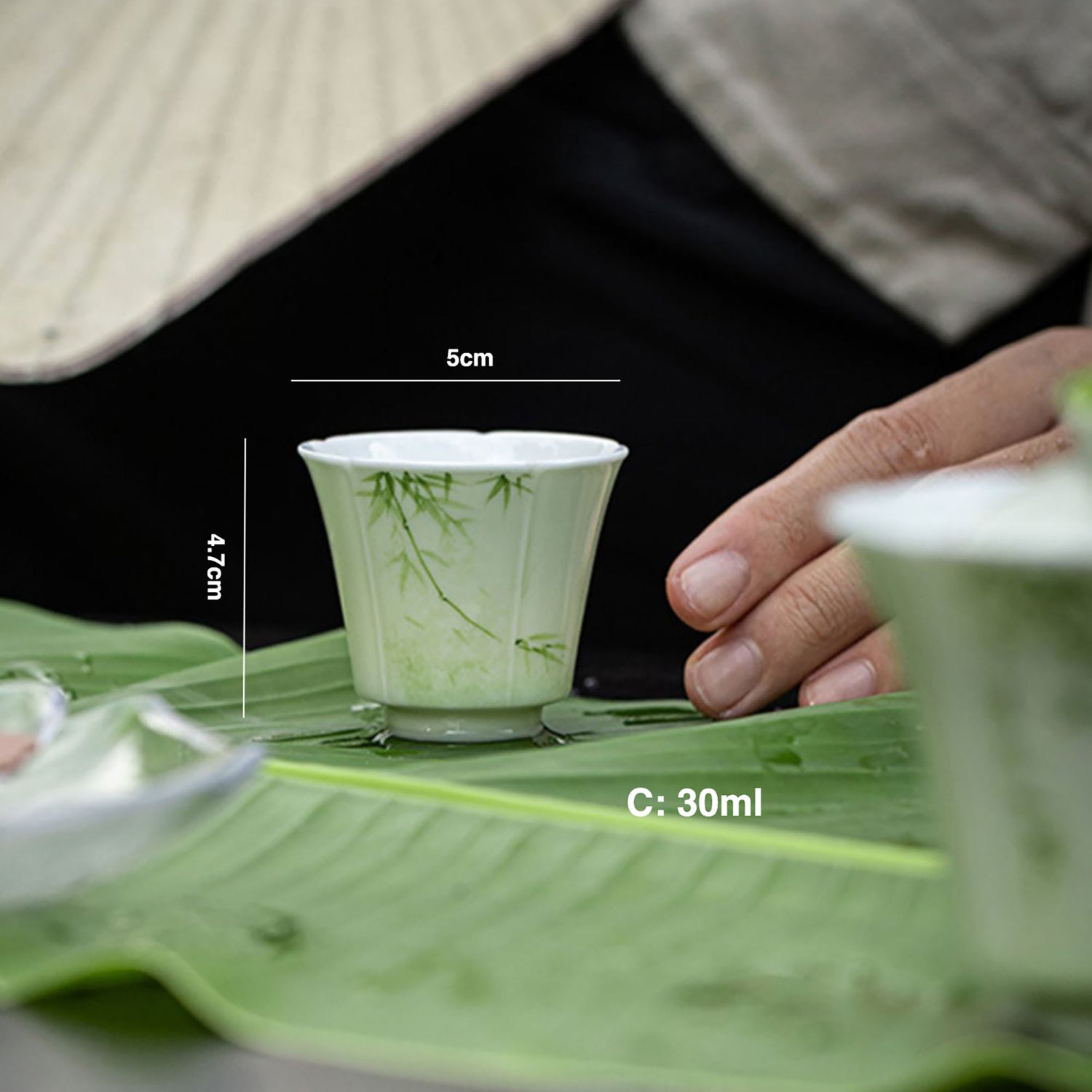 Cette tasse de thé est une œuvre d'art à part entière, conçue pour offrir une expérience de thé inoubliable. Chaque tasse est fabriquée à la main selon des techniques artisanales traditionnelles, et est décorée d'un magnifique motif de bambou peint à la main sous glaçure.