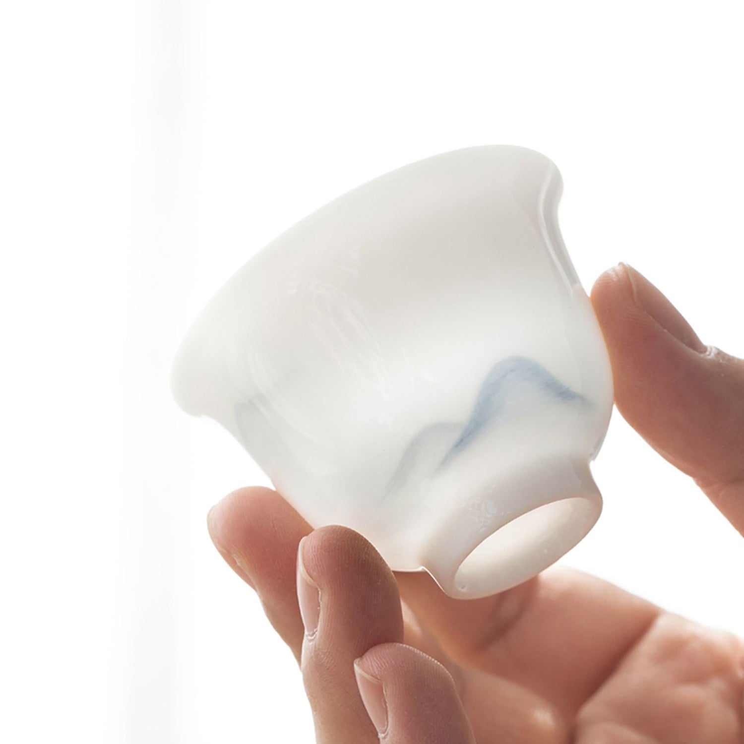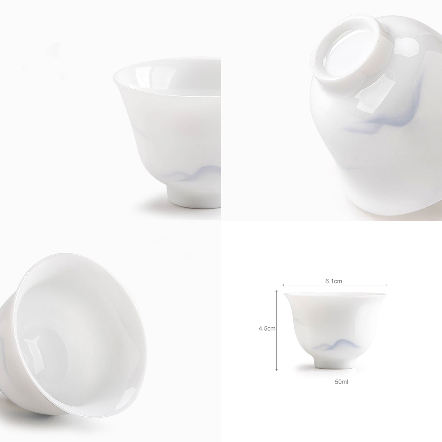 Cette tasse en céramique de haute qualité, fabriquée à Jingdezhen, est réalisée en porcelaine blanche fine et délicate, avec une texture douce et translucide. Le design est orné d'un motif peint à la main représentant des montagnes lointaines, aux traits subtils et élégants, offrant une ambiance paisible et poétique. Idéale pour une utilisation personnelle ou comme un cadeau raffiné.