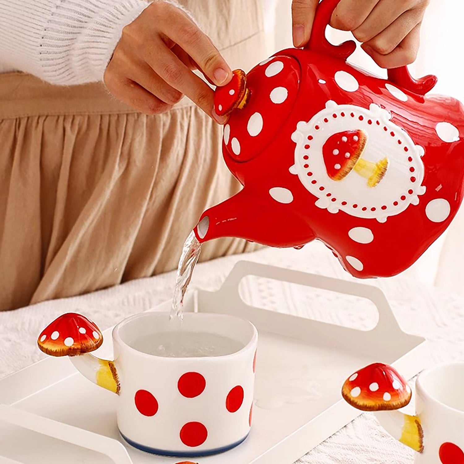 Cette théière en céramique fabriquée à Jingdezhen adopte un design féérique en forme de champignon. Conçue par un illustrateur, elle apporte une touche de magie et de chaleur à votre table à thé. Cuite à haute température, elle garantit qualité et durabilité, idéale comme cadeau ou pour un usage personnel pendant les fêtes de Noël.