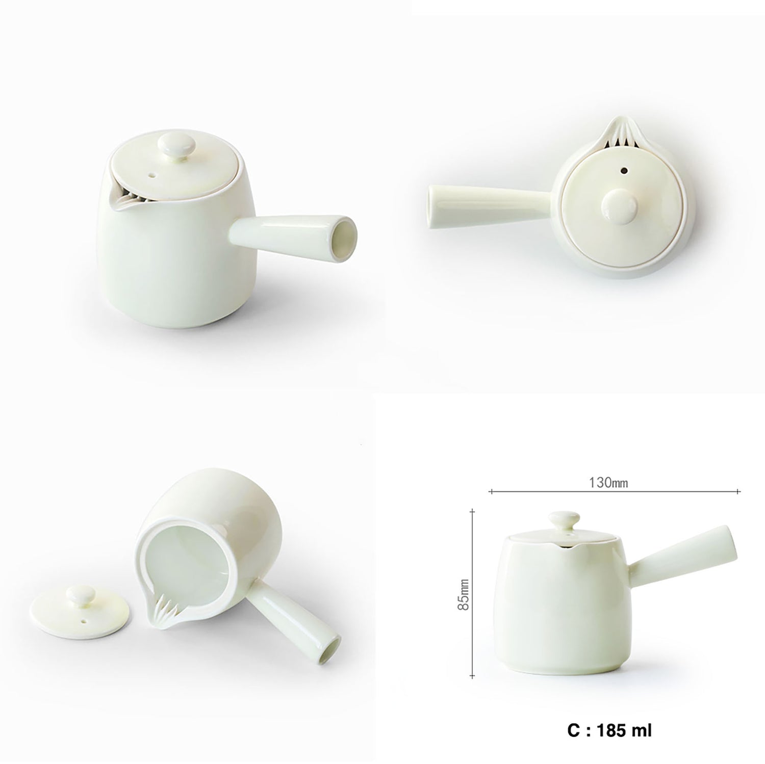 Cette théière en porcelaine arbore un émail innovant qui combine 60% de jaune et 30% de vert pour créer une tonalité de primevère douce, évoquant un cadre naturel et champêtre. Son design simple et arrondi, avec une poignée latérale typique des théières japonaises, assure une prise en main confortable et protège efficacement contre les brûlures. Le mariage entre cette teinte unique et son style épuré fait de cette théière un choix parfait pour des moments de dégustation de thé empreints de sérénité et d'élégance.