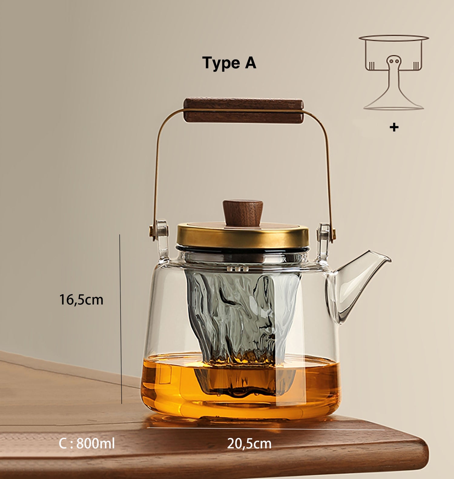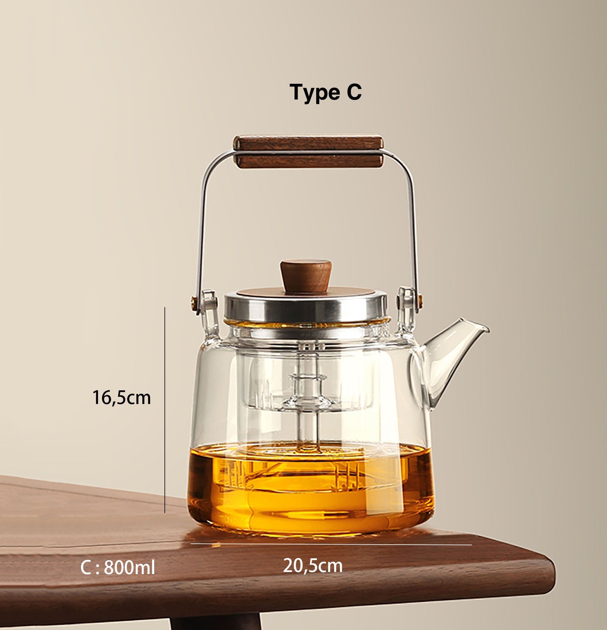 Théière en verre adaptée à plusieurs méthodes d'infusion