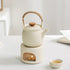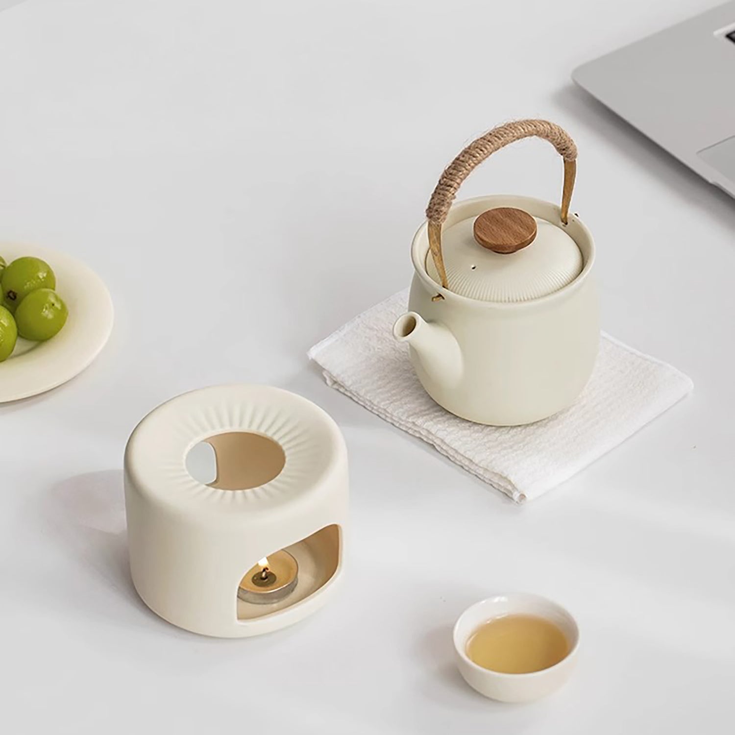 Cette théière en céramique avec anse arbore un émail couleur crème où le jaune doux se marie à la texture délicate de la céramique, créant une ambiance chaleureuse et apaisante. Le service possible comprend un réchaud assorti pour chauffer doucement le thé, ajoutant une touche de sérénité zen à l'expérience. Parfait pour soi-même ou comme cadeau, ce set peut possible également être présenté dans une boîte-cadeau élégante pour un rendu encore plus raffiné.