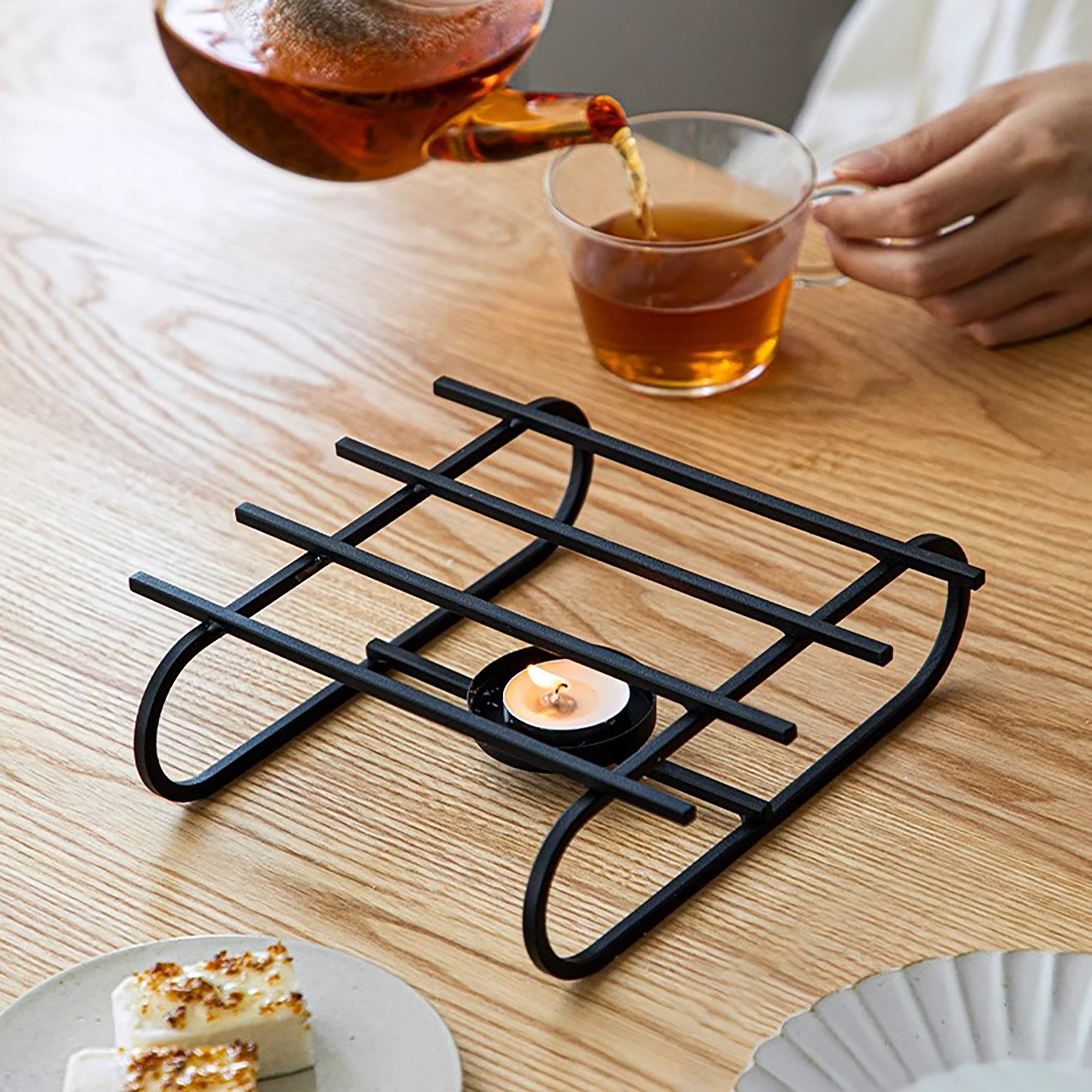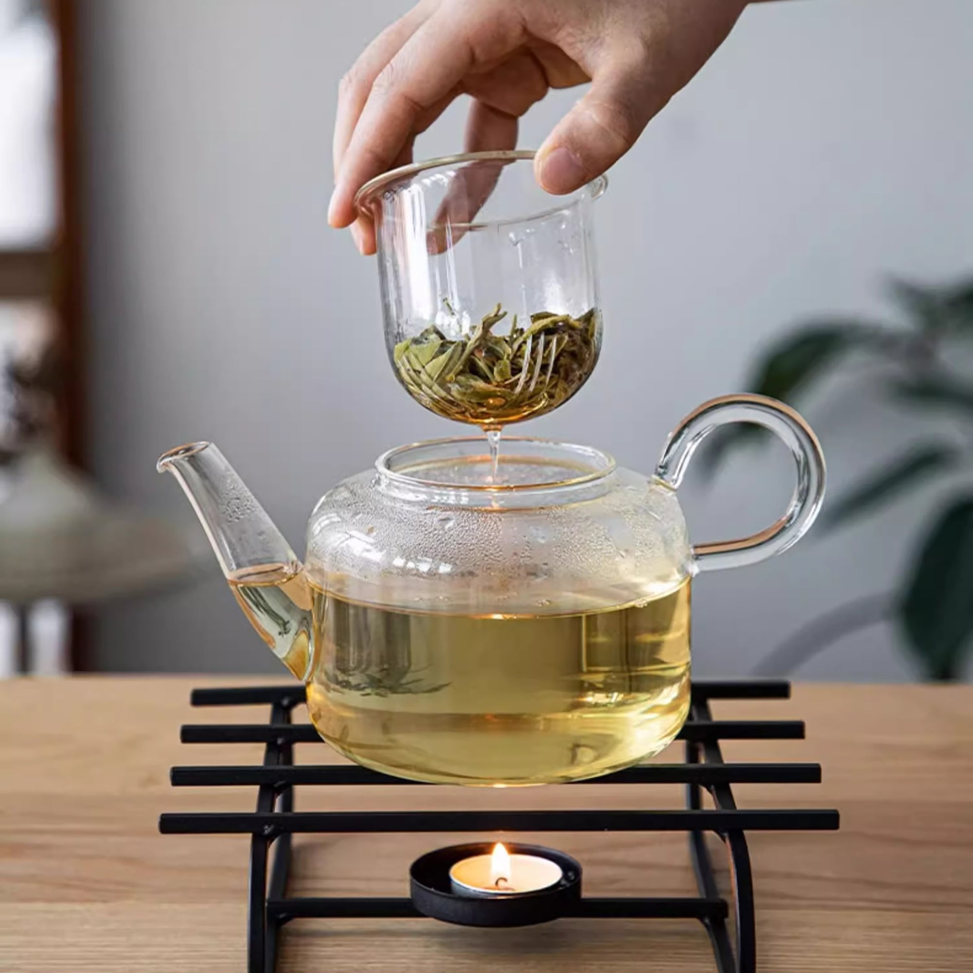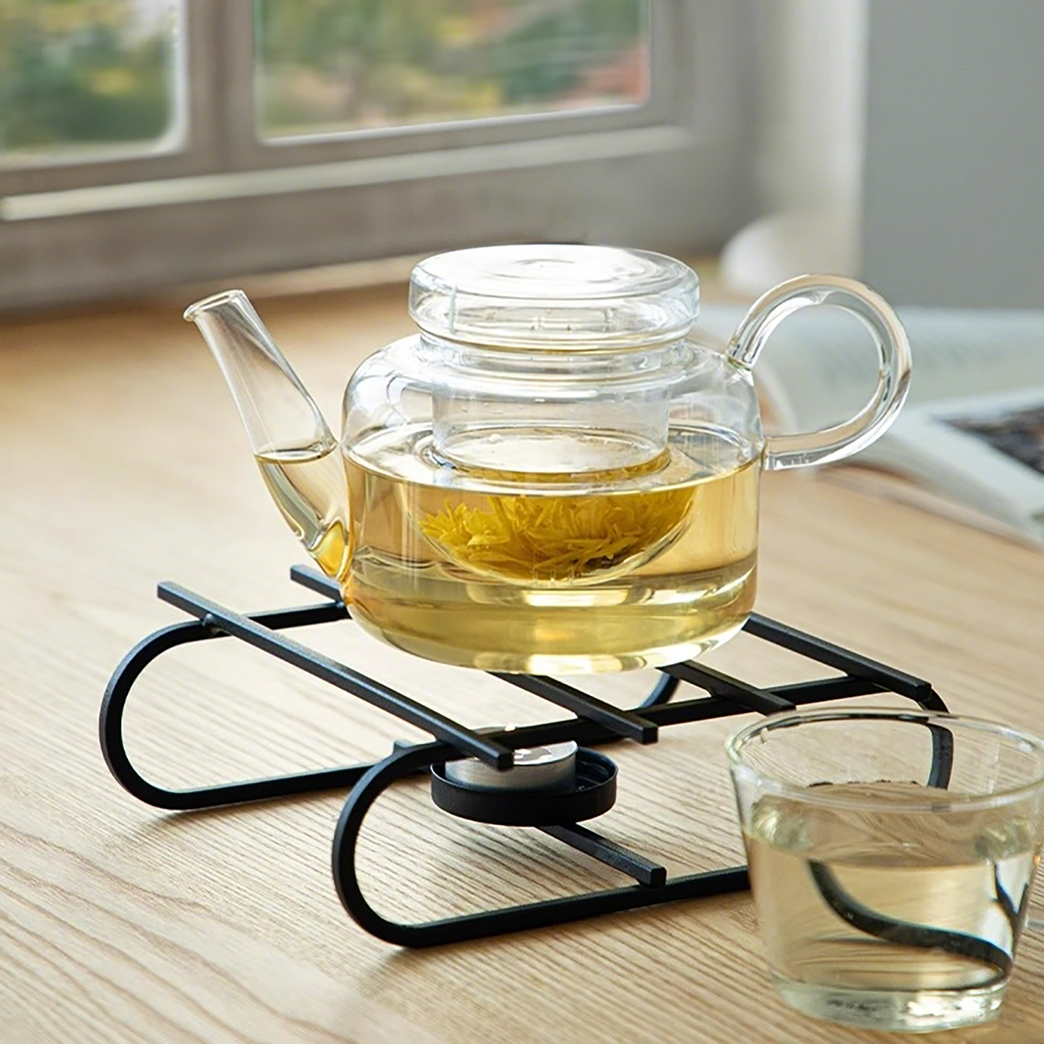 Cette théière en verre signée Shimoyama est fabriquée en borosilicate résistant à la chaleur, avec une silhouette épurée et une poignée arrondie élégante. Le filtre en verre intégré permet une infusion claire et sans résidus. Le socle chauffe-thé en fer minimaliste, fonctionnant à la bougie, maintient votre boisson à température idéale, créant une atmosphère propice à la dégustation. Un ensemble raffiné, parfait pour un usage personnel ou comme cadeau élégant.